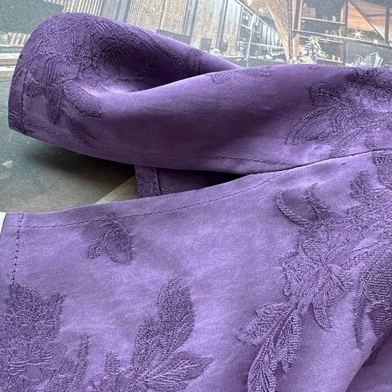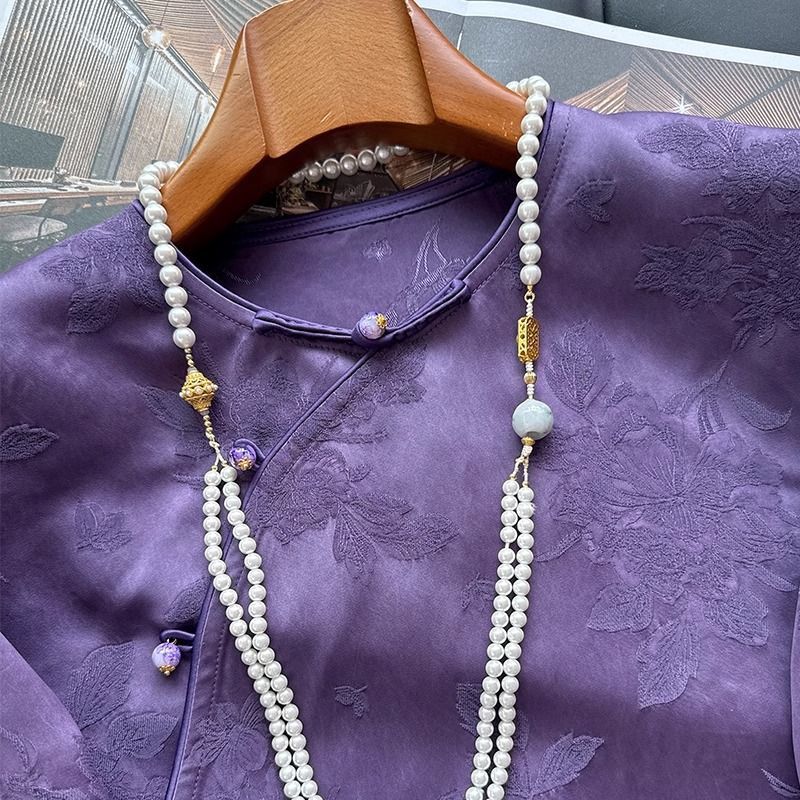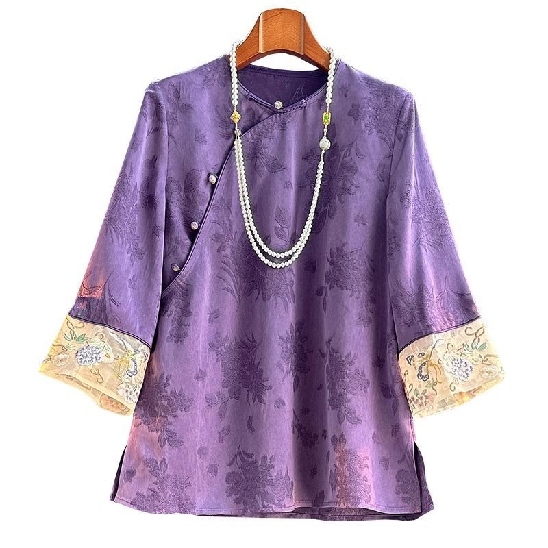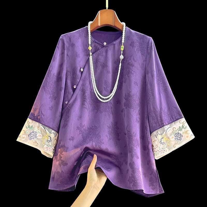 丁摩 洋气提花新中式国风女刺绣九分袖T恤春季宽松显瘦减龄上衣6ZF-9360