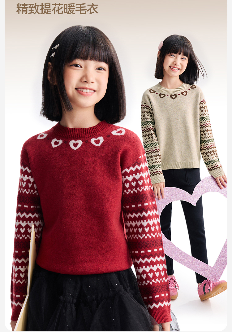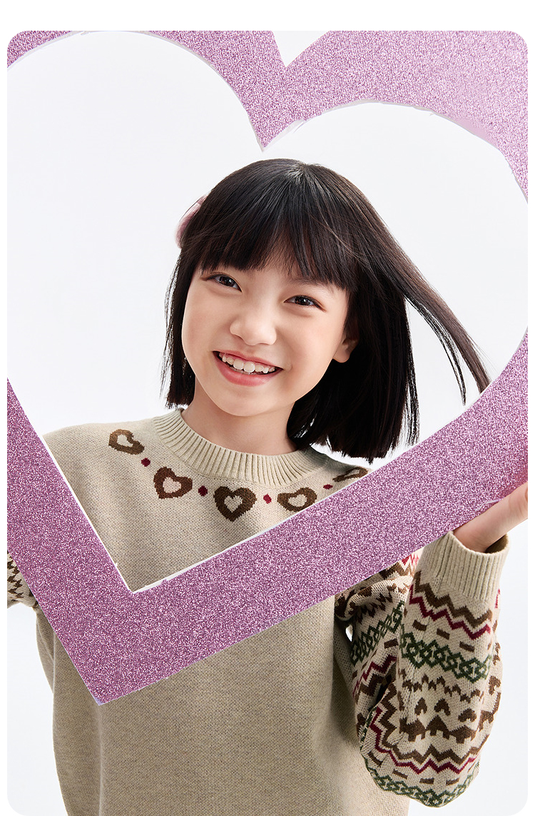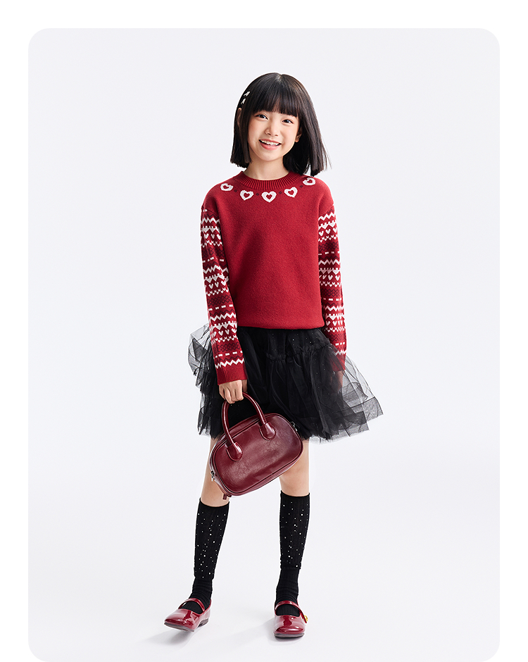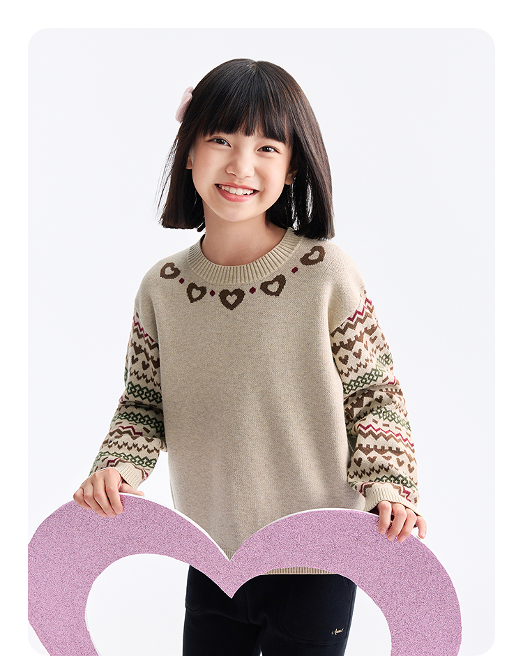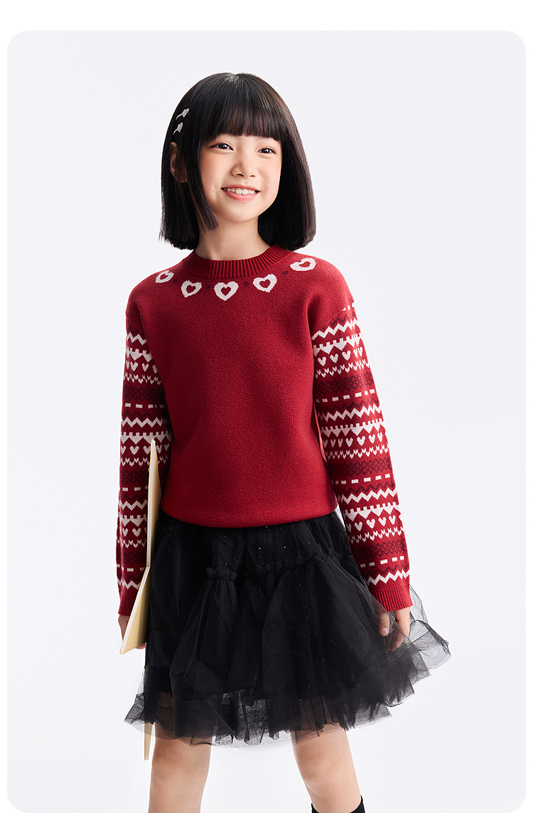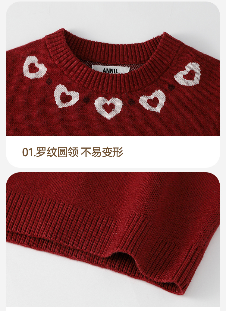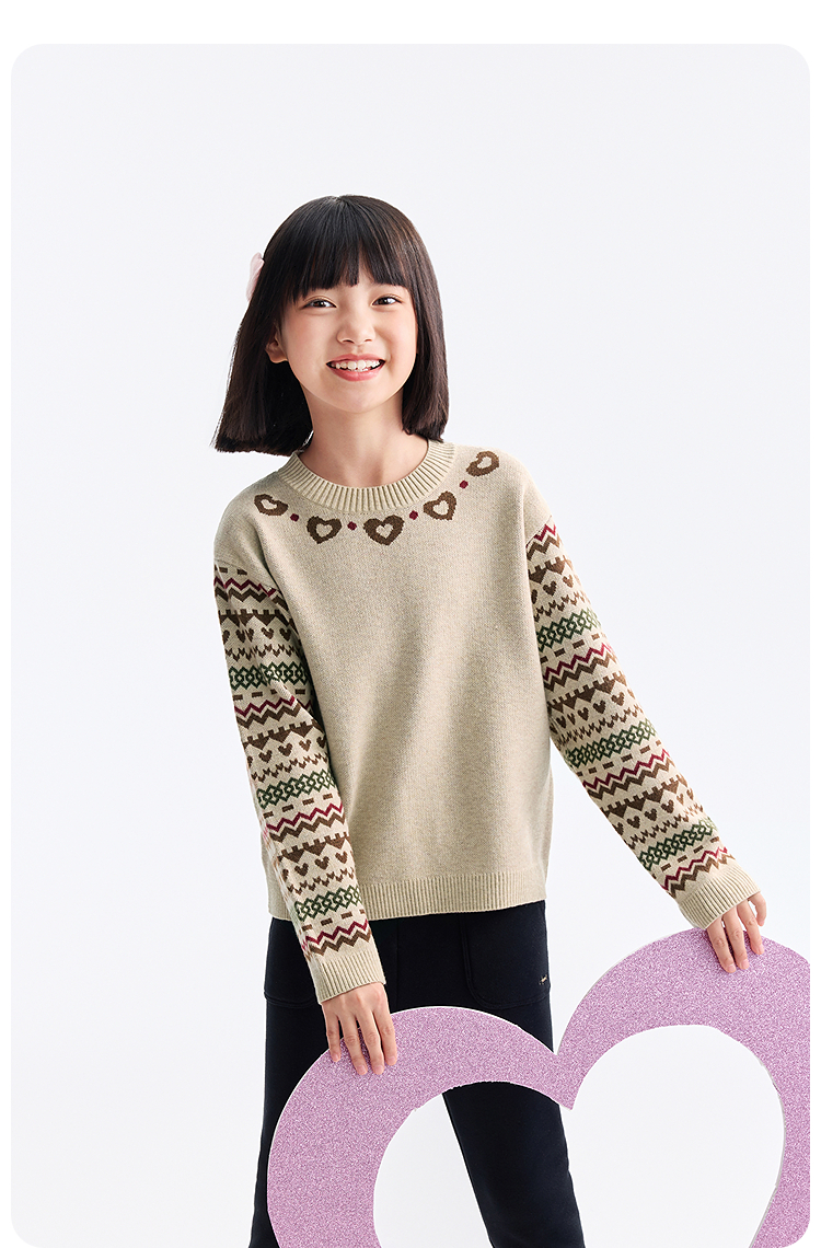 女童圆领长袖针织衫冬季新款安奈儿童装EG544664