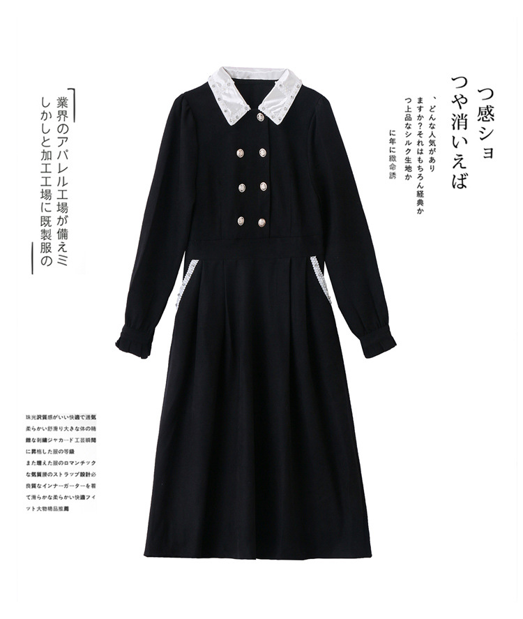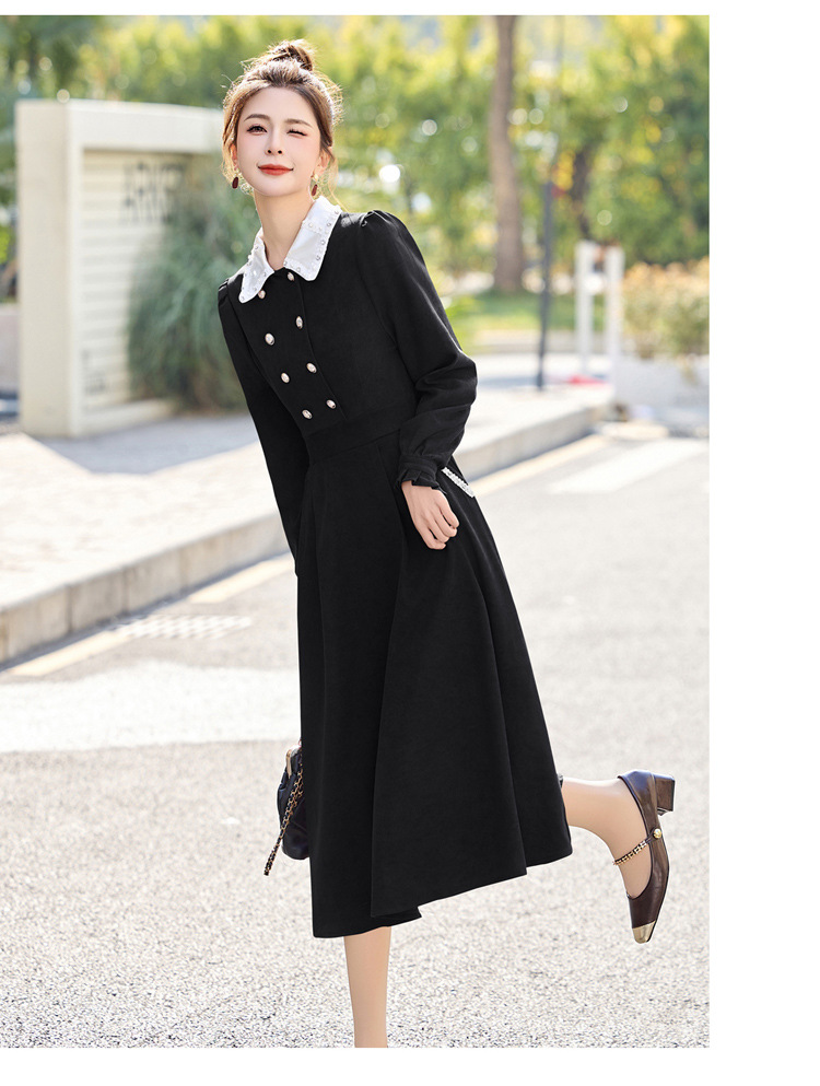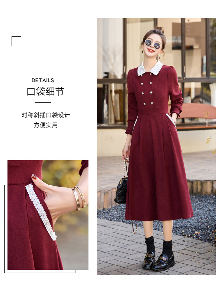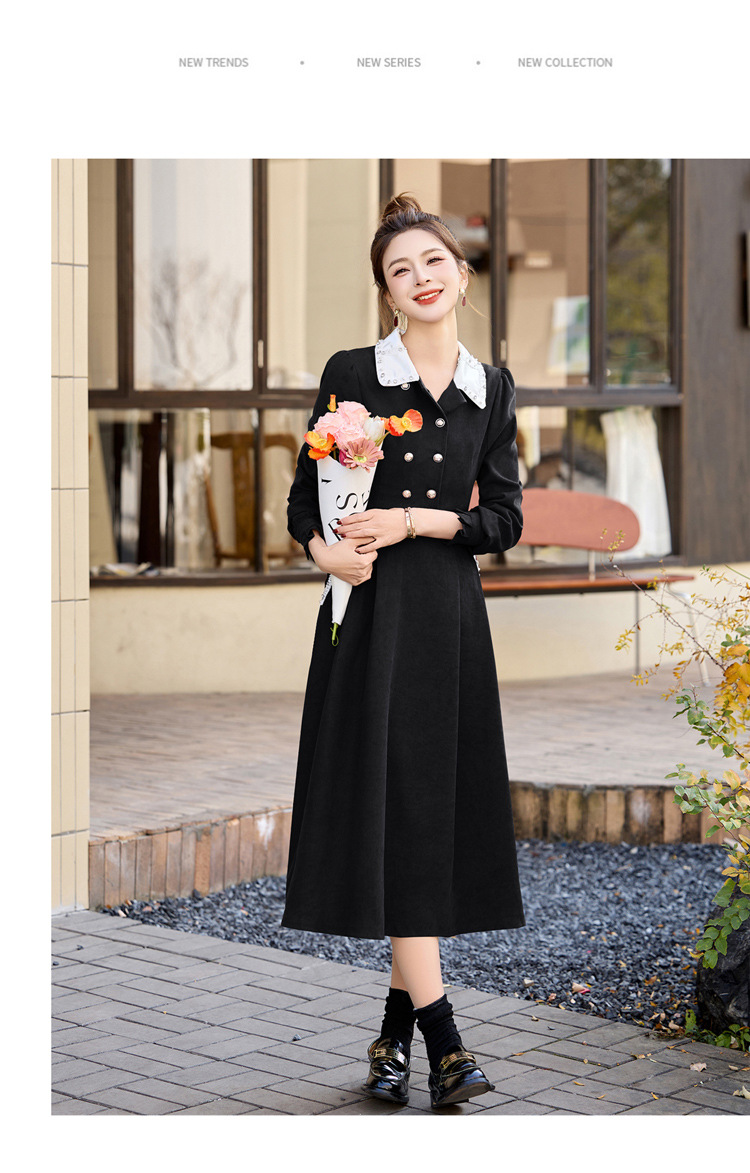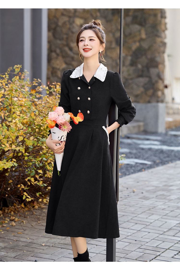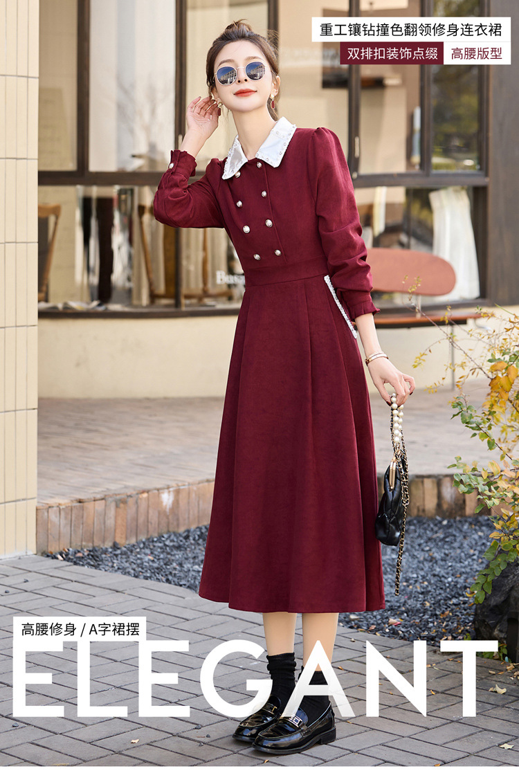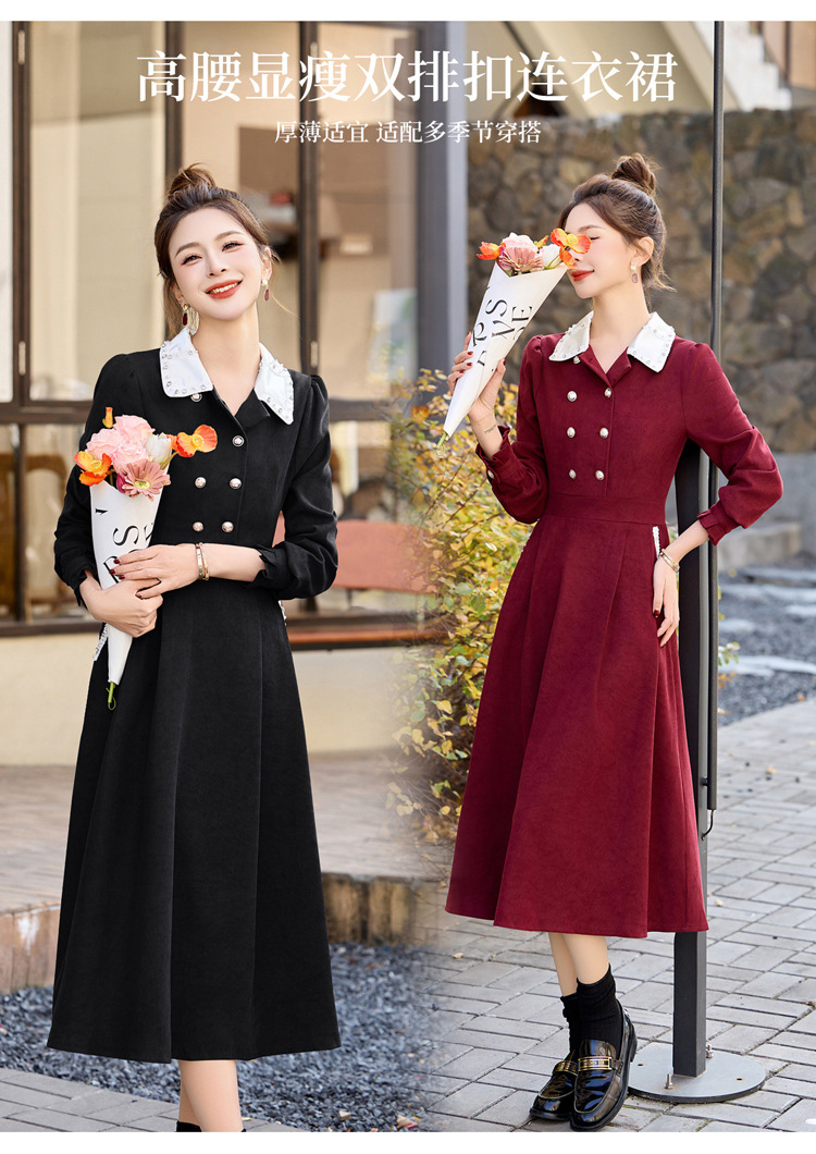 气质优雅撞色小翻领,长袖修身显瘦连衣裙HMQY2890