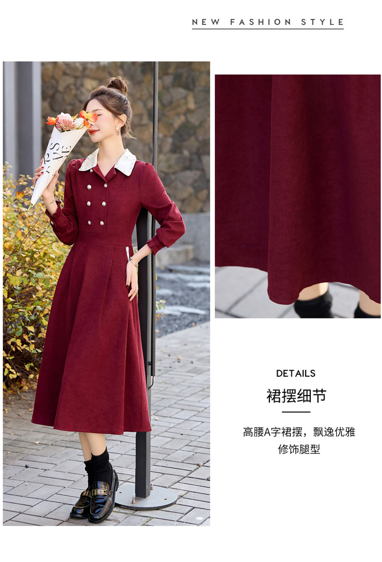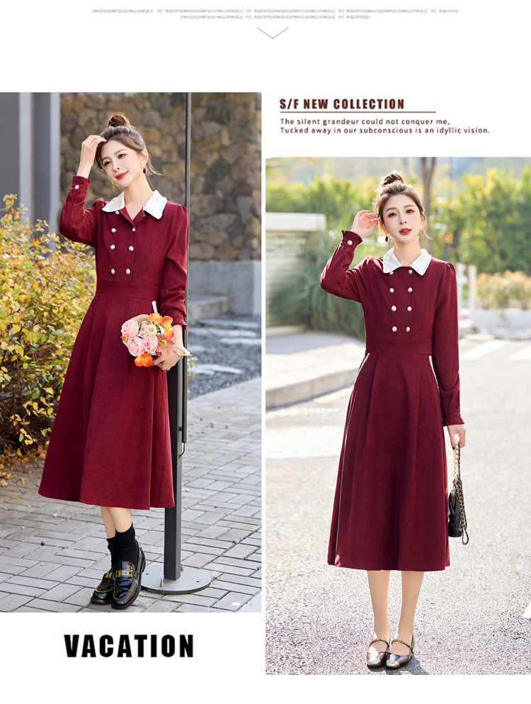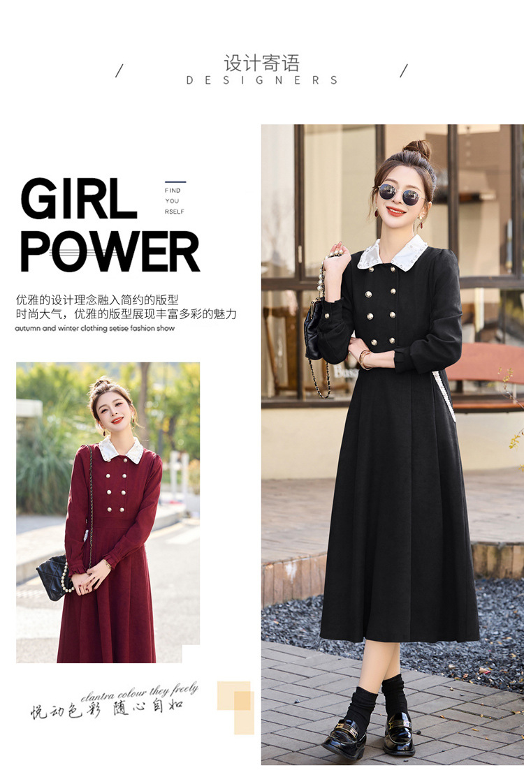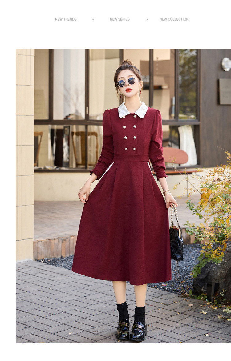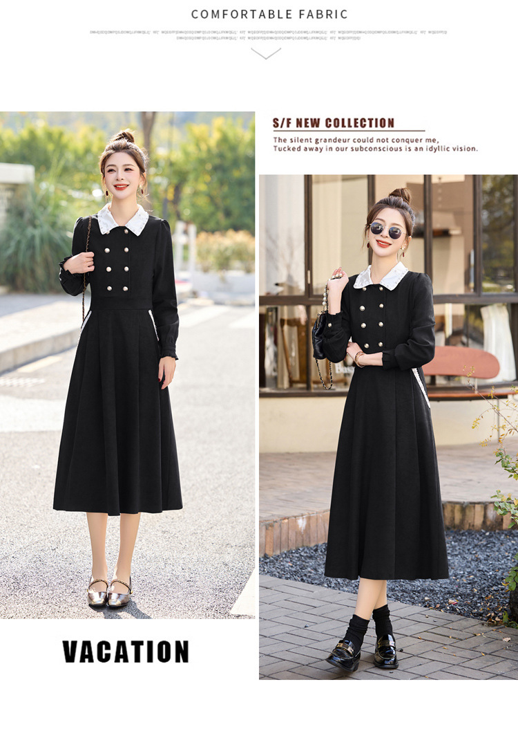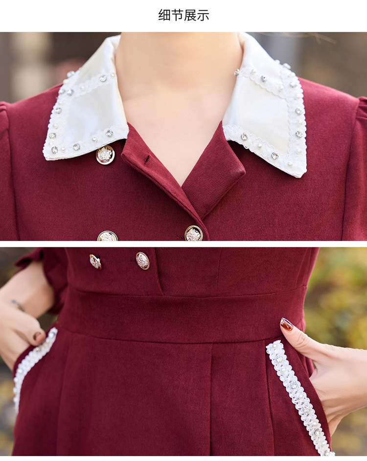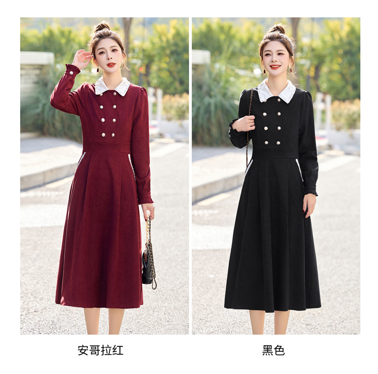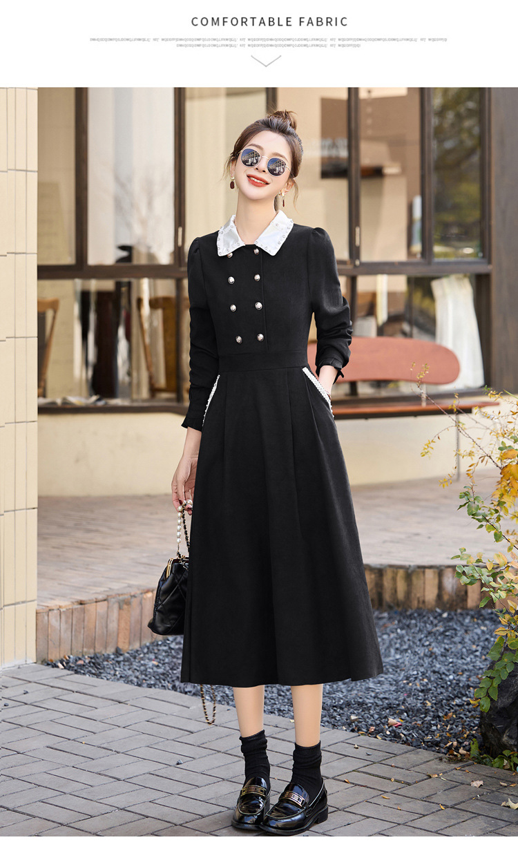 气质优雅撞色小翻领,长袖修身显瘦连衣裙HMQY2890