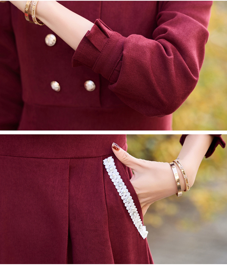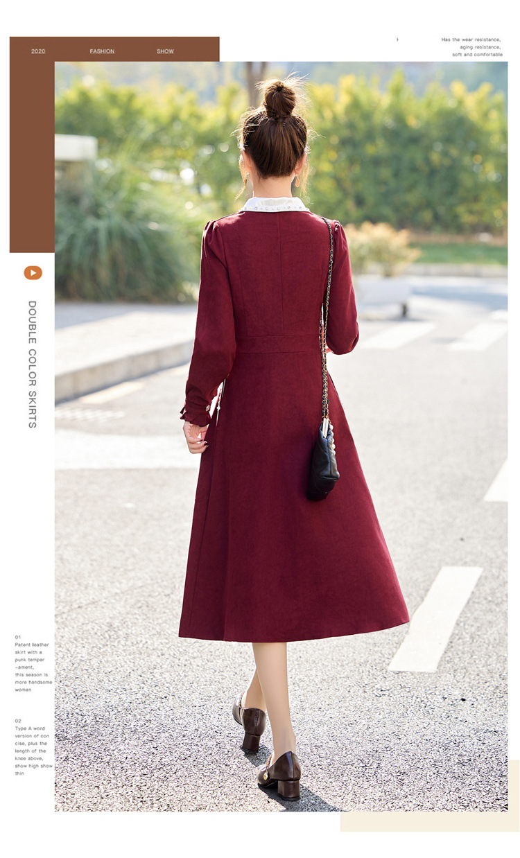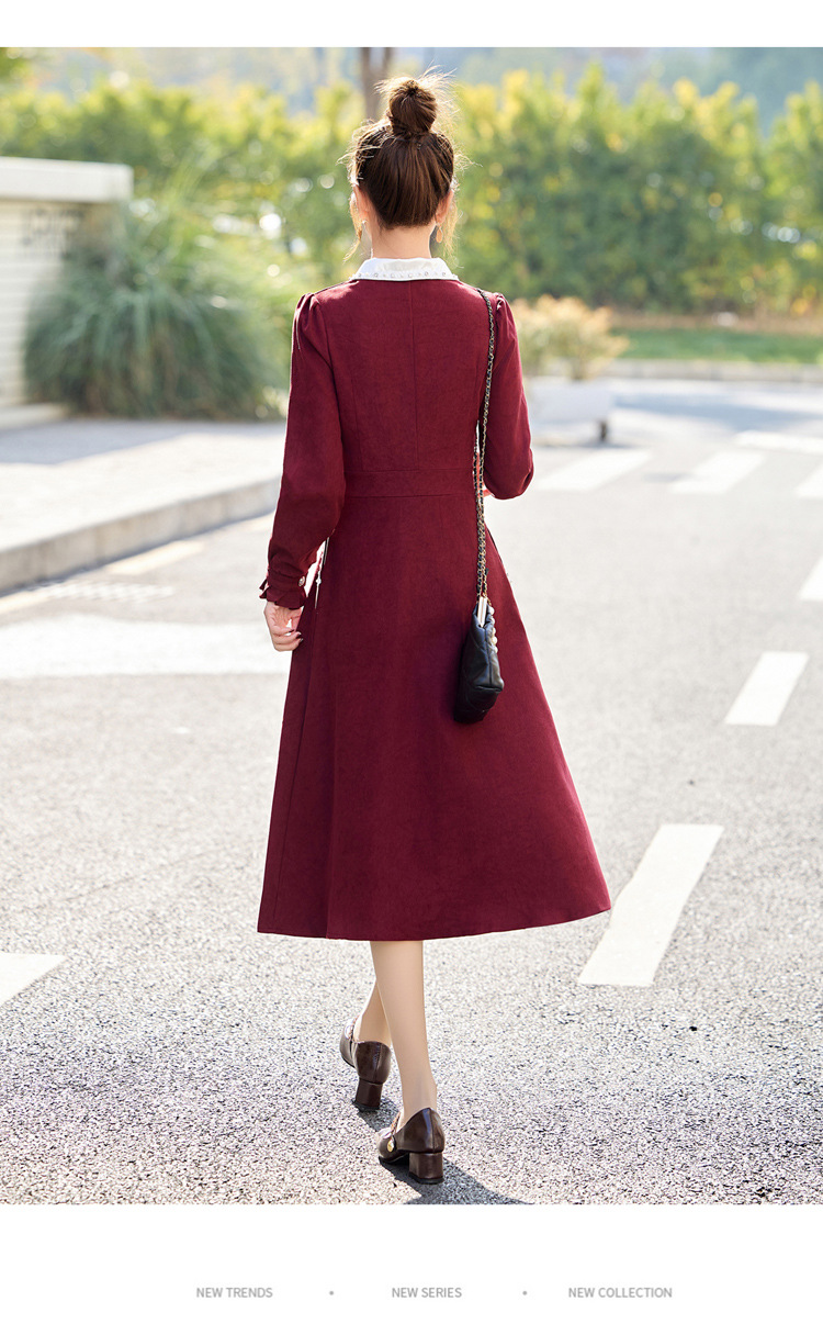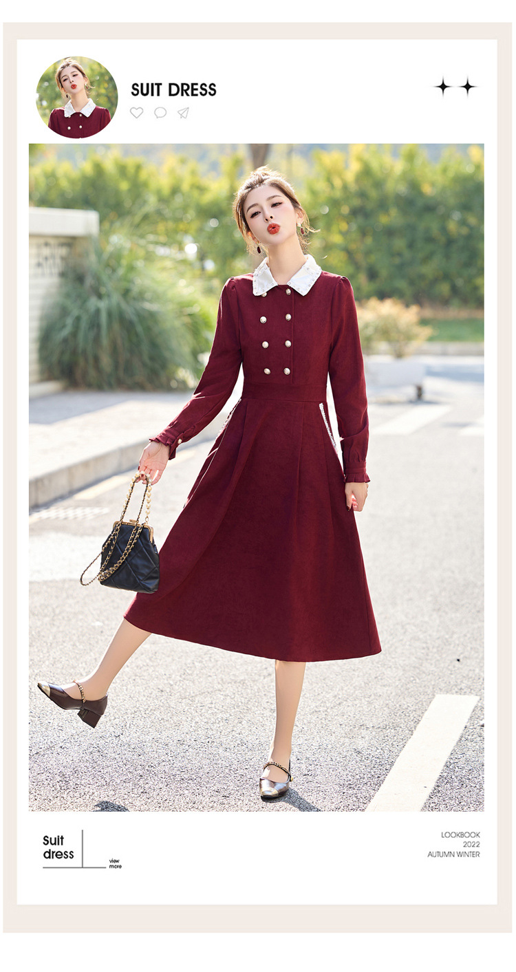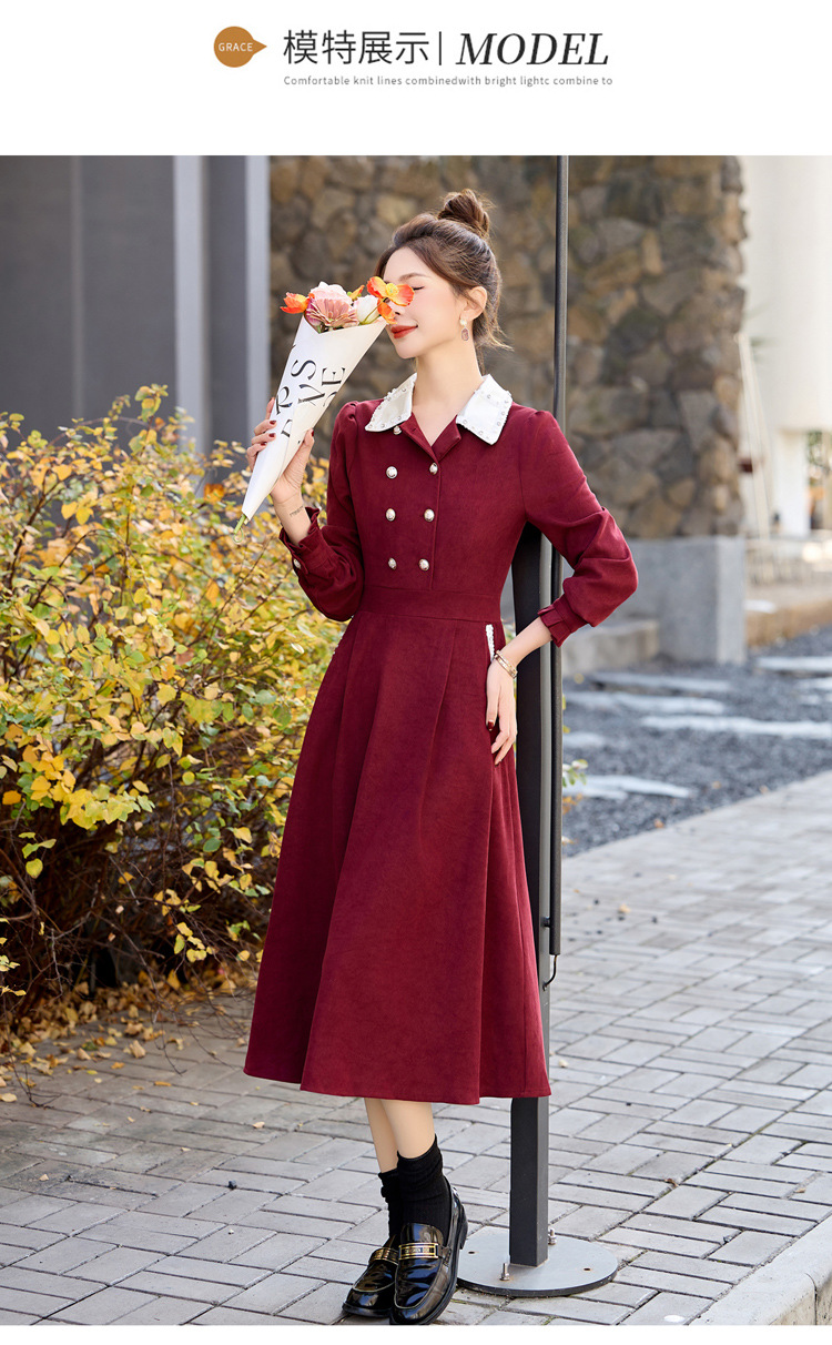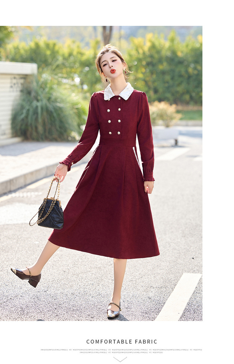 气质优雅撞色小翻领,长袖修身显瘦连衣裙HMQY2890