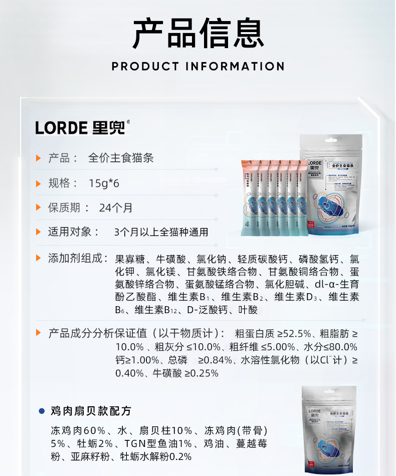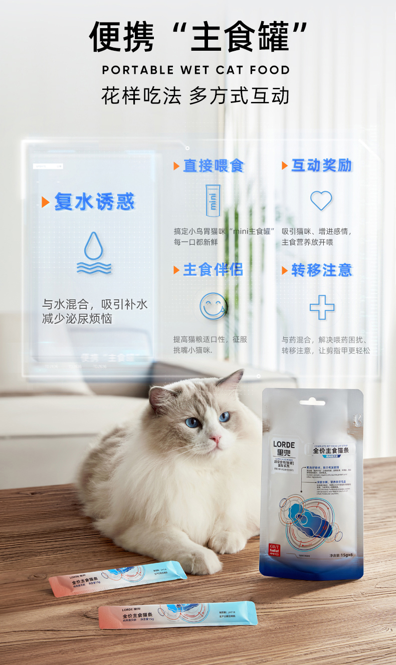 【超美味,互动教学必备】LORDE 里兜全价主食猫条15g*6条