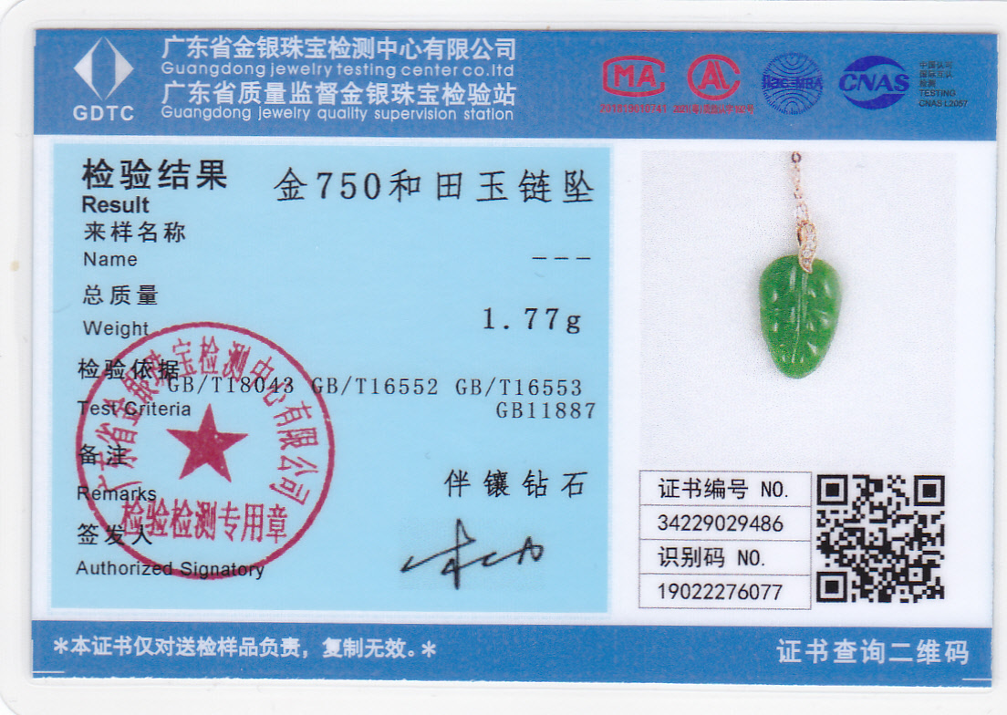 18K玫瑰金和田玉(碧玉)项链