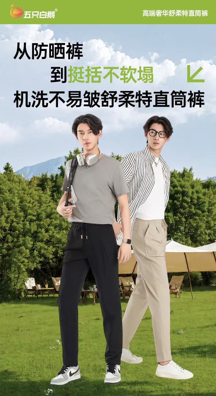 最后样衣清仓!五只白鹅—舒柔特春夏外穿男士直筒裤防晒抗皱免熨宽松休闲裤2576