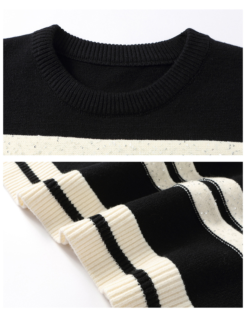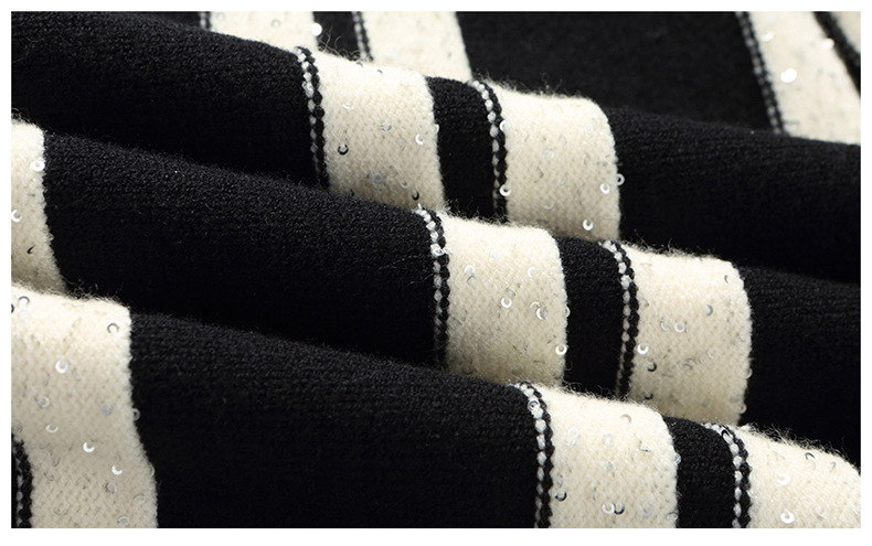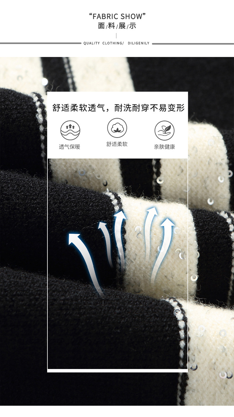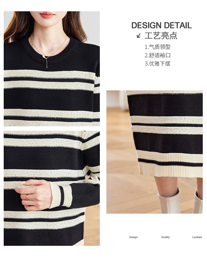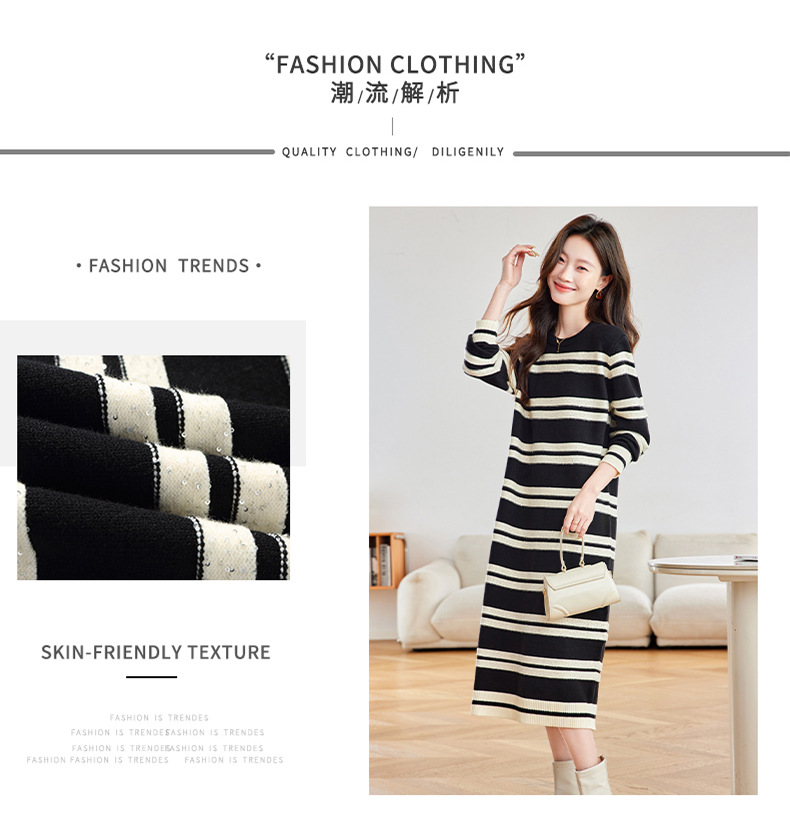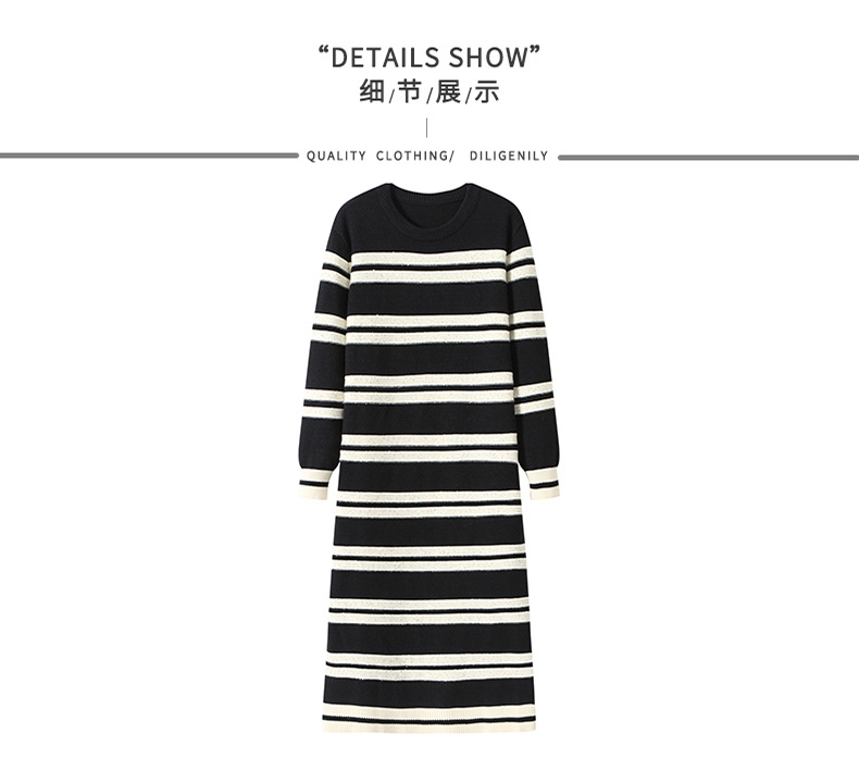 雀说圆领条纹针织连衣裙新款穿搭中长款过膝毛衣打底裙AL8511