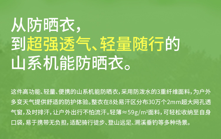 蕉下男士超透气户外防晒衣VT40624运动防晒防雨高弹速干便携外套