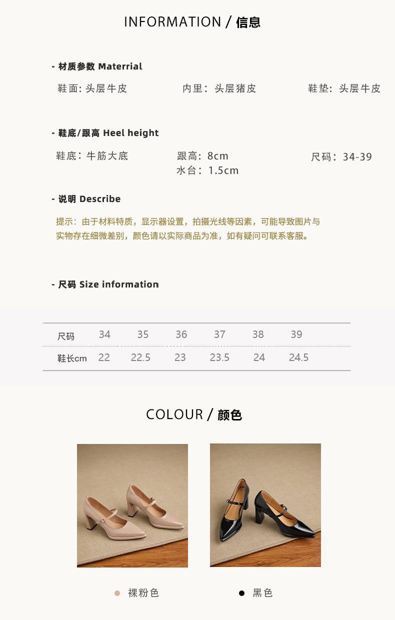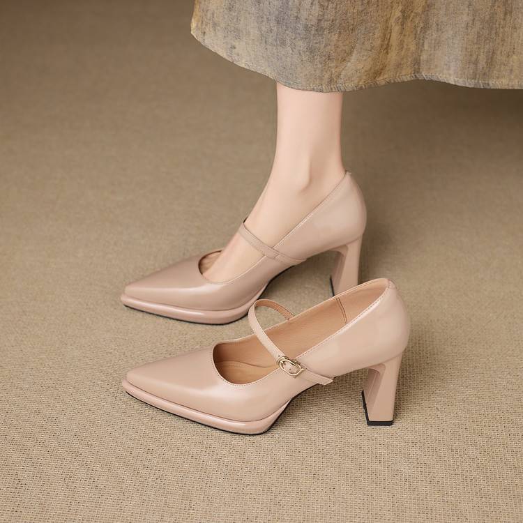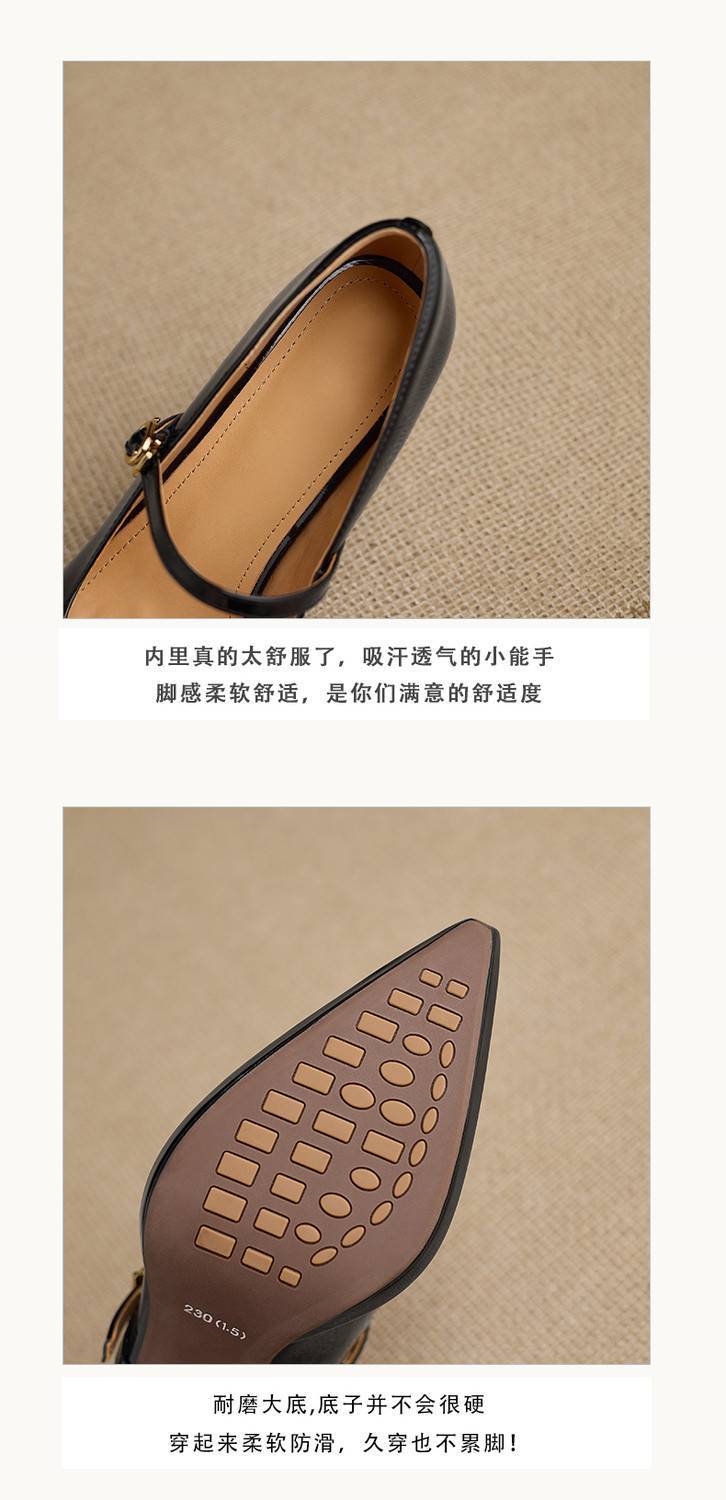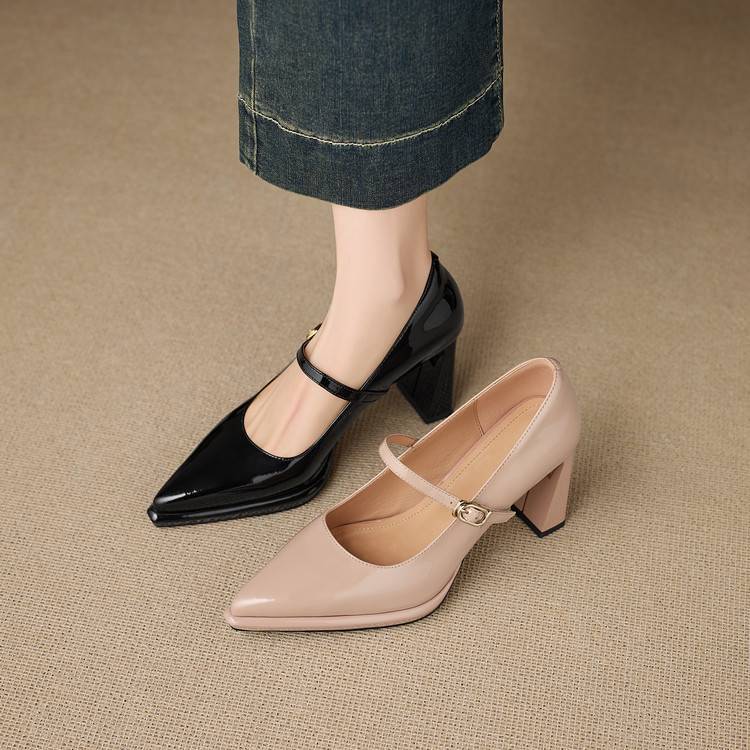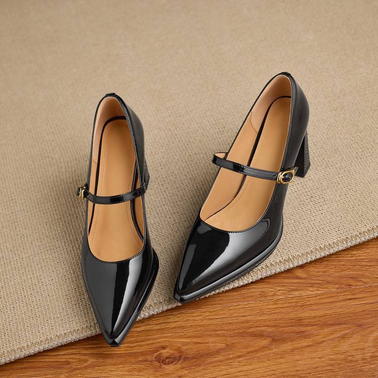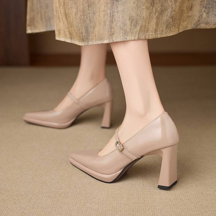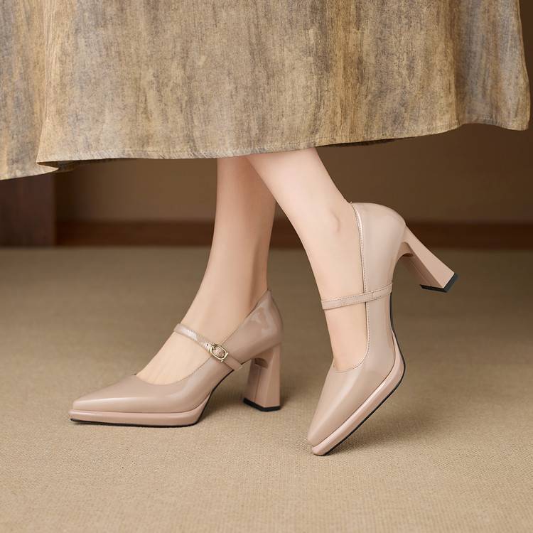 【预售5天】漆皮尖头粗跟单鞋女一字扣带高跟鞋防水台浅口职业鞋时尚款小皮鞋NWS1&N9879