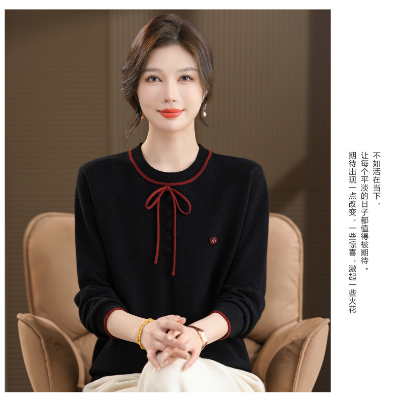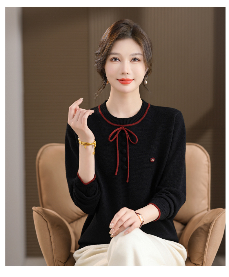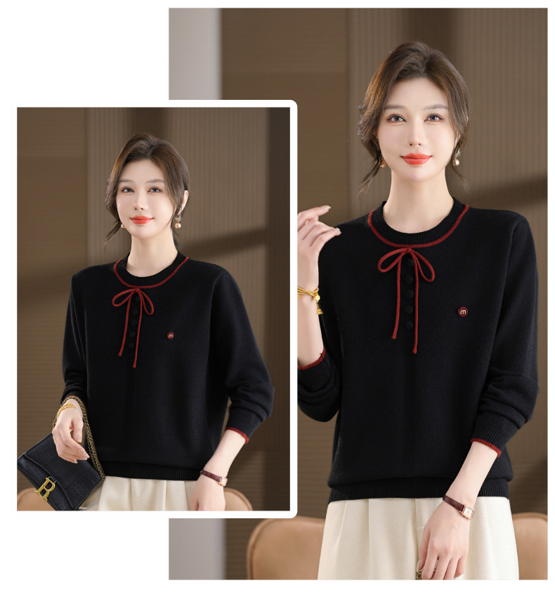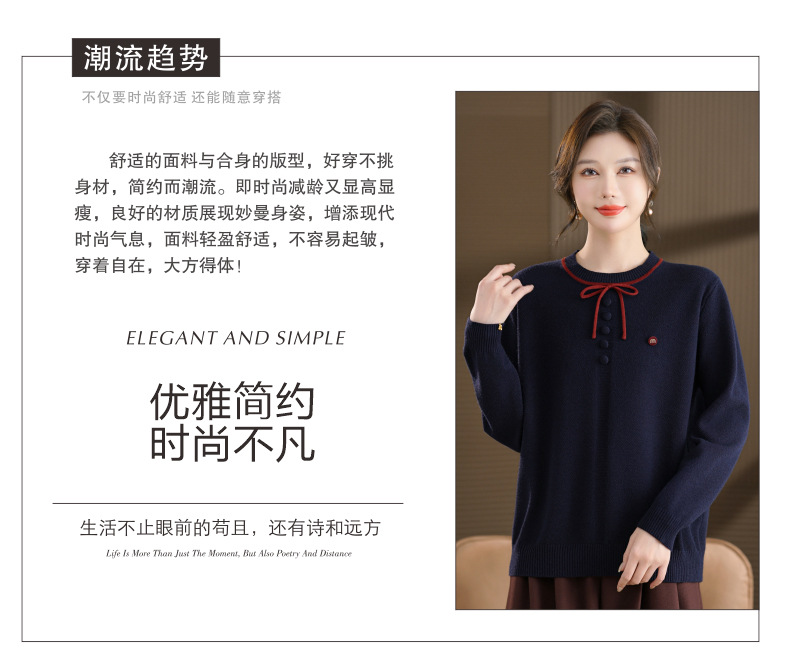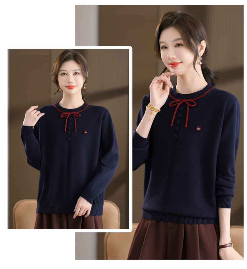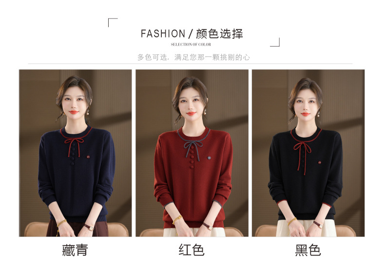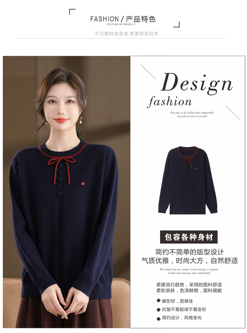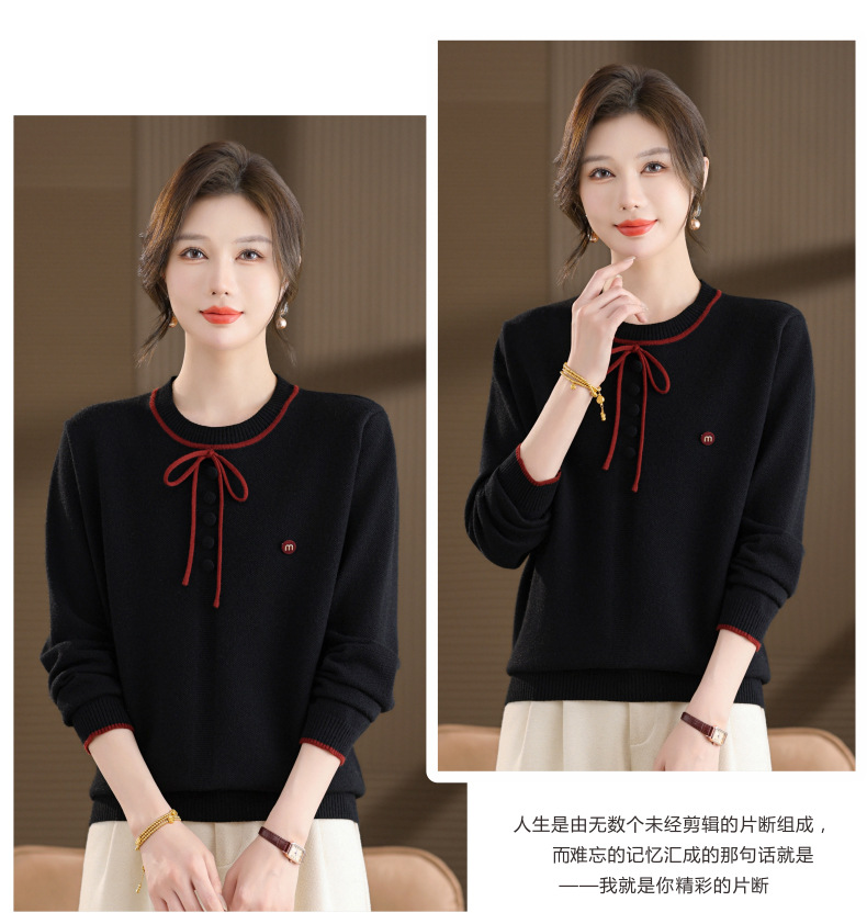CC 28-1590蝴蝶结圆领针织衫气质上衣