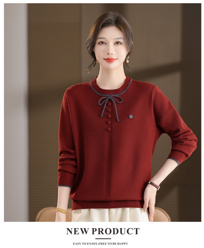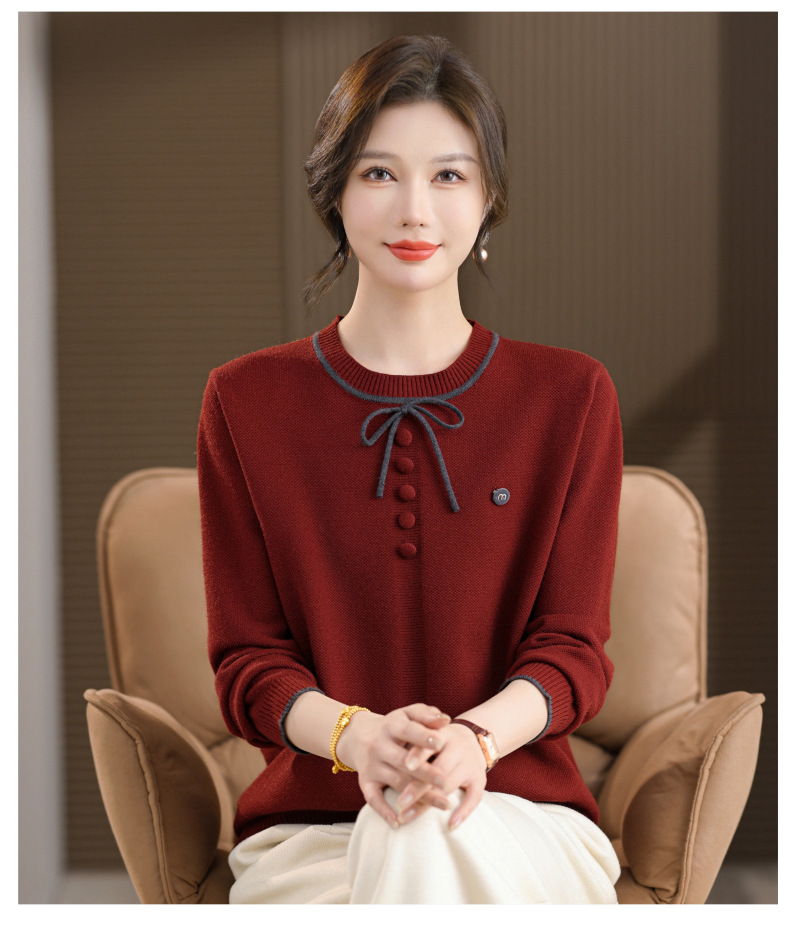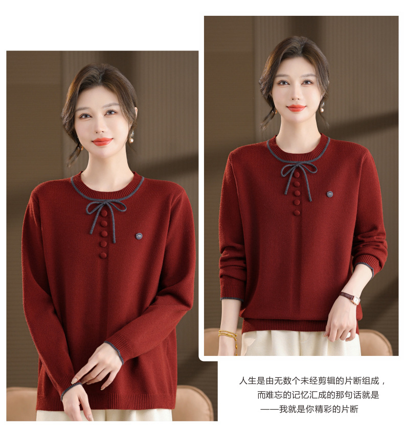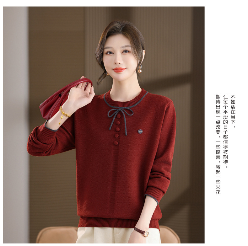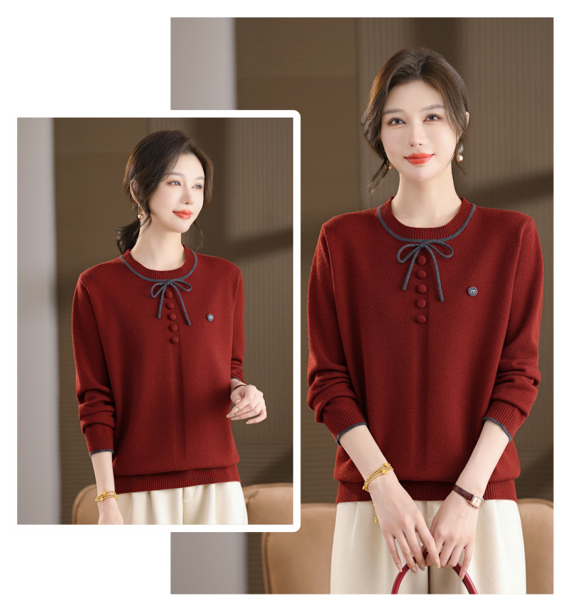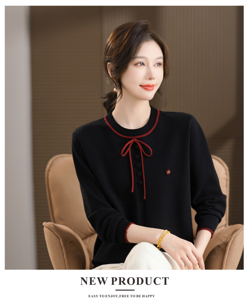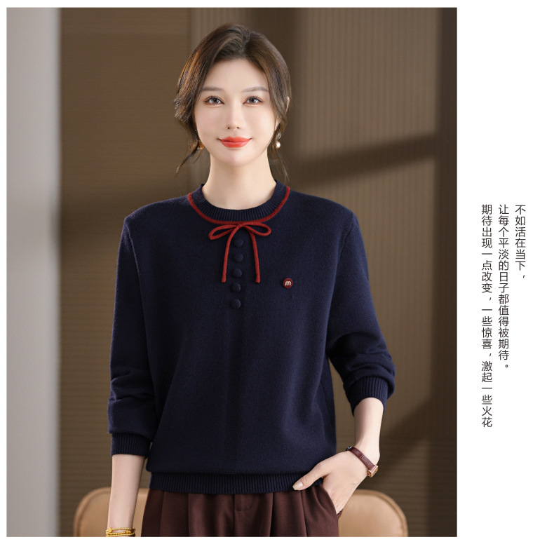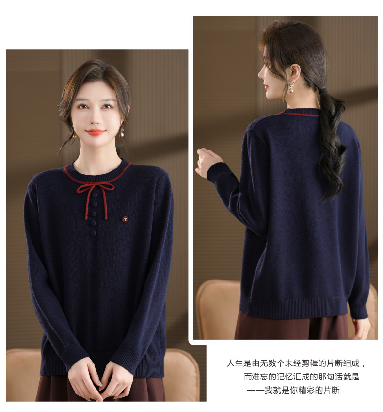 CC 28-1590蝴蝶结圆领针织衫气质上衣