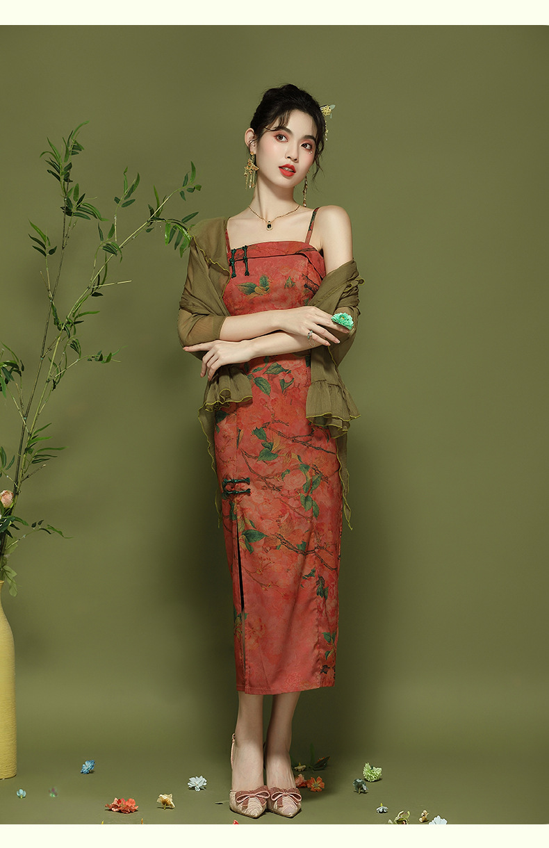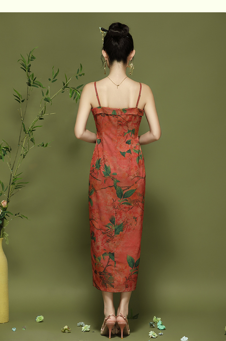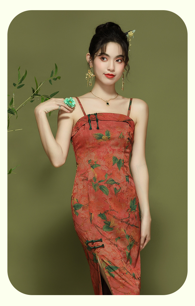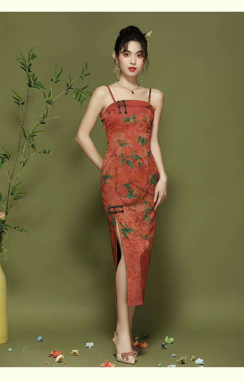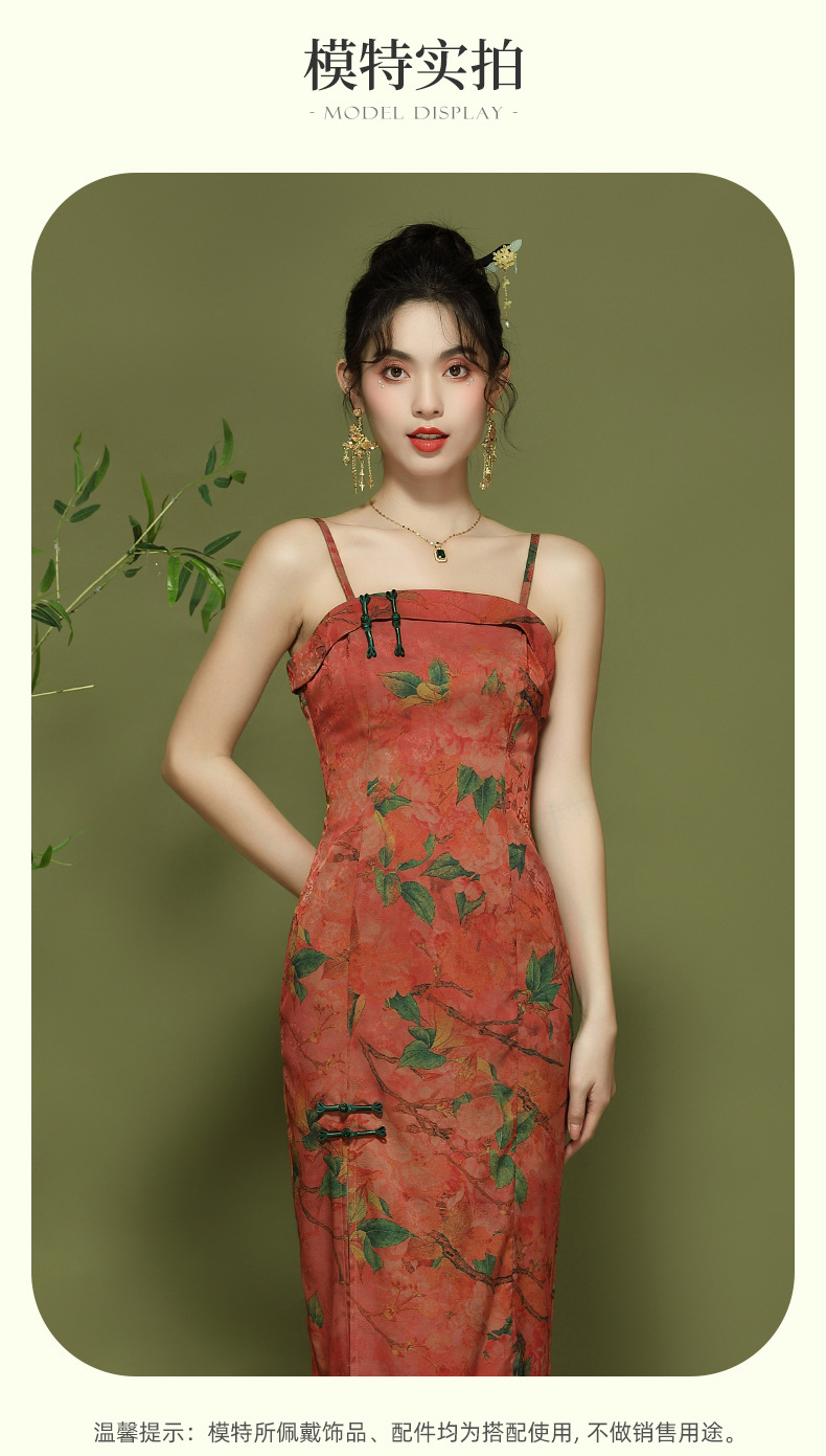 OYCP 24108中式复古国风日常改良吊带旗袍连衣裙