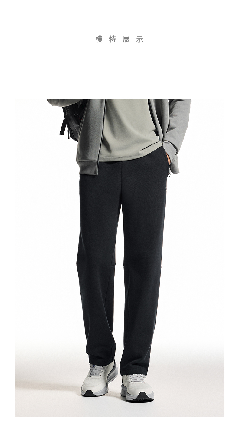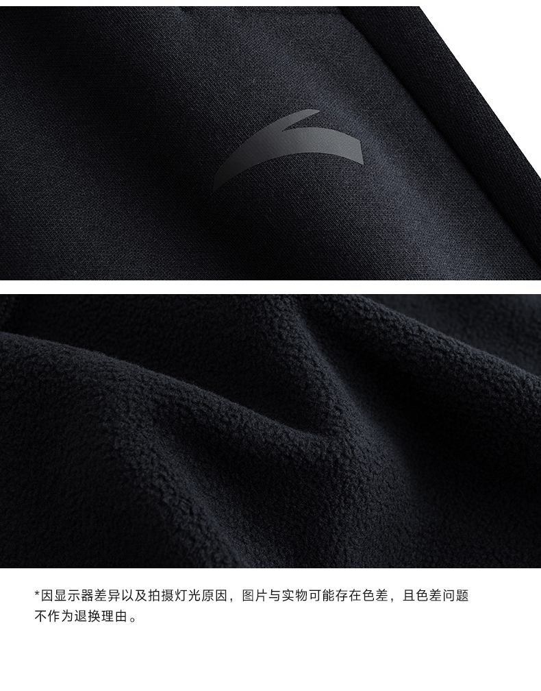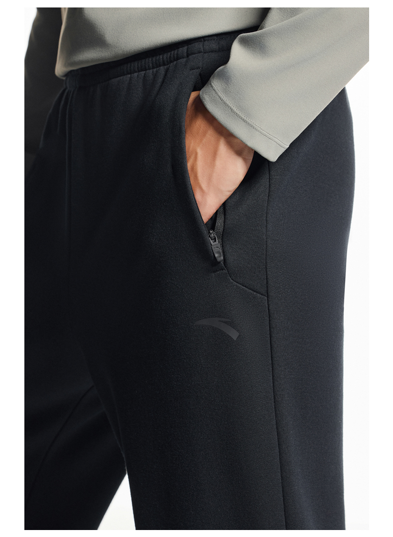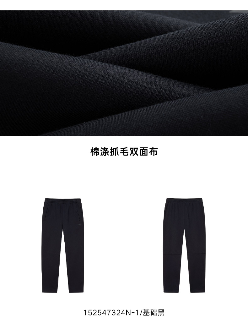 安踏加绒保暖针织运动长裤男冬季新款黑色跑步直筒卫裤152547324N