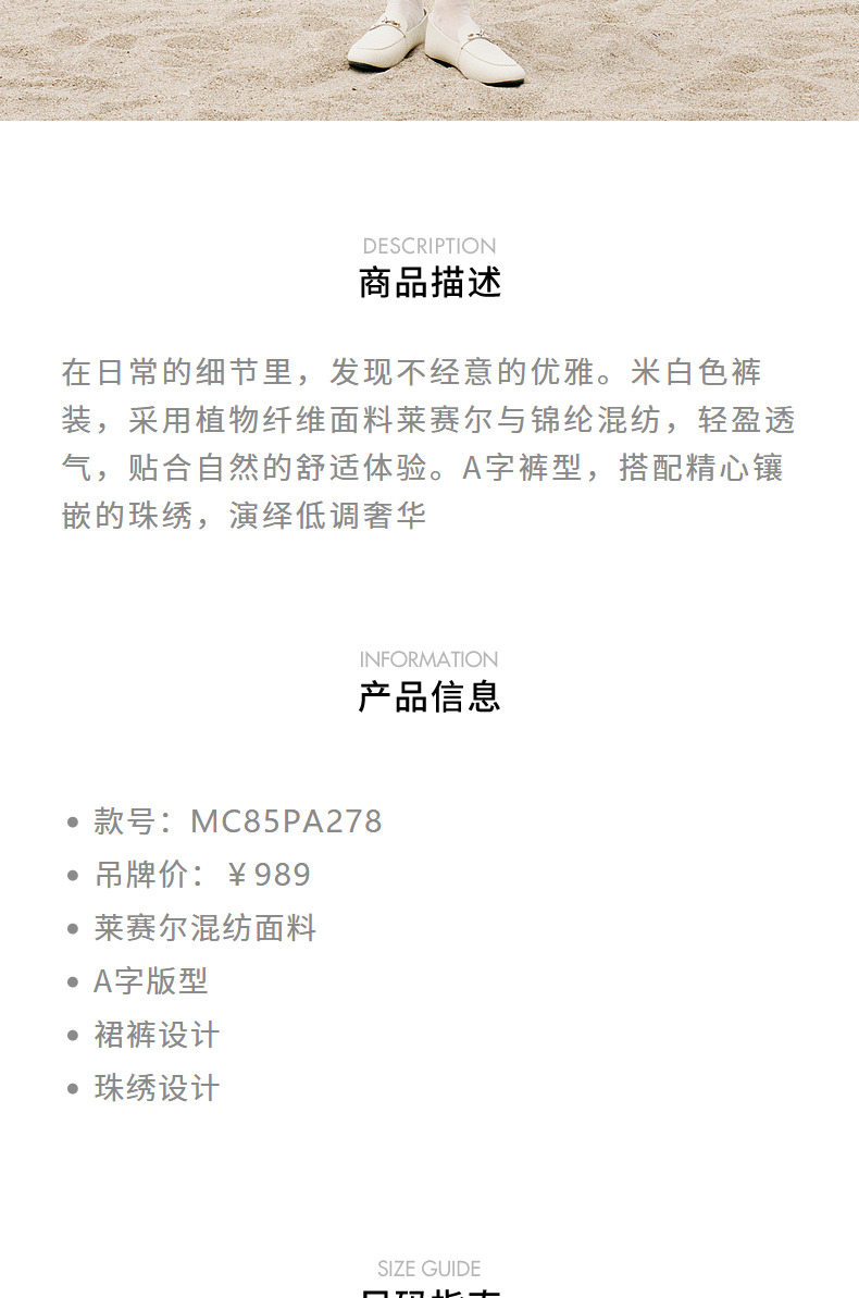 【海边度假-商场同款】MAXRIENY*休闲感A字型珠绣装饰裙裤(货号:MC85PA278)