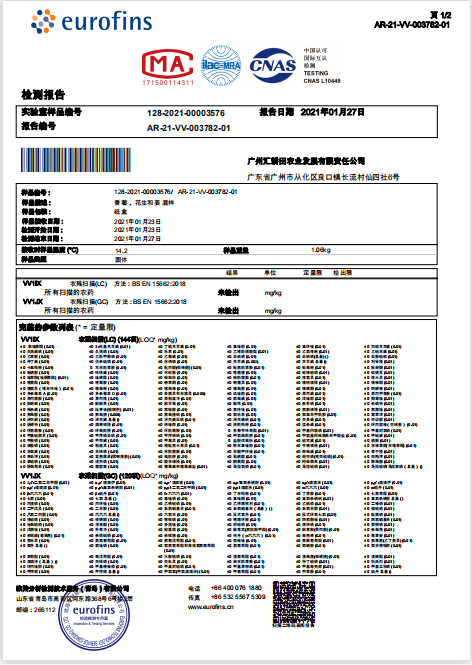 2021年264项农残检测报告(未检出)