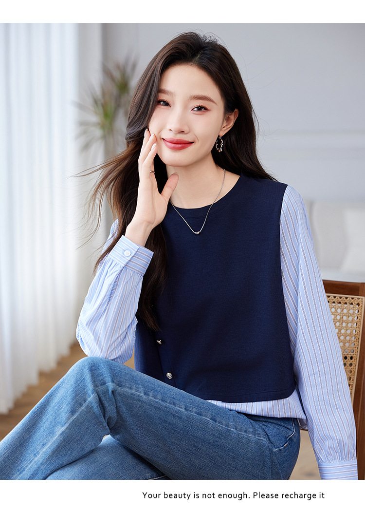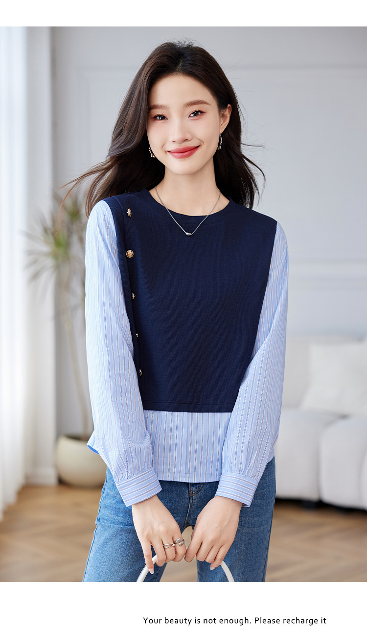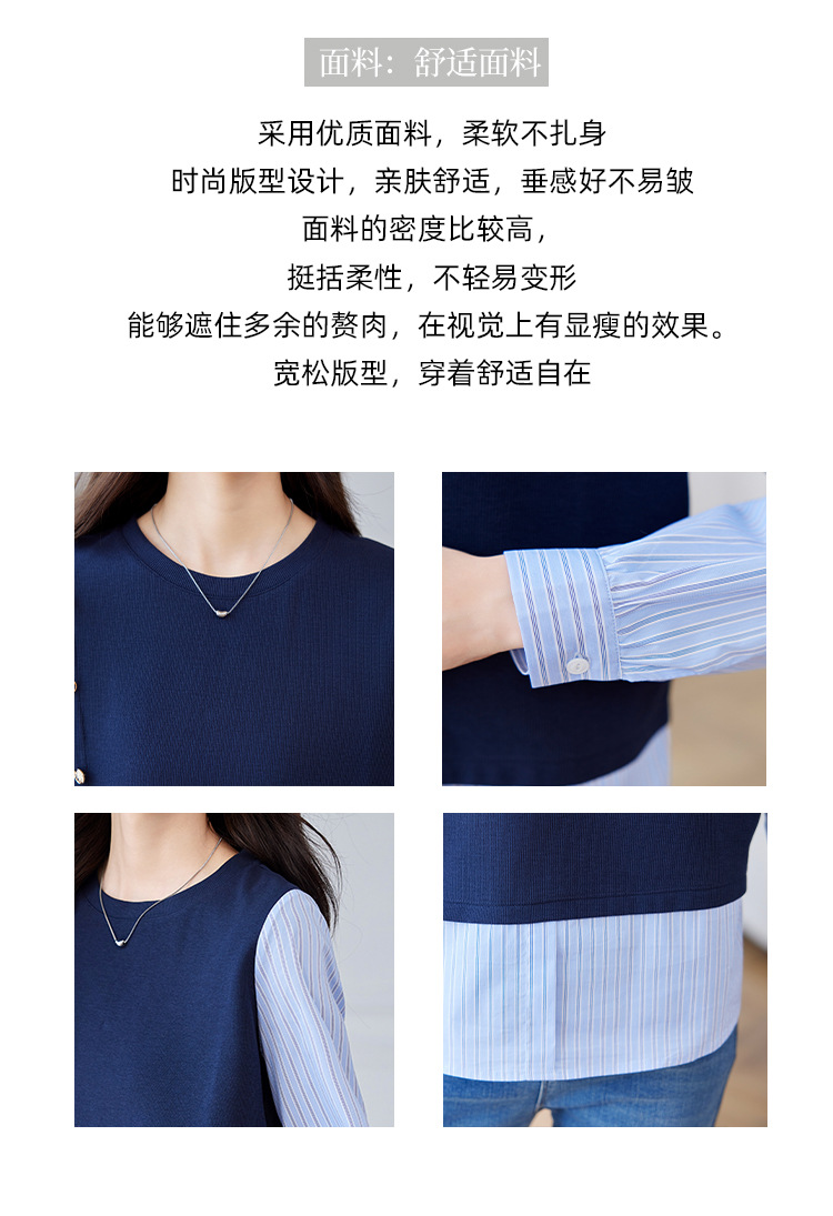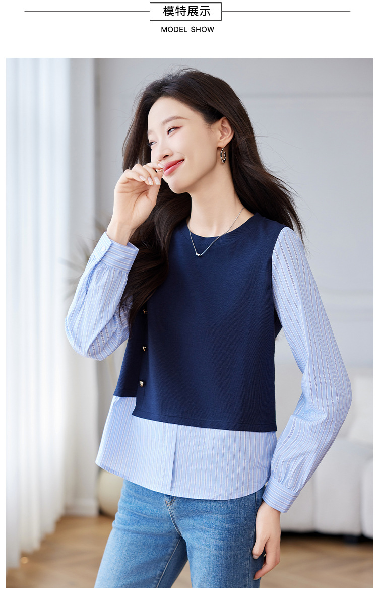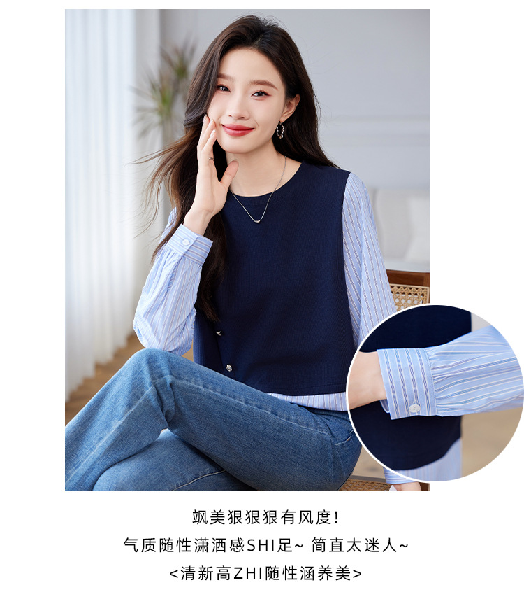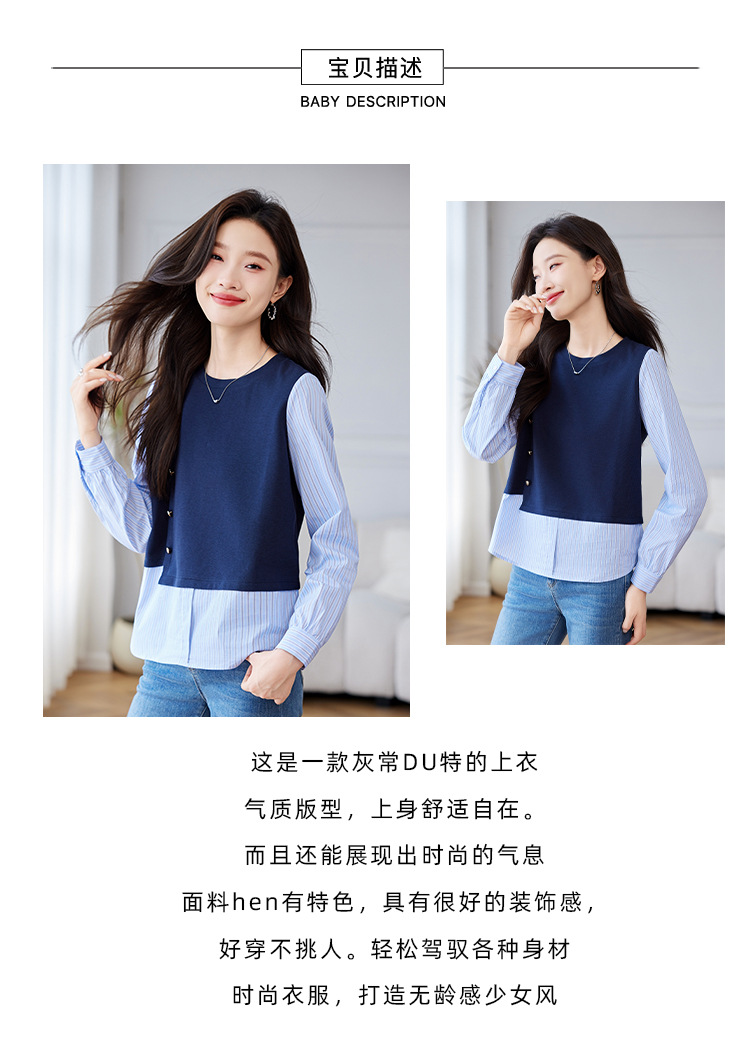 CC-QL-Y8552假两件拼接长袖衬衫女春秋2025新款衬衣时尚洋气卫衣条纹打底上衣