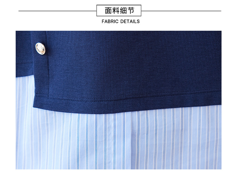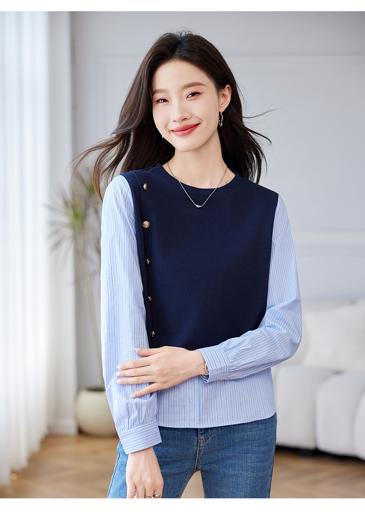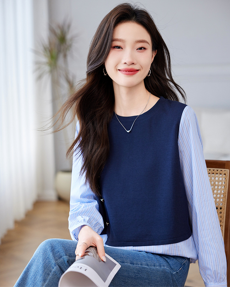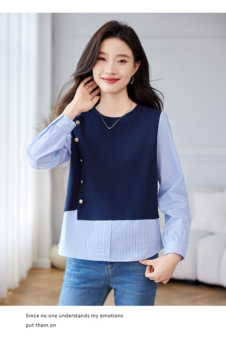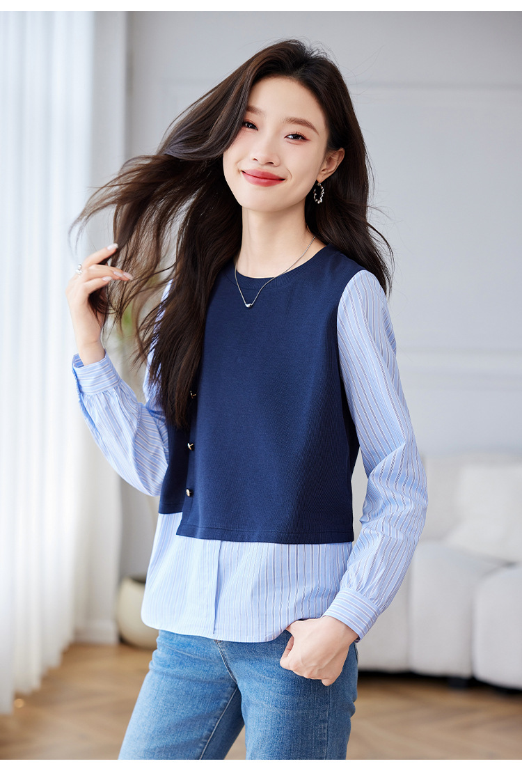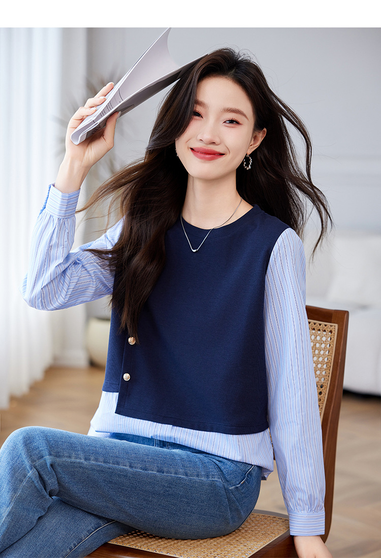 CC-QL-Y8552假两件拼接长袖衬衫女春秋2025新款衬衣时尚洋气卫衣条纹打底上衣