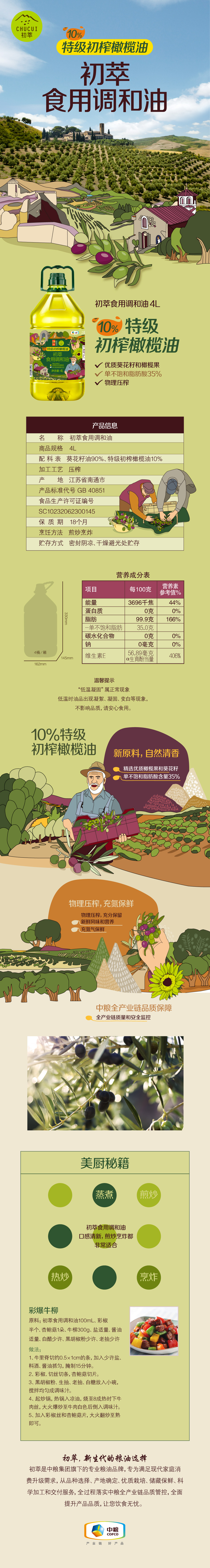 初萃 食用植物调和油4L(葵花籽+橄榄油)食用油