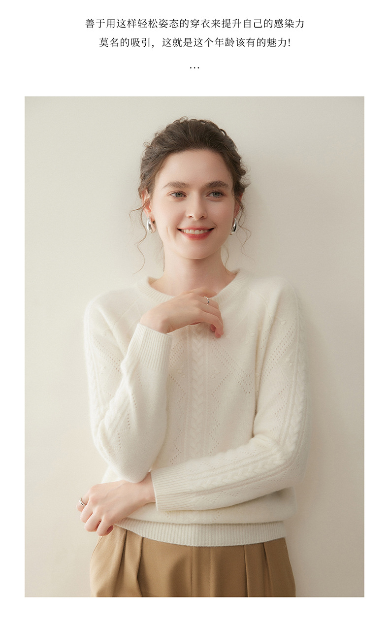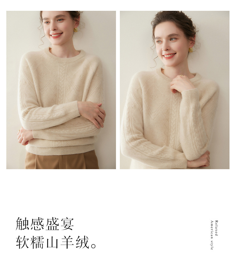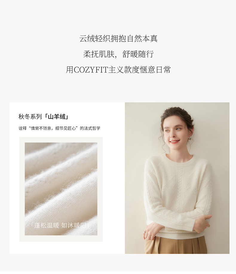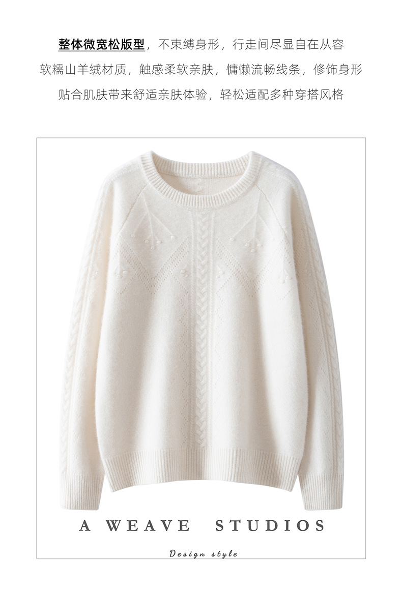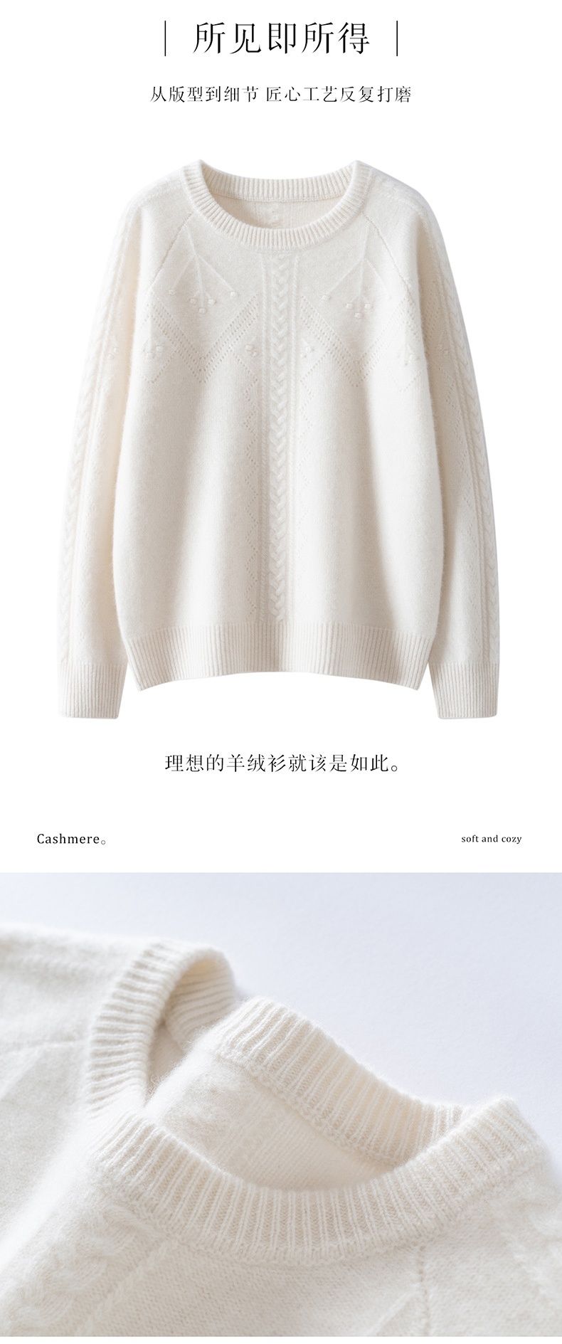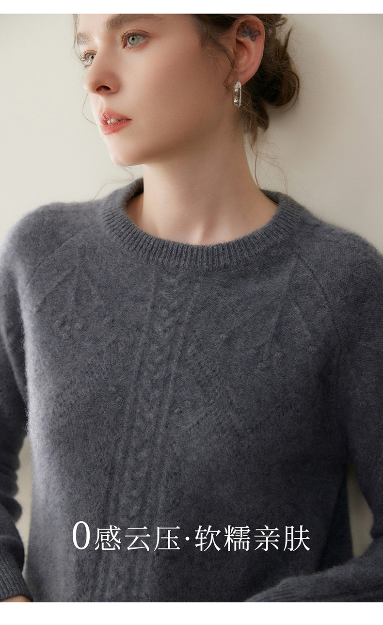 「高货rig」全新升级【铂金会员413/天猫559/差价146】(04659)洛诗琳气质圆领加厚羊绒衫2025秋冬宽松显瘦加厚麻花毛衣04659