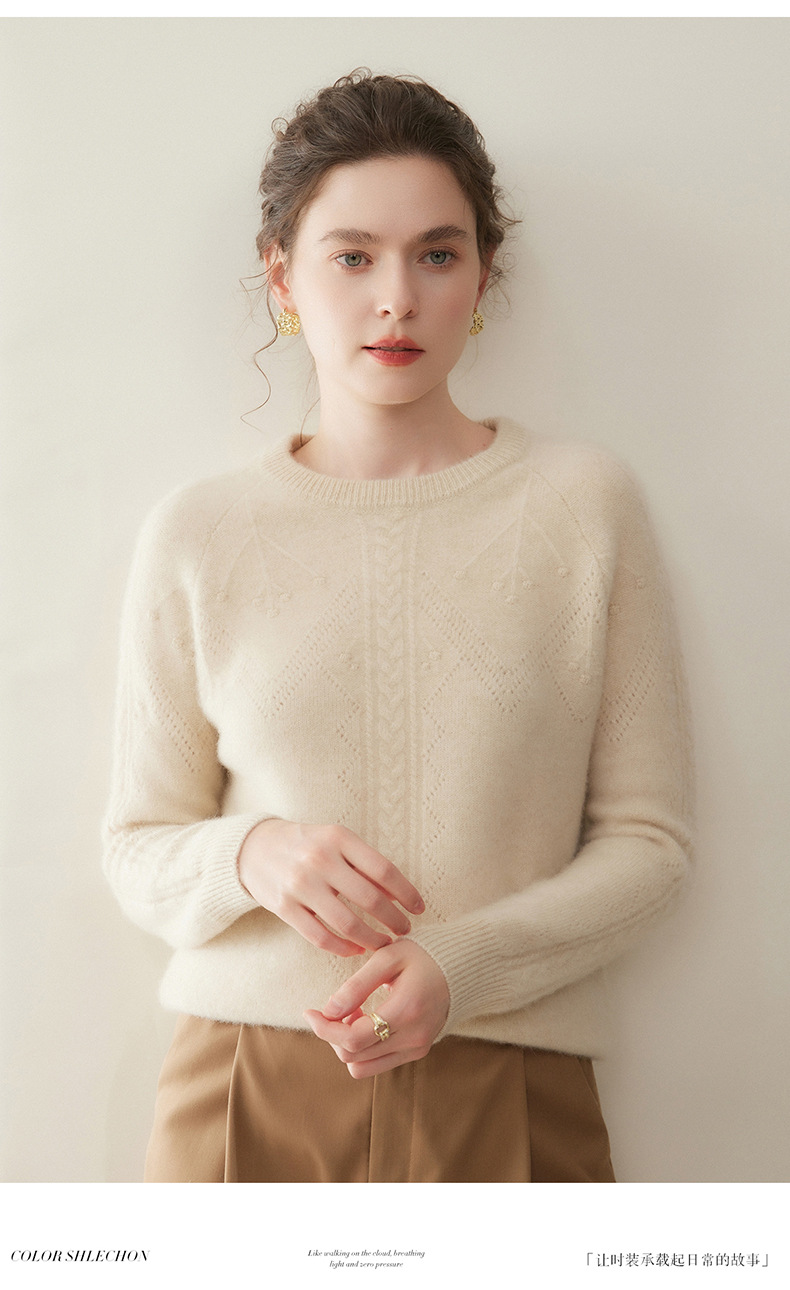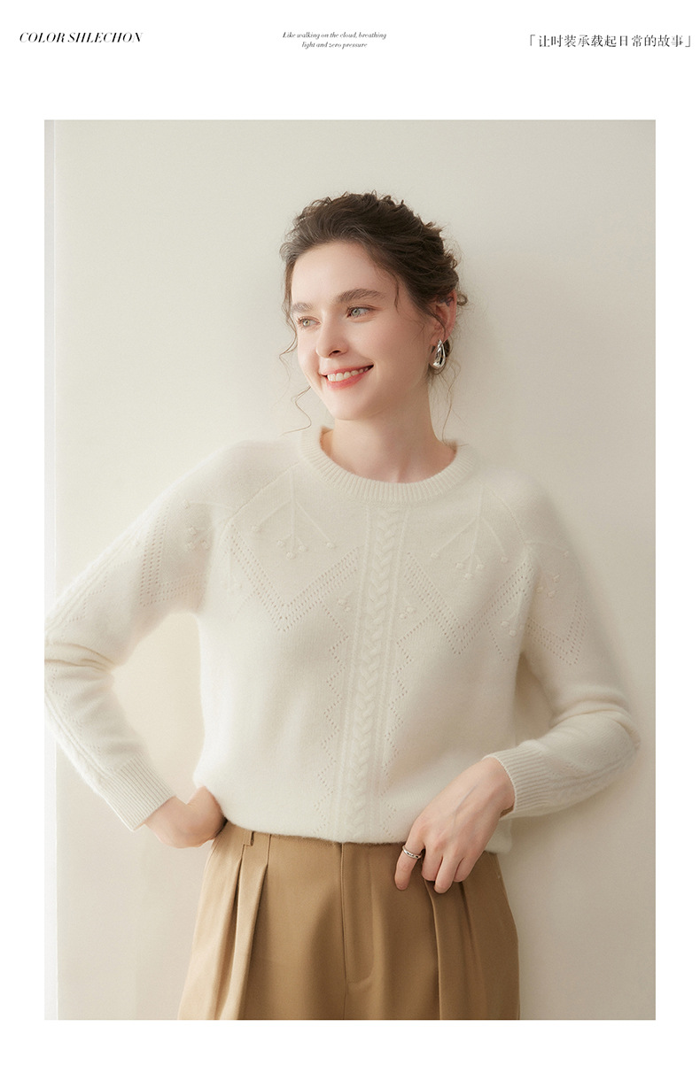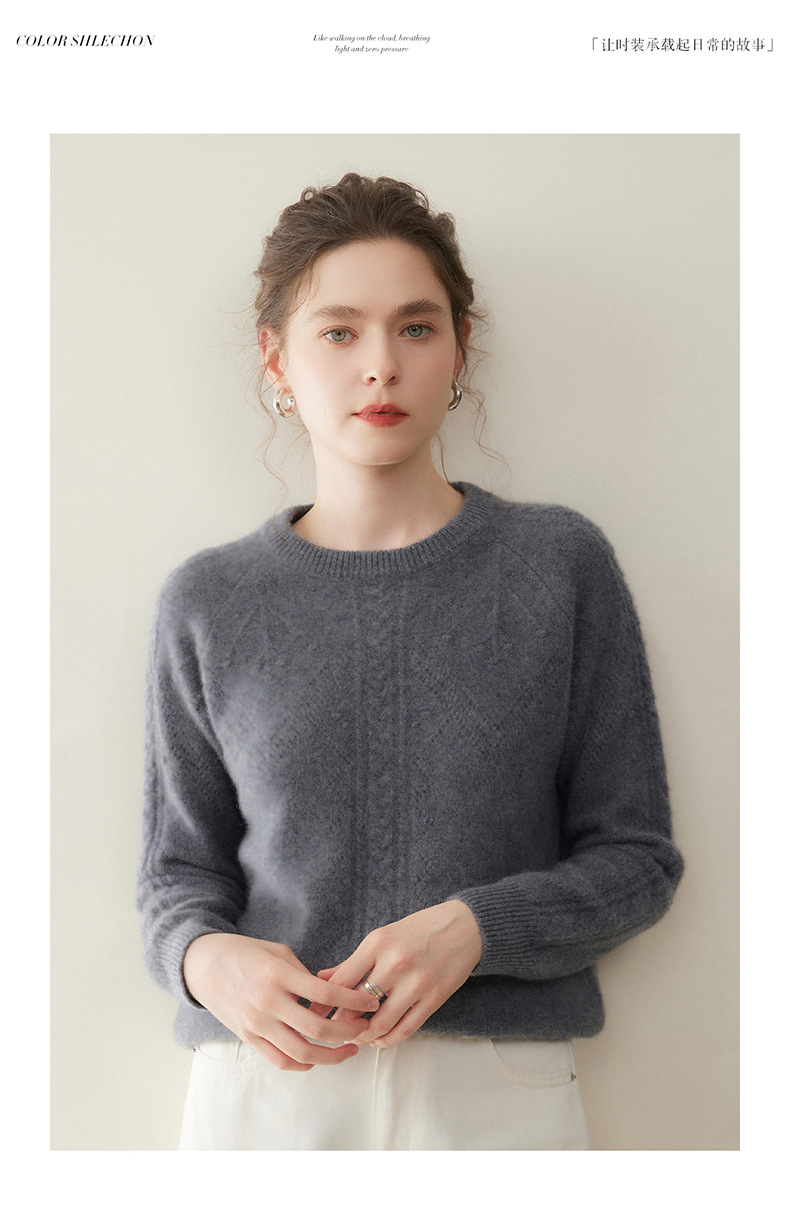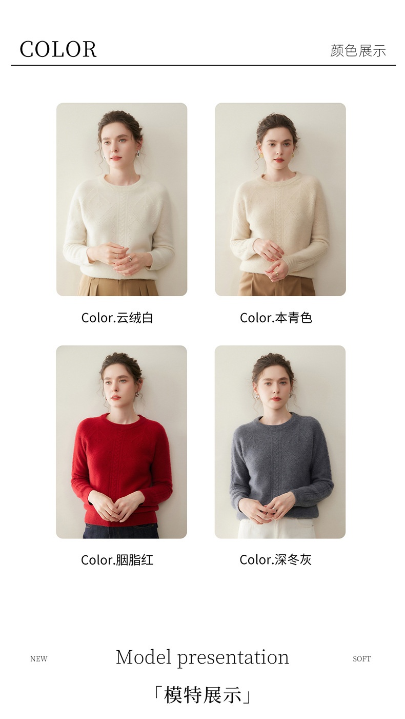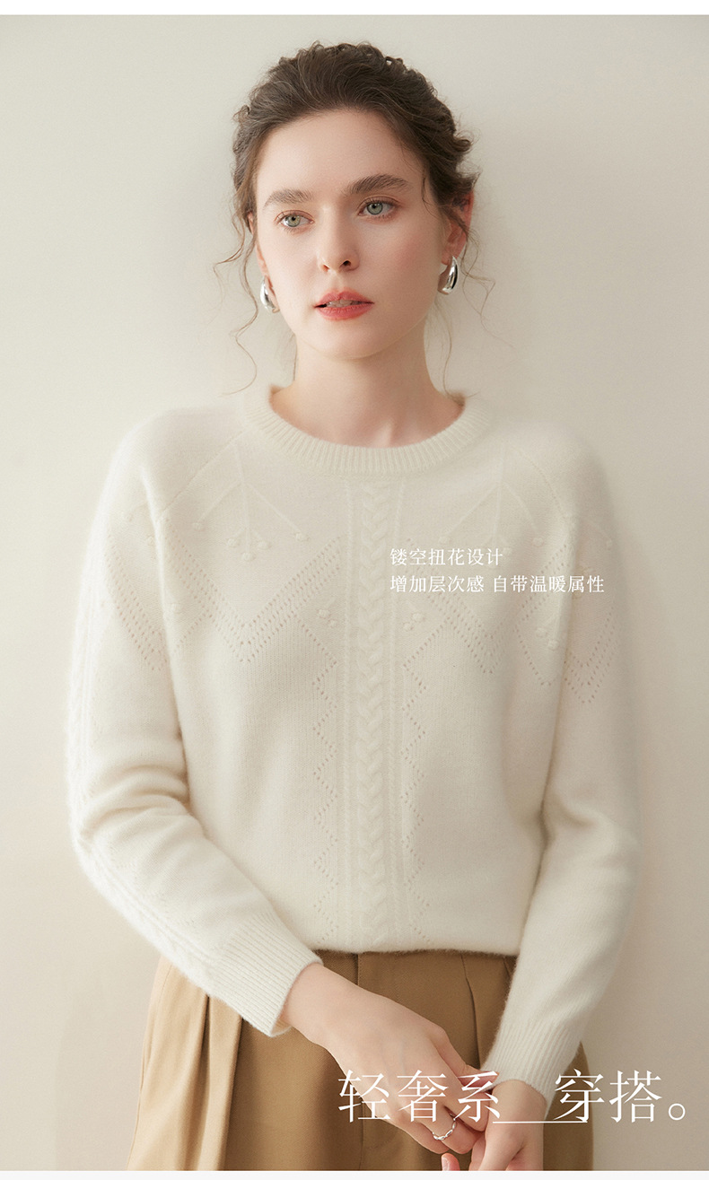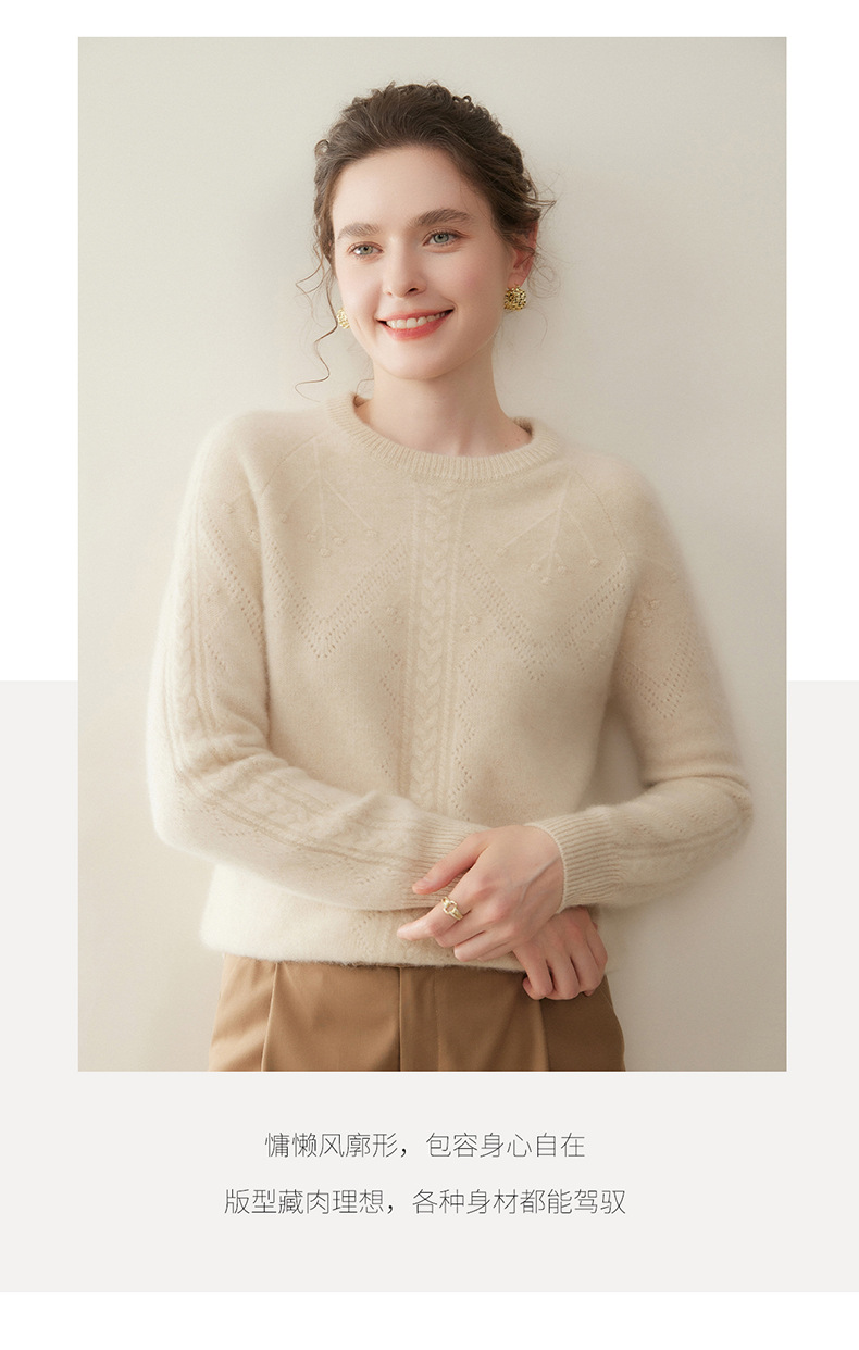 「高货rig」全新升级【铂金会员413/天猫559/差价146】(04659)洛诗琳气质圆领加厚羊绒衫2025秋冬宽松显瘦加厚麻花毛衣04659