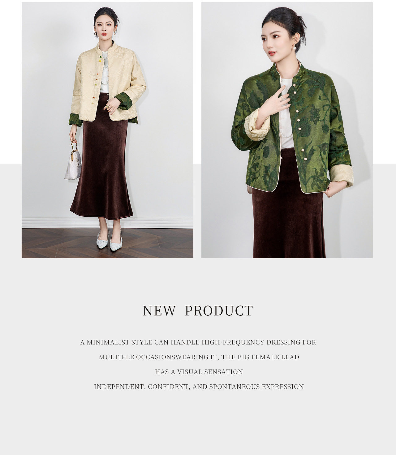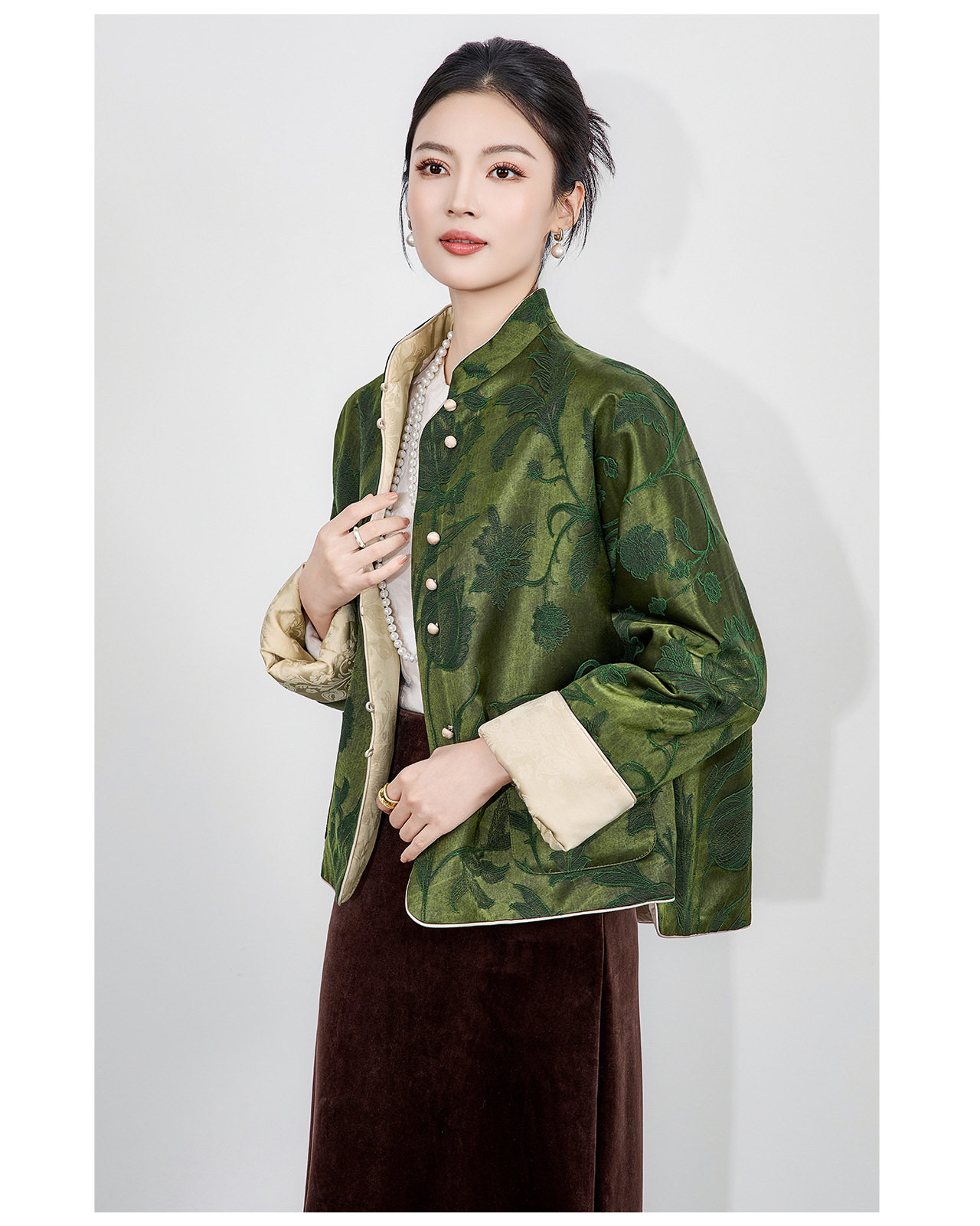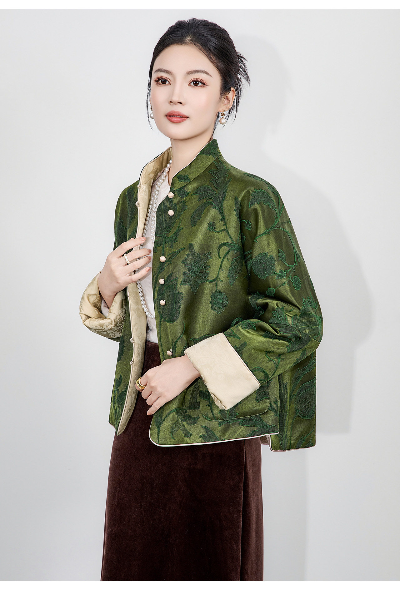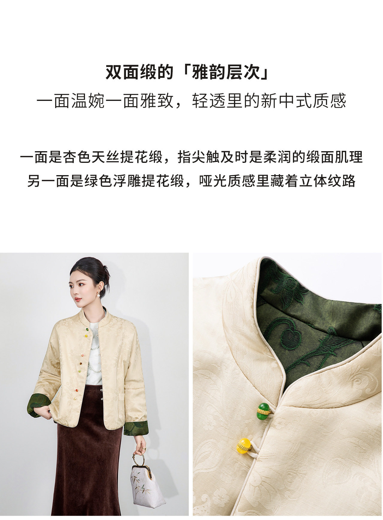 「高货wl」全新升级【铂金会员615/天猫829/差价214】(20152)洛诗琳双面穿新中式外套2025冬季天丝提花缎立领盘扣棉服