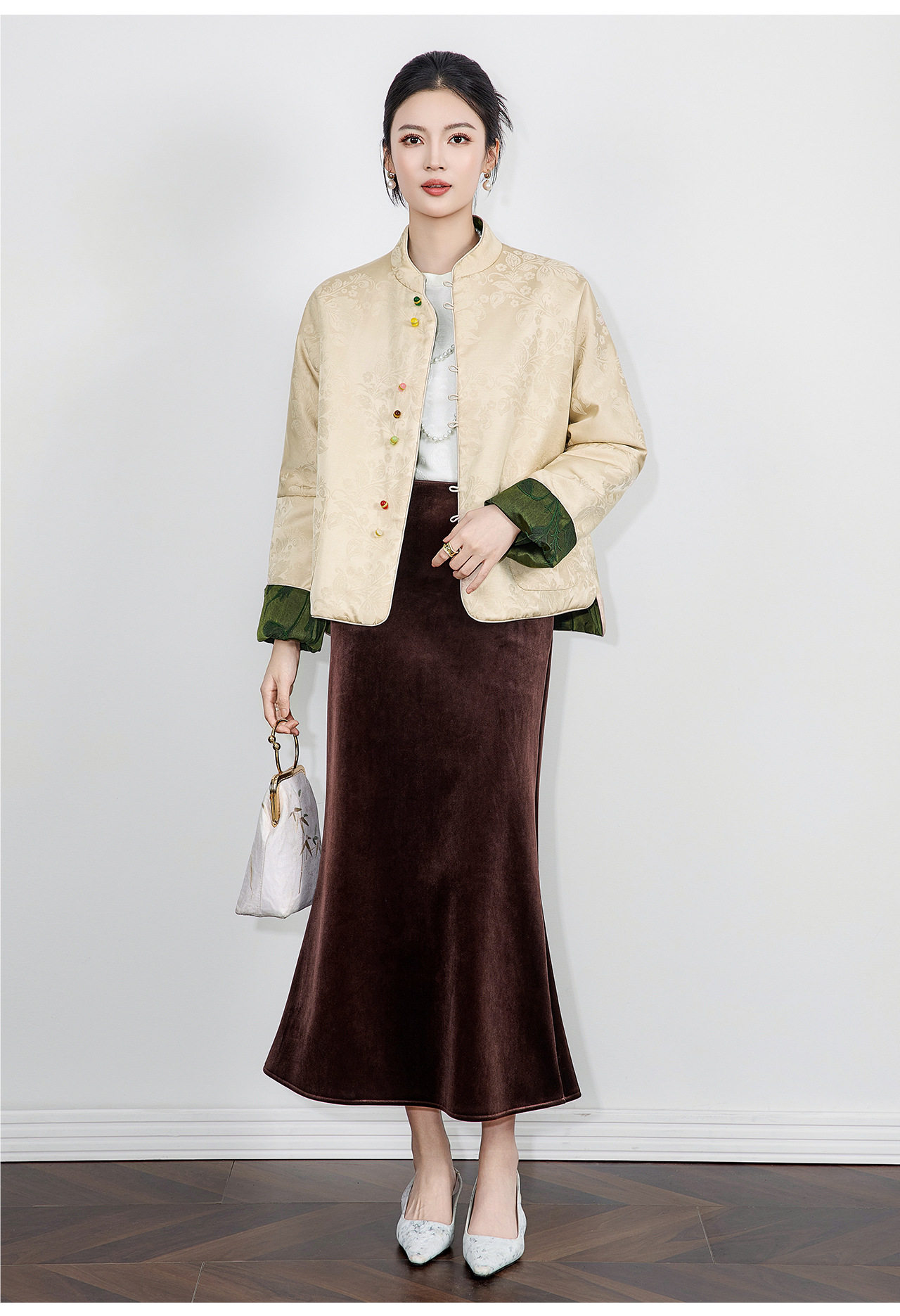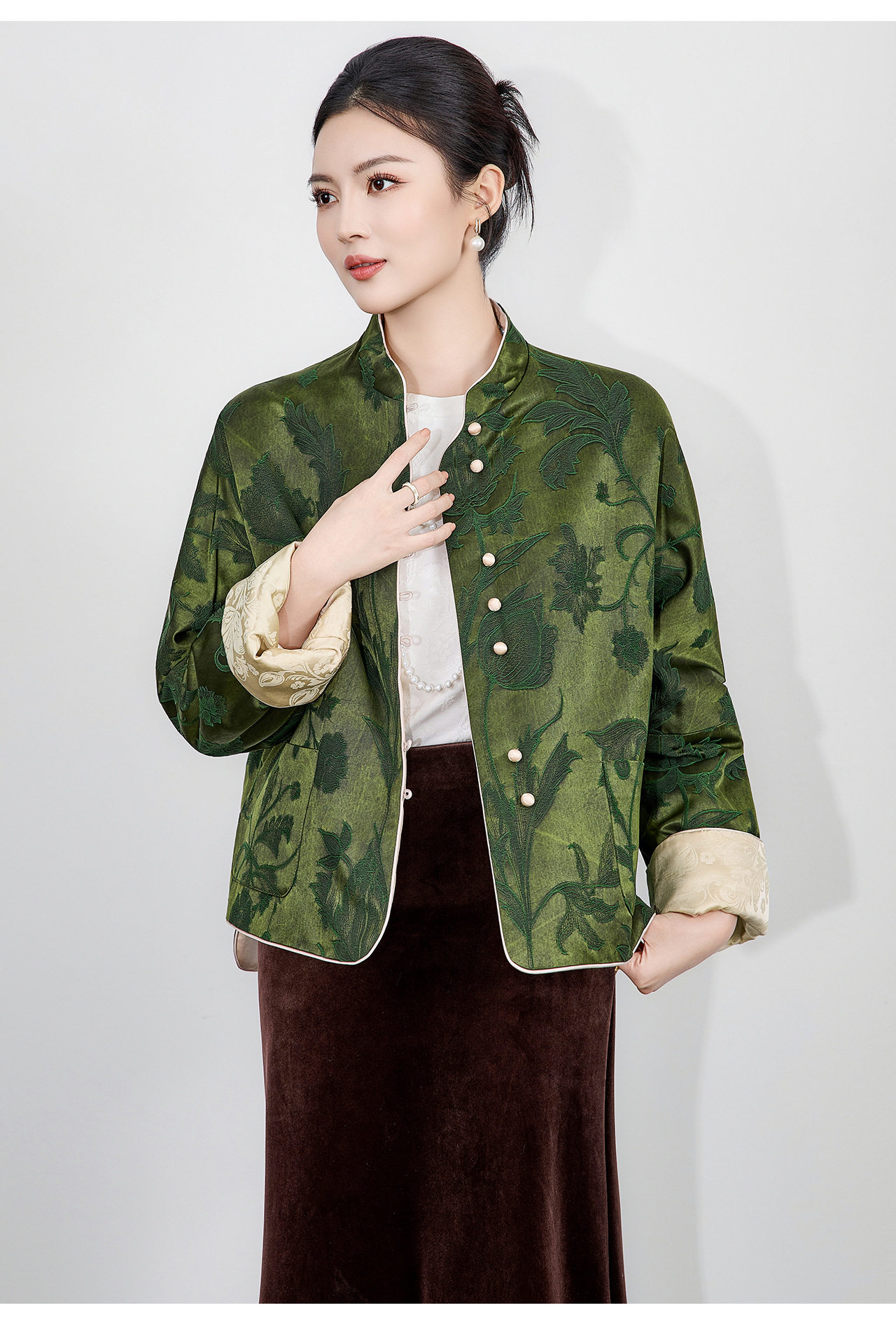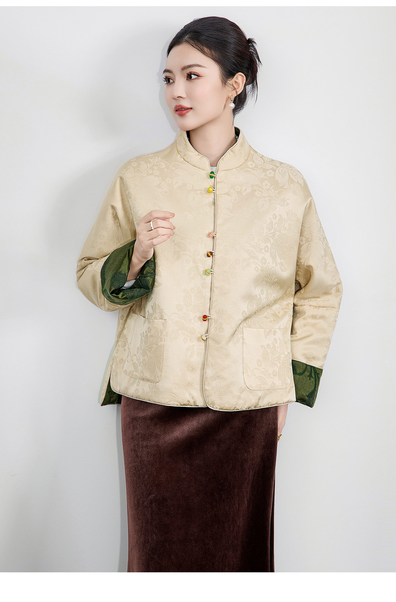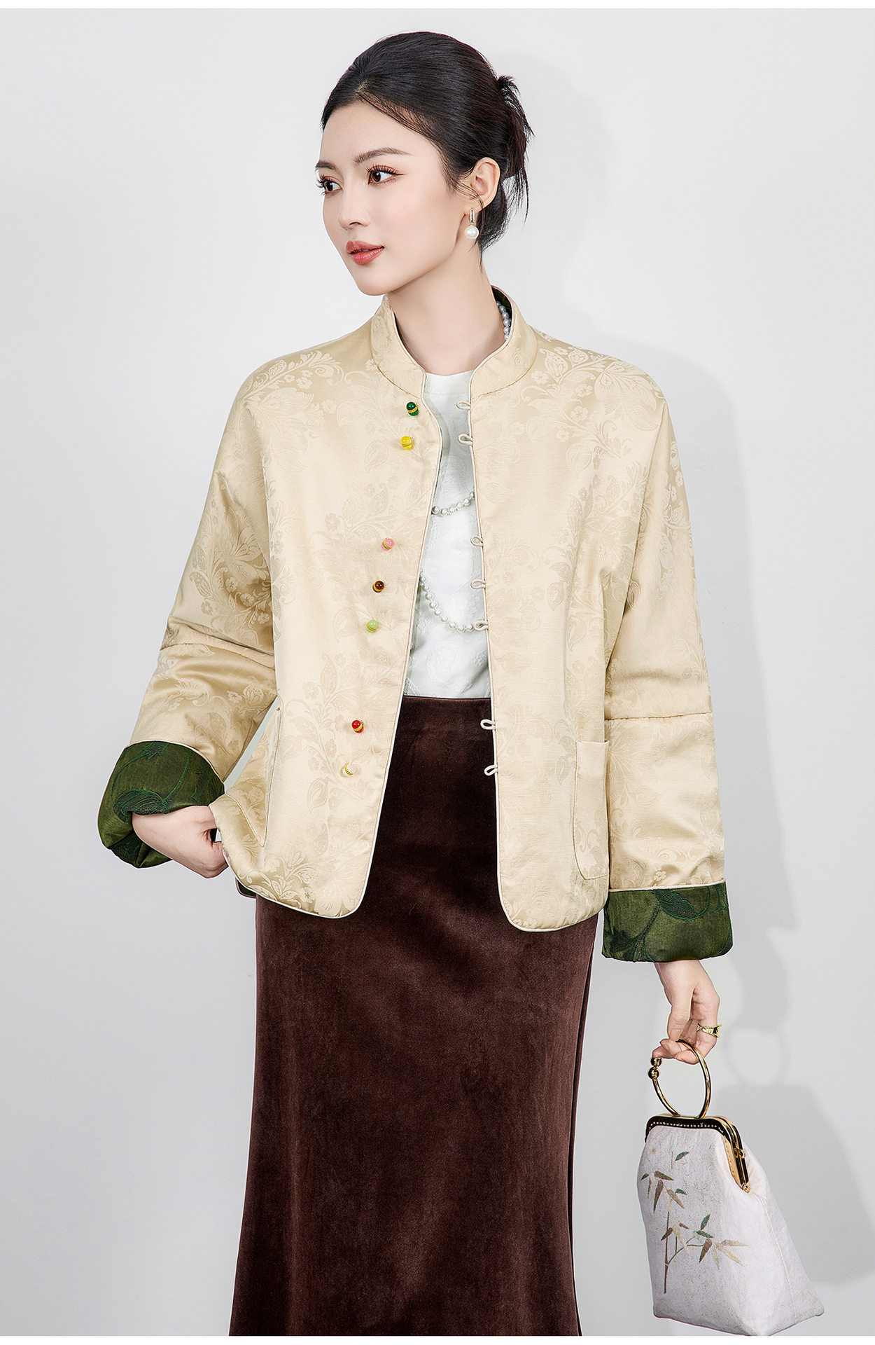 「高货wl」全新升级【铂金会员615/天猫829/差价214】(20152)洛诗琳双面穿新中式外套2025冬季天丝提花缎立领盘扣棉服