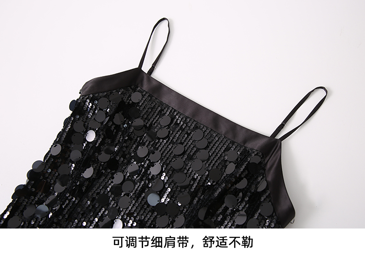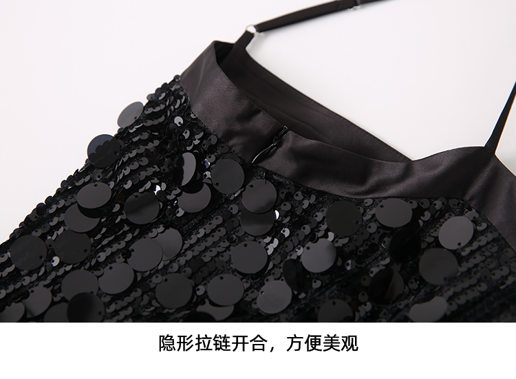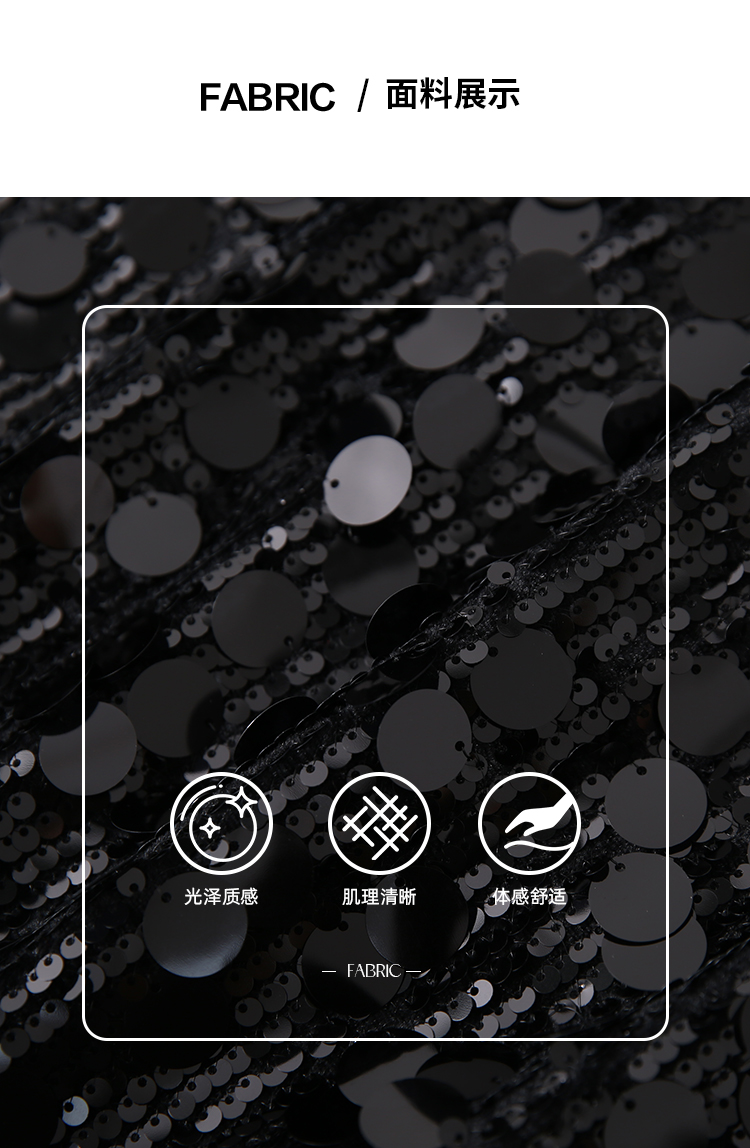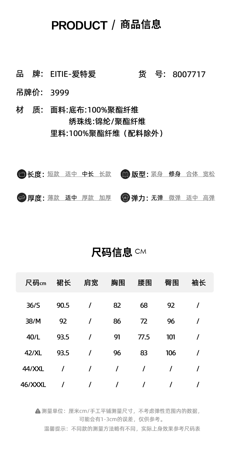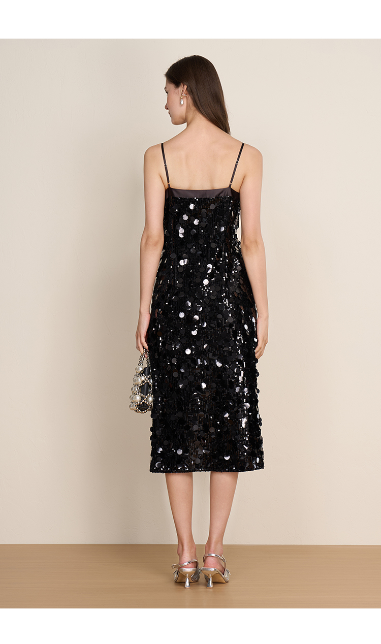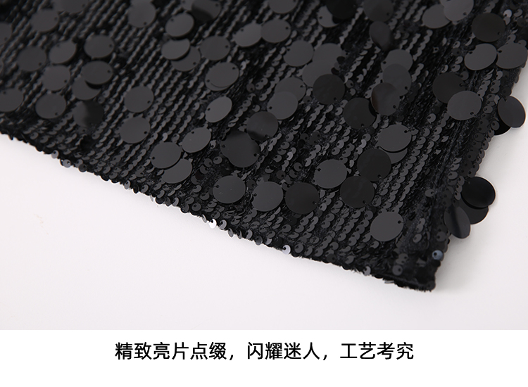 EITIE爱特爱冬季新款奢华感黑色亮片立体感收腰礼服连衣裙8007717