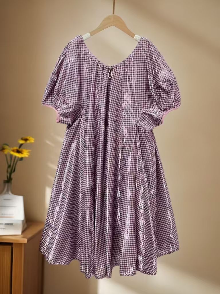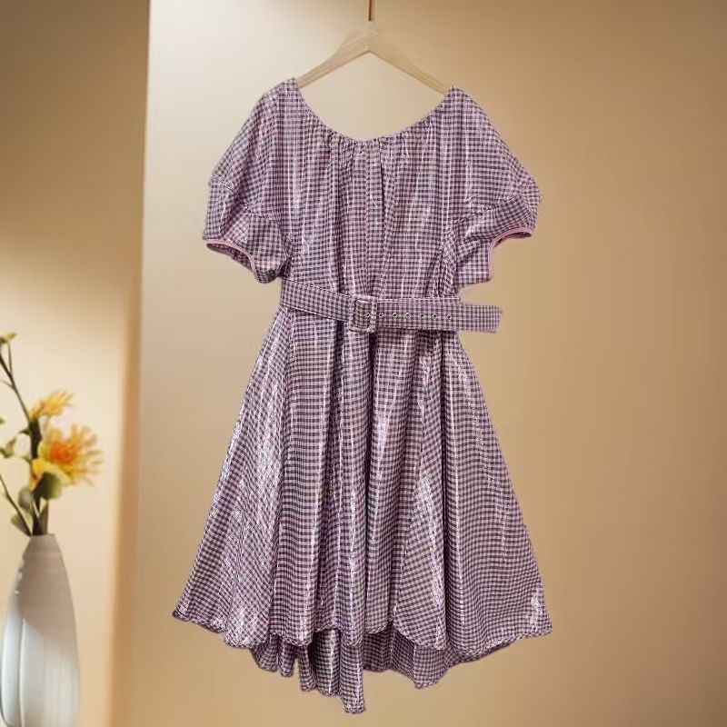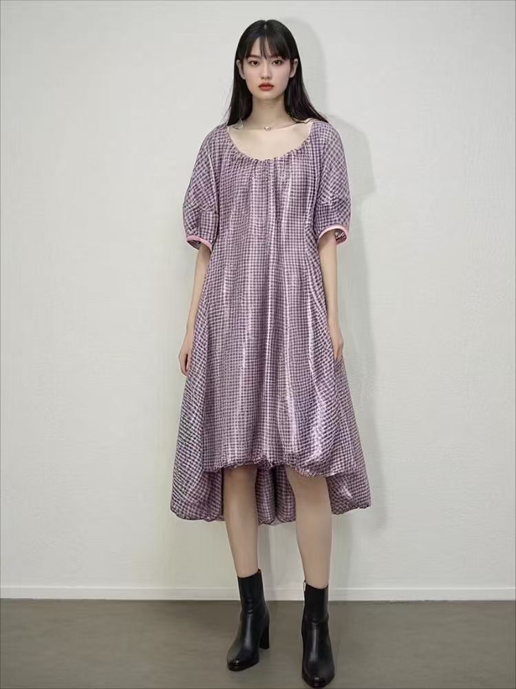 秒杀价~NO退 设计师潮牌1348格子设计感时尚连衣裙-喜出