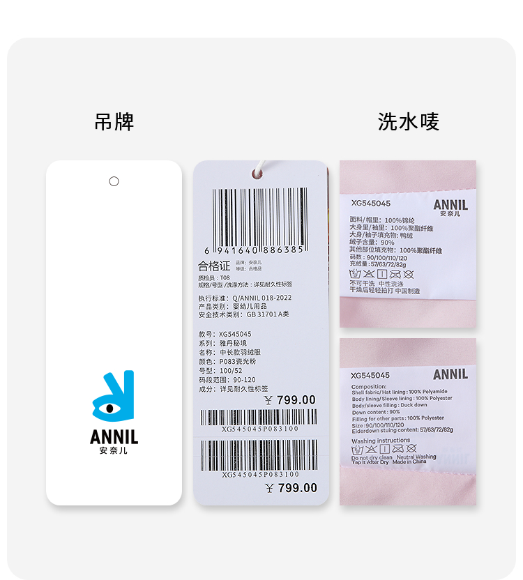 【实体店同款】女童中长款羽绒服冬季新款安奈儿童装XG545045
