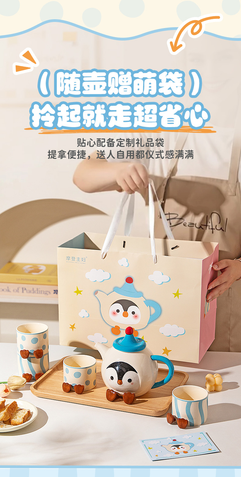 摩登主妇陶瓷泡茶壶家用水杯子茶杯生日乔迁礼物新婚结婚茶具套装