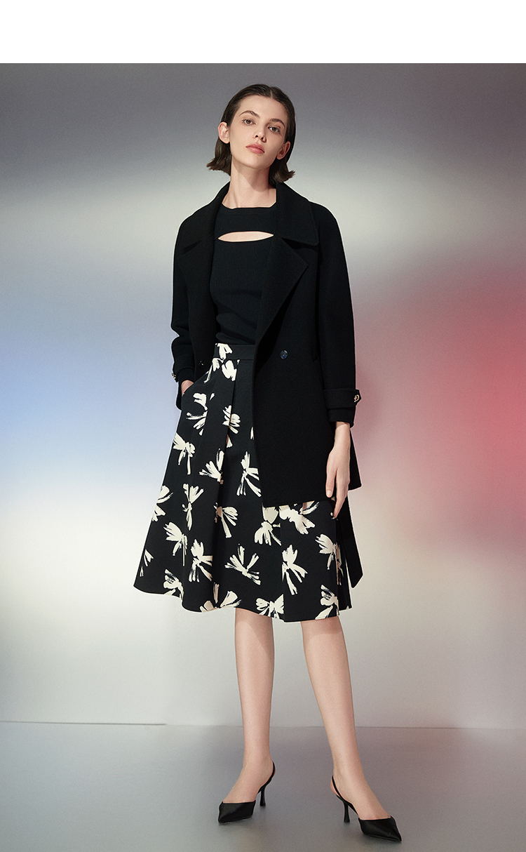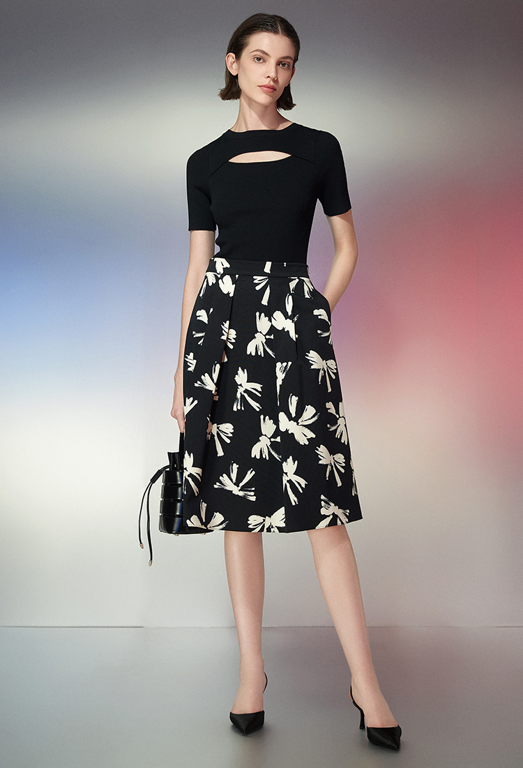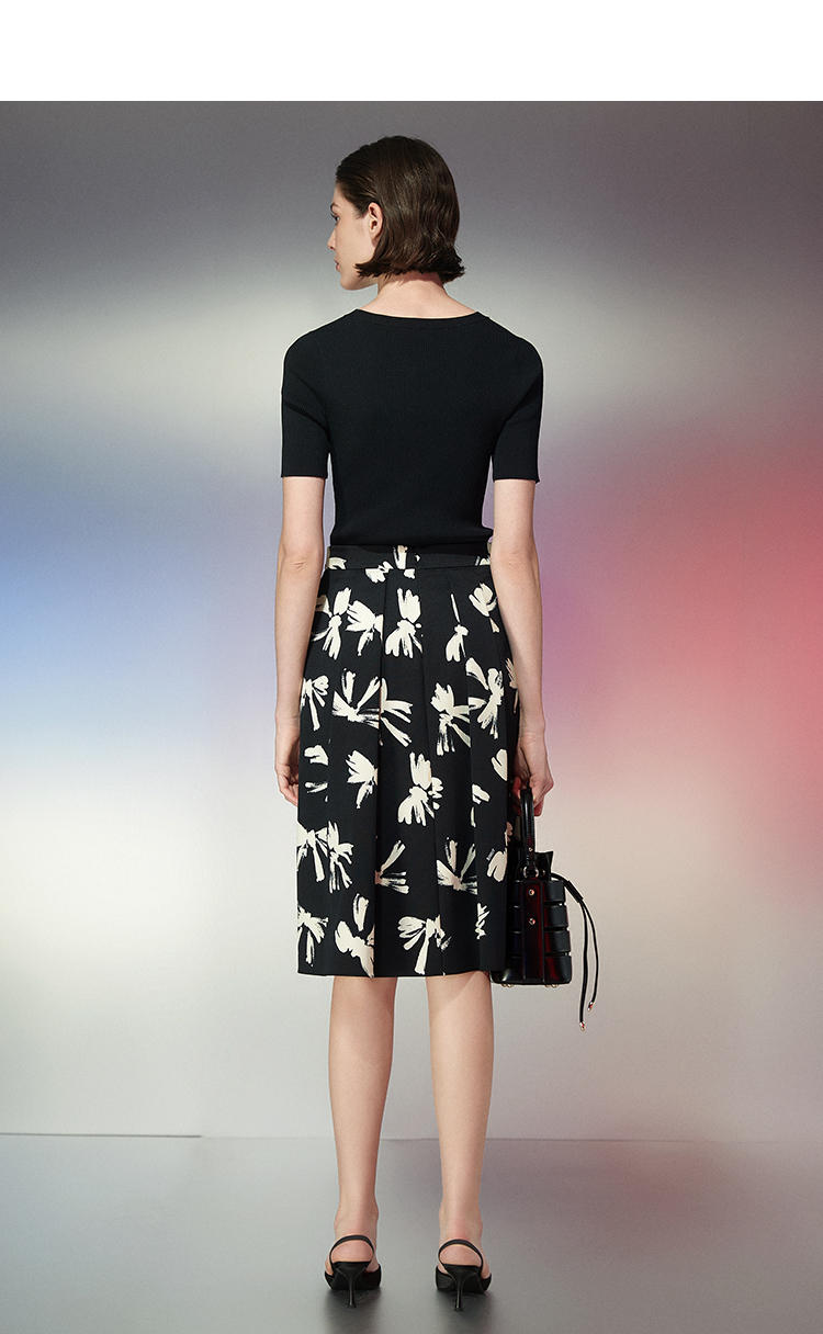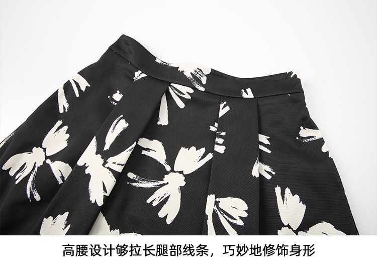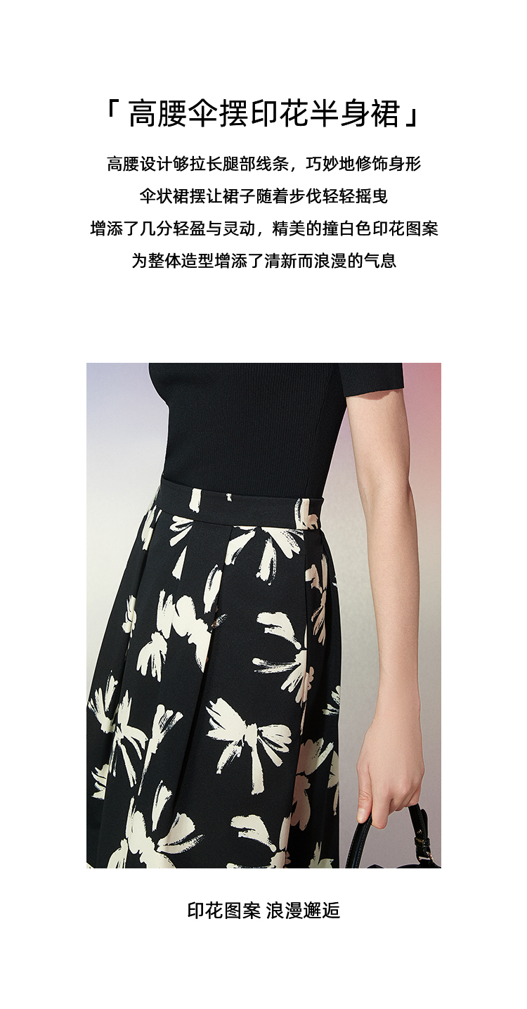 EITIE爱特爱春季新款时尚高级气质高腰印花显瘦舒适半身裙7706401