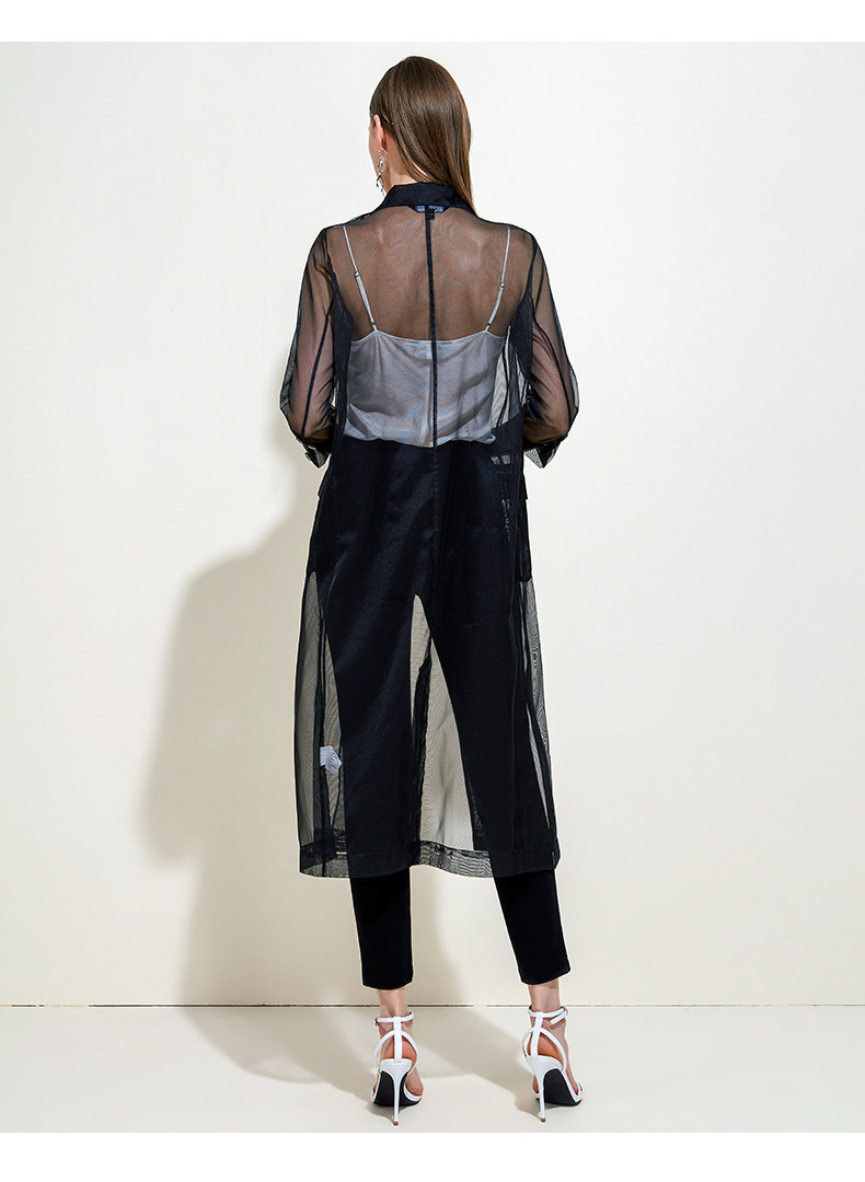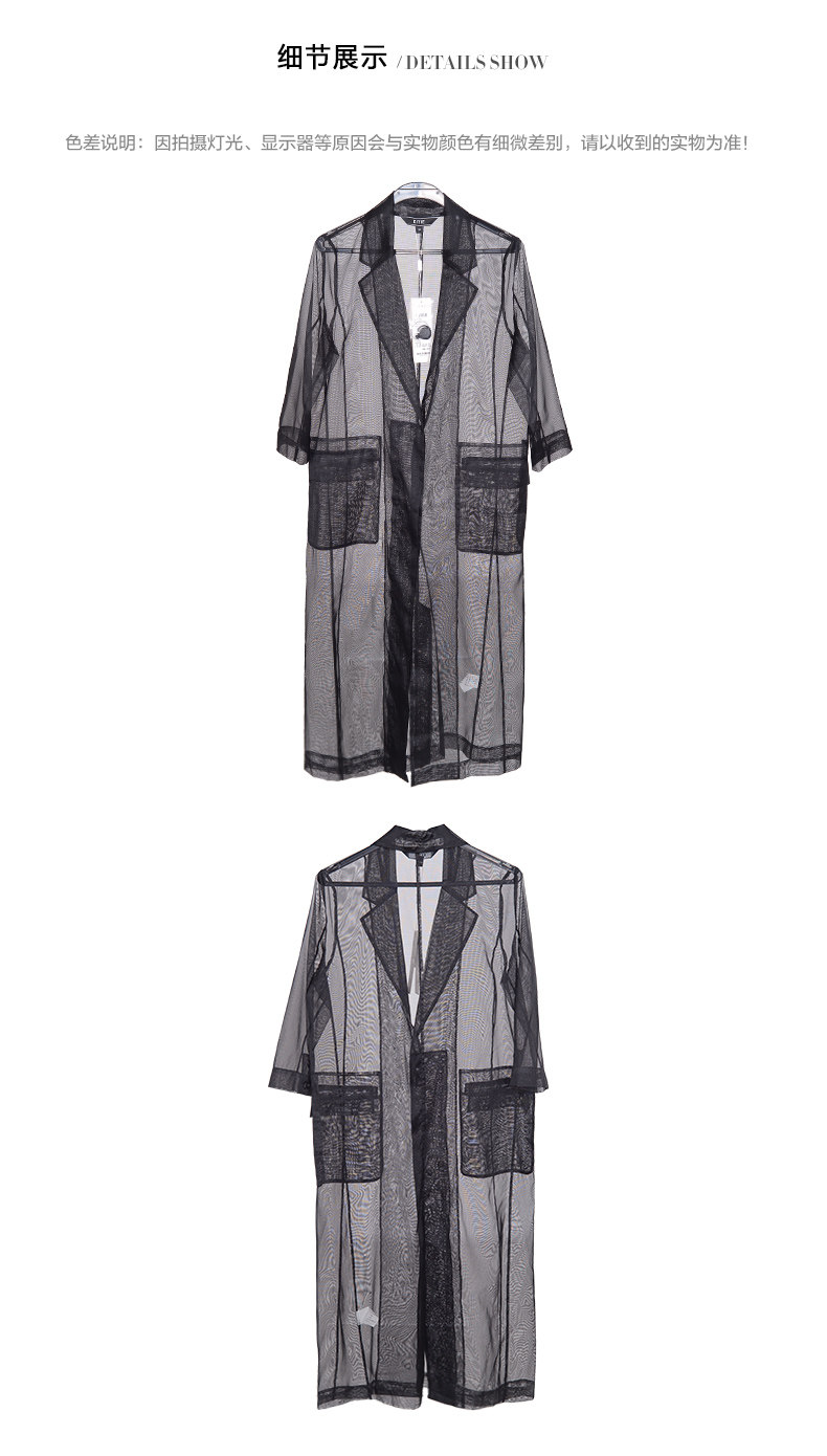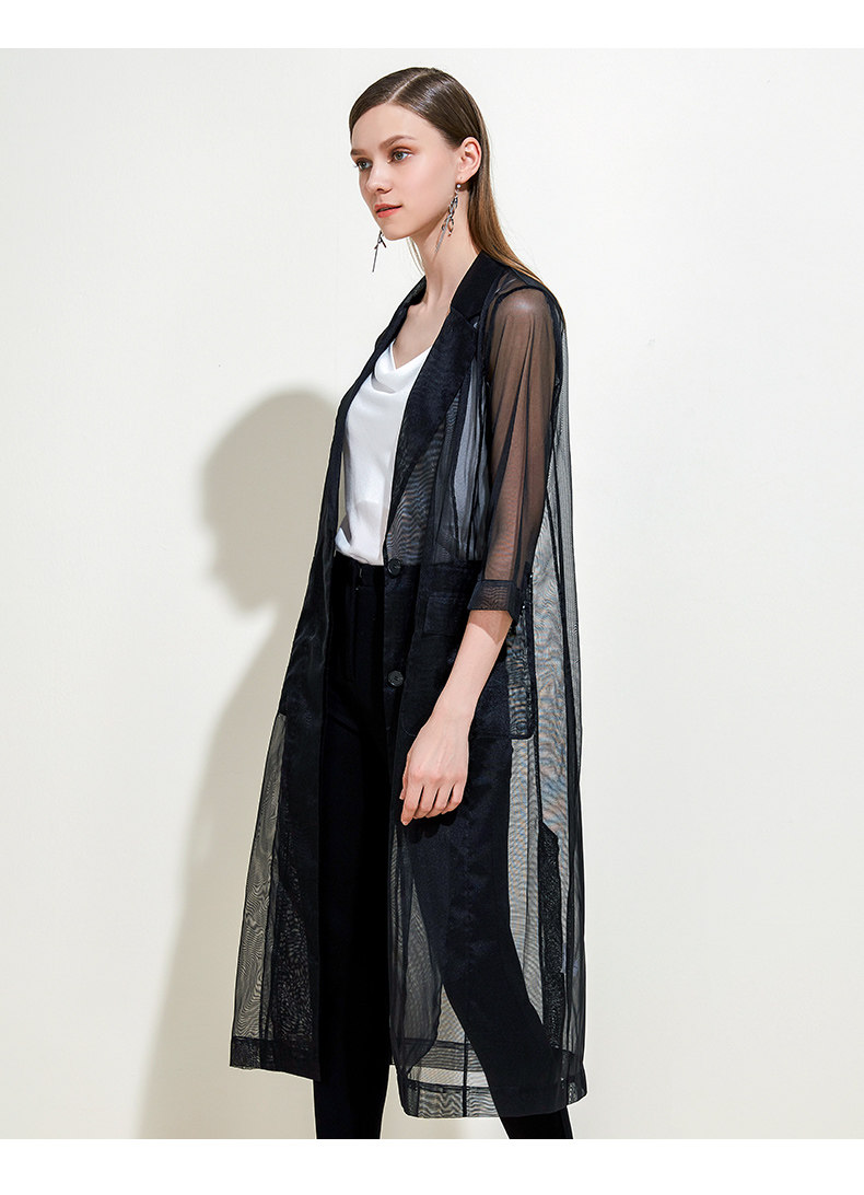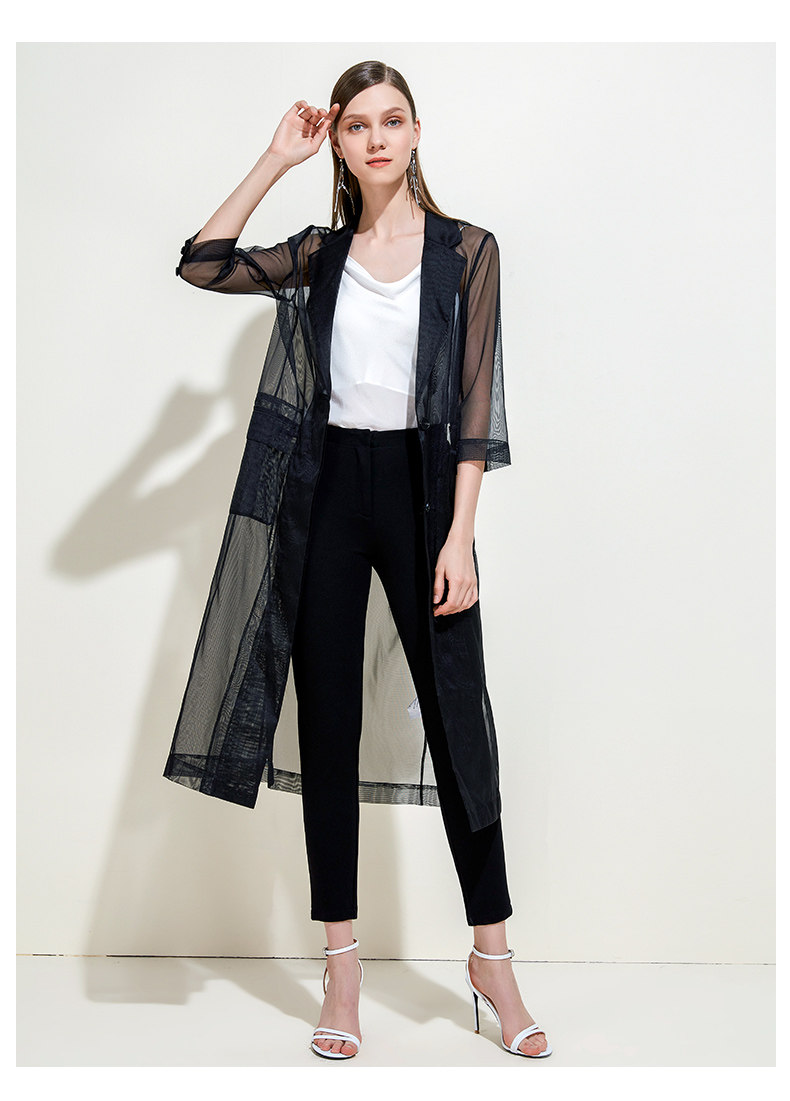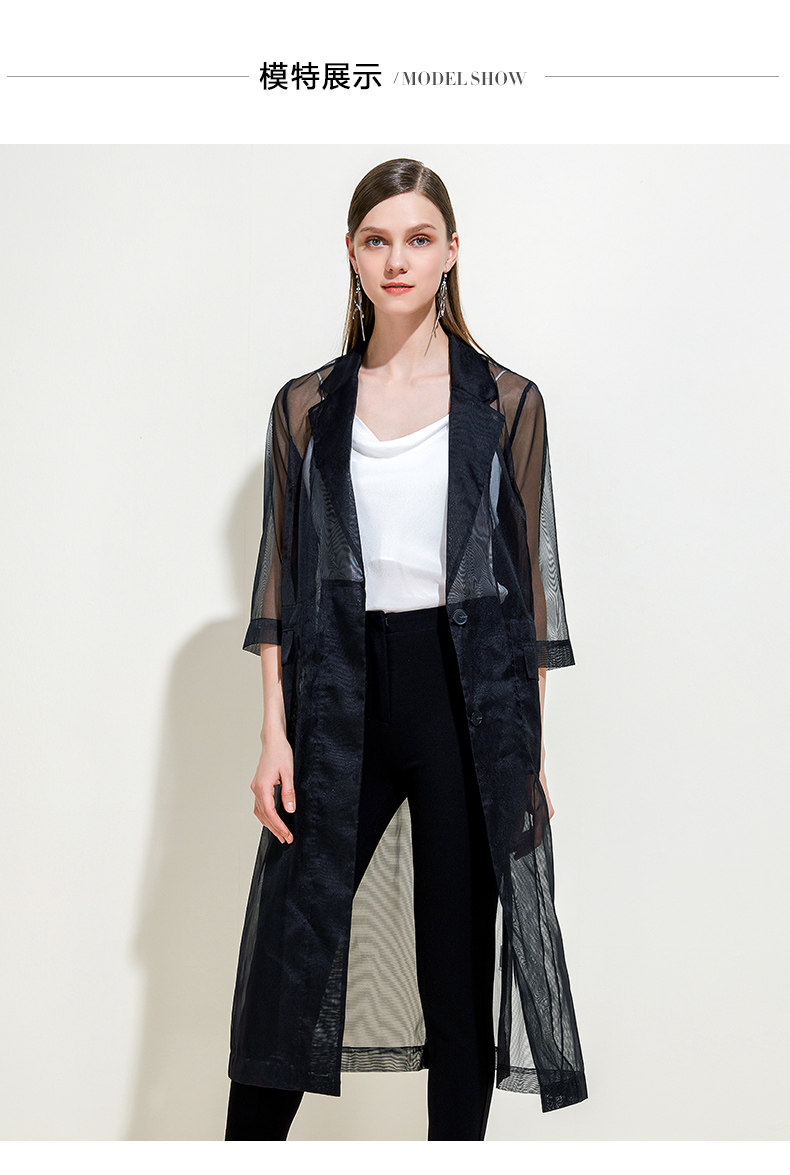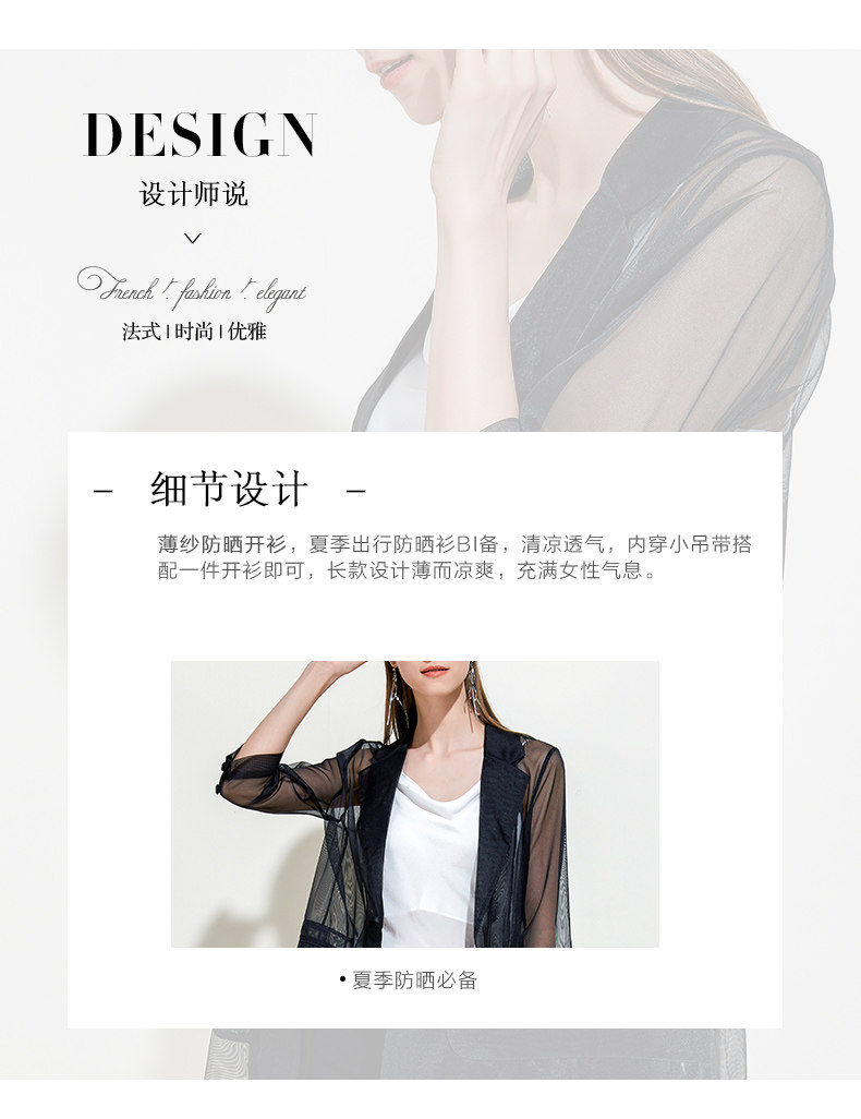 EITIE爱特爱女装夏季新品宽松翻领轻薄透气长款薄纱防晒开衫5904615