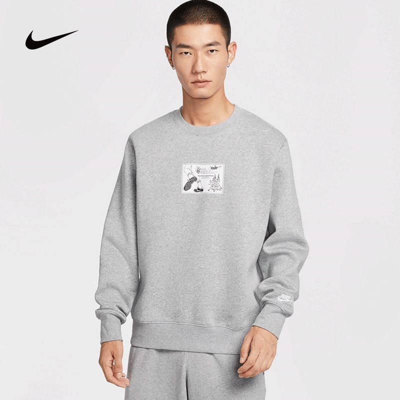 Nike耐克男子加绒圆领卫衣冬季休闲图案宽松针织套头衫HV1245-063
