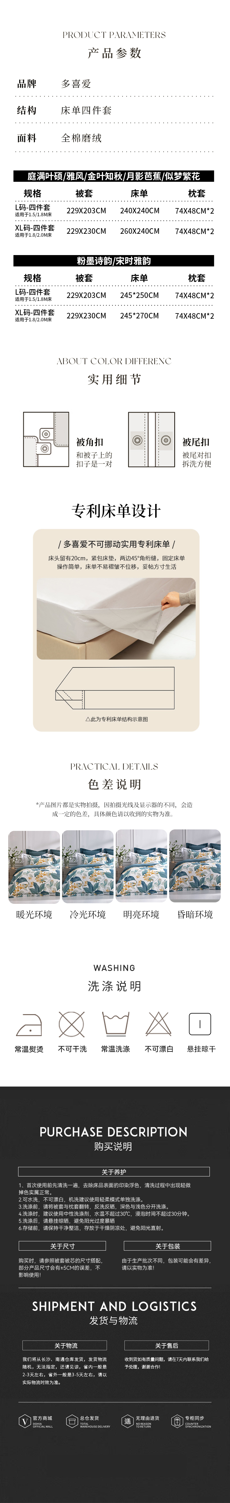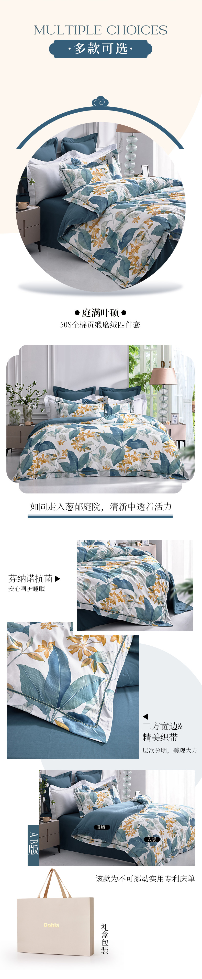 多喜爱 新绒棉磨绒床上用品四件套 庭满叶硕/雅风hl【高支高密】【长绒棉】【细腻柔软】