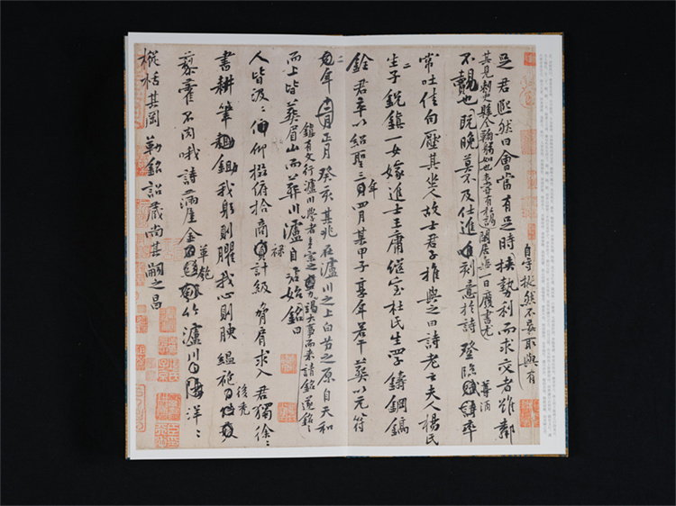 黄庭坚(1045—1105年),字鲁直,号山谷道人,晚号涪翁,洪州分宁(今江西省九江市修水县)人,北宋著名文学家、书法家。《王史二氏墓志铭稿》,纸本,由《王长者墓志铭稿》和《史翊正墓志铭稿》合成,现藏日本东京国立博物馆。《王长者墓志铭稿》,行书,纸本,30.3cm×78.5cm,凡22行,328字,约书于元祐元年(1086年)。《史翊正墓志稿》,行书,纸本,33.5cm× 65.3cm,凡21行,480字,约书于元符二年 (1099年)。钤有“晋府书画之印”“希世之宝”“项氏子京”等印记。《珊瑚网》《庚子销夏记》《壮陶阁书画录》等著录。《宋四大家墨宝》《兰言室藏帖》《岳雪楼鉴真法帖》《海山仙馆藏真》《耕霞溪馆法帖》《听飘楼法帖》等收录。