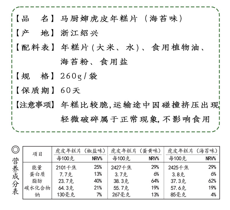 虎皮年糕片 米香浓郁 一口嘎嘣脆 配料干净小零食 260g/袋