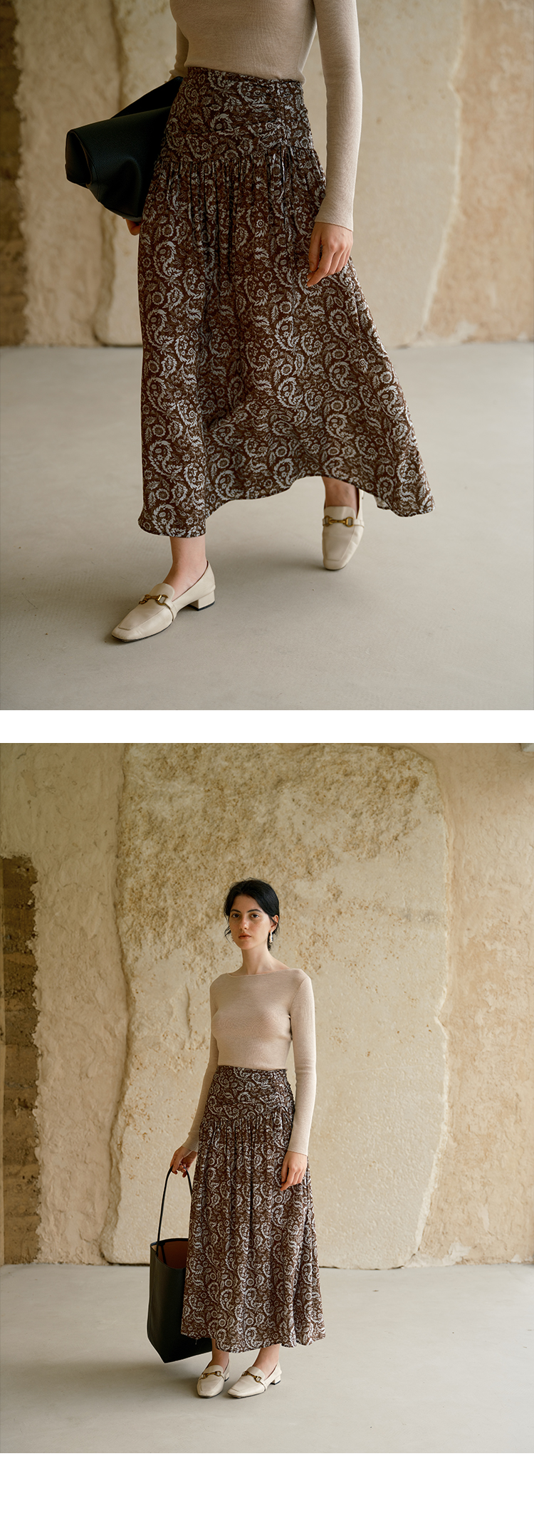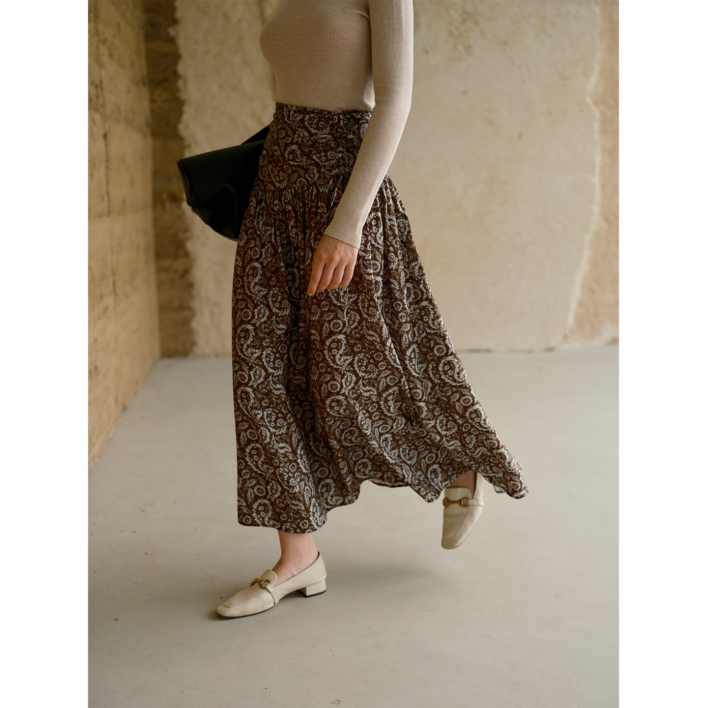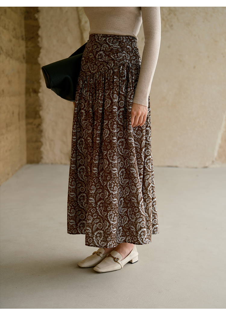 HeyDress民族风图案印花拼接A摆半裙