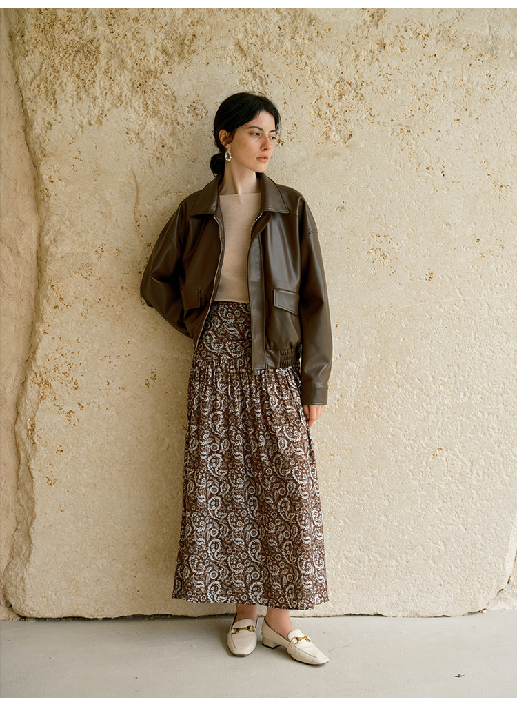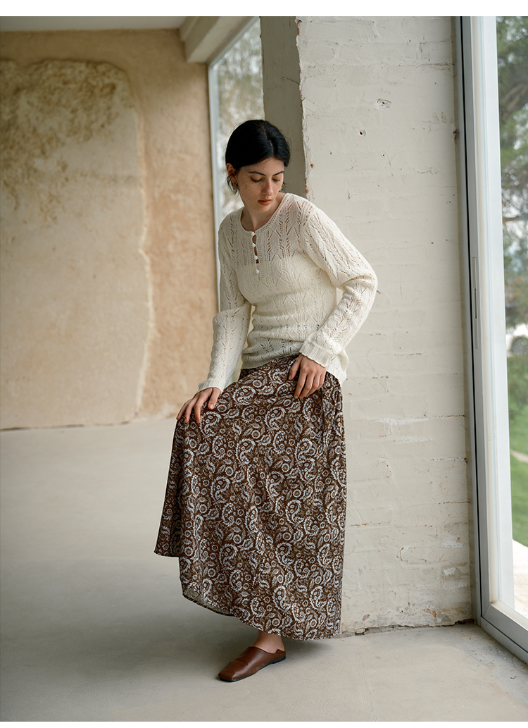 初语半身裙女新款纯棉灯芯绒复古可露丽风中长款伞裙