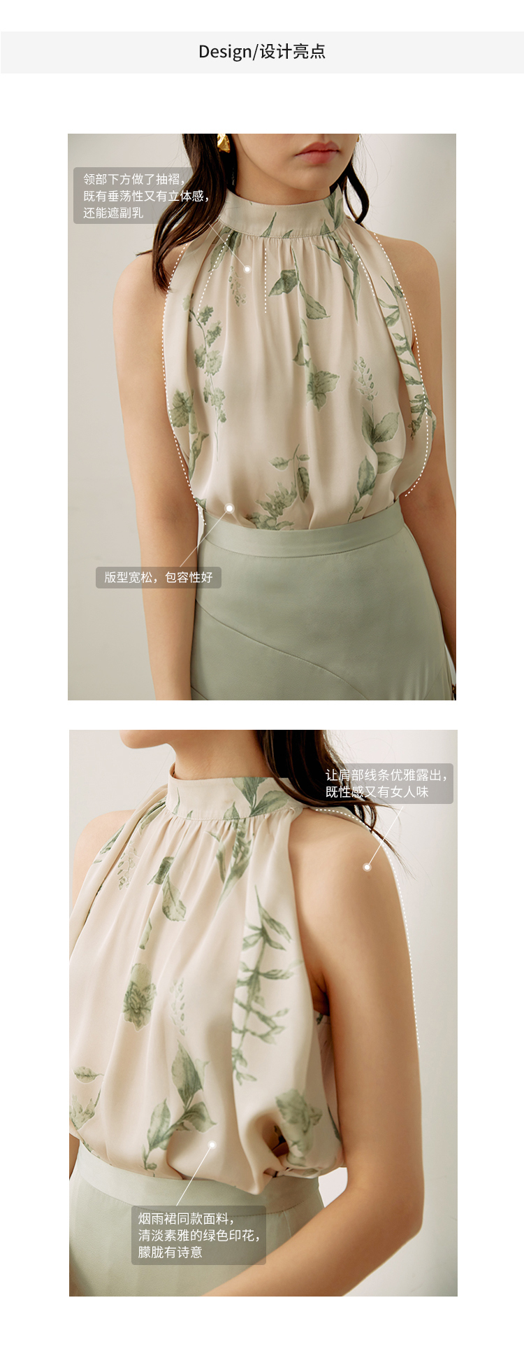呼声chao高的烟雨挂脖背心给大家做出来啦! 真的很喜欢这块面料 所以干脆做一个烟雨系列给你们! du家定制的仿真丝雪纺 有着缎面的光泽感 质感十足 很适合做成各种可以清凉度夏的单品 整体的设计上 流畅自然又细节满满 腋下余量多次调整 不露赘肉与副乳 。 |