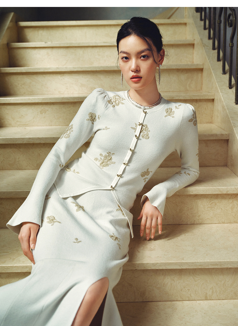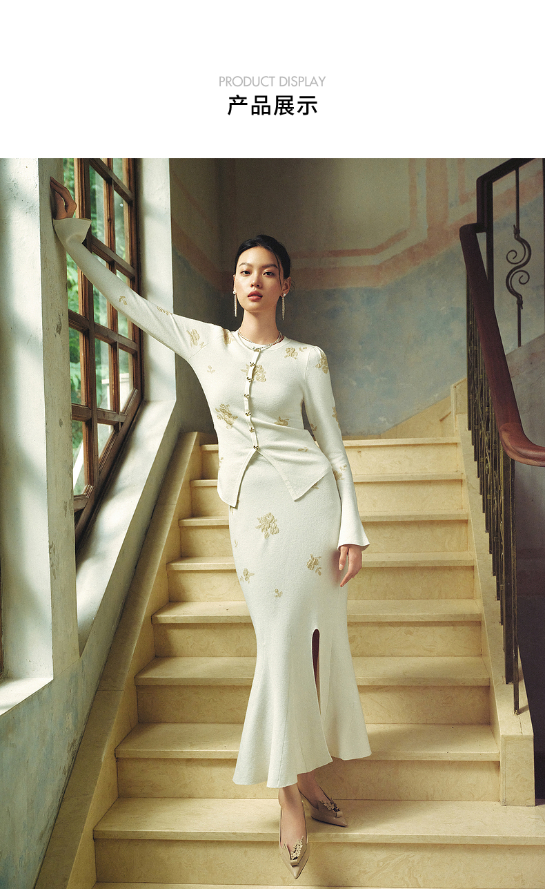MAXRIENY贵雅中式针织衫女24秋新款修身显瘦刺绣上衣(货号:MS85SW524)
