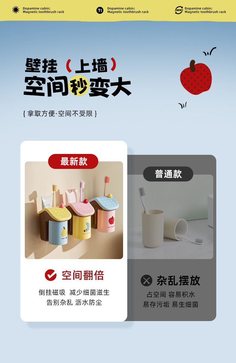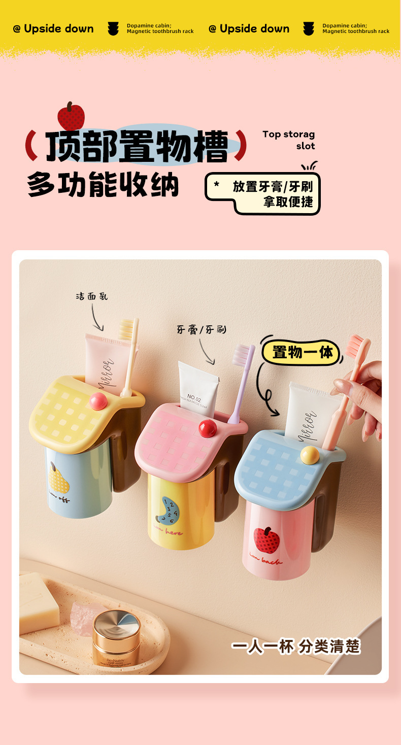 【多巴胺置物架】磁吸式漱口杯牙刷置物架刷牙杯家用倒挂电动牙刷挂架免打孔。ya