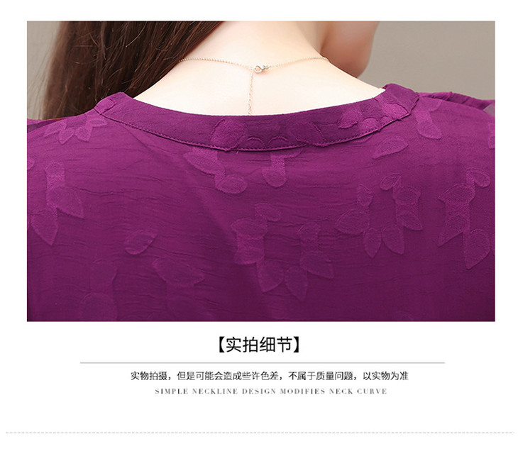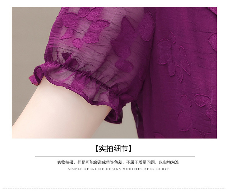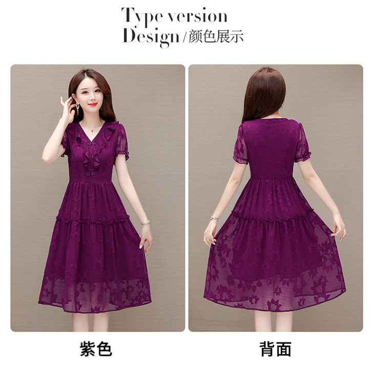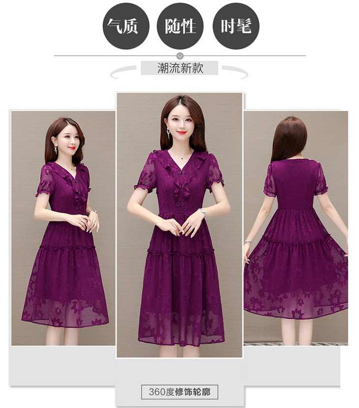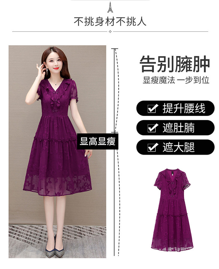 OYMXQD-Q2301-L-2024年夏款中长款提花时尚雪纺裙V领短袖修身显瘦洋气休闲连衣裙