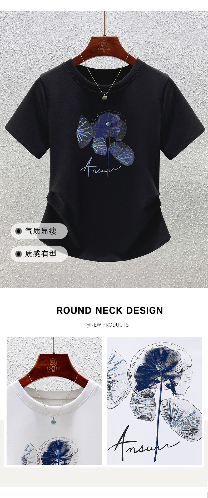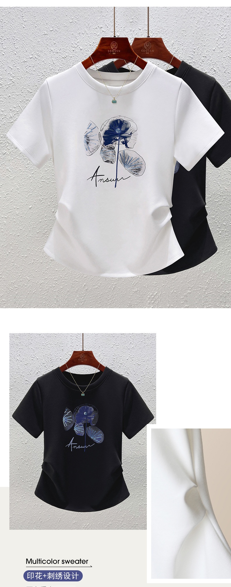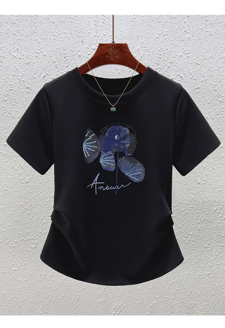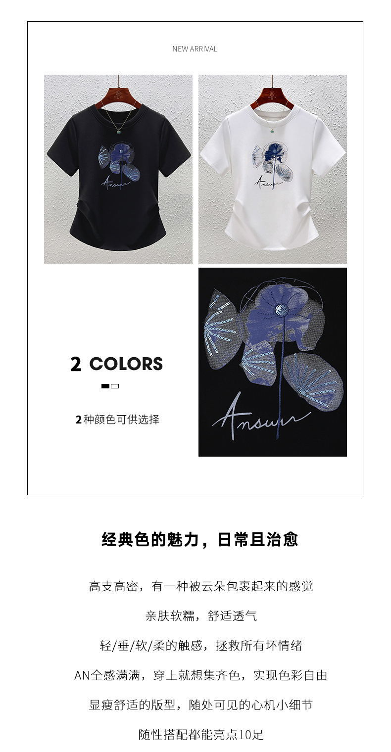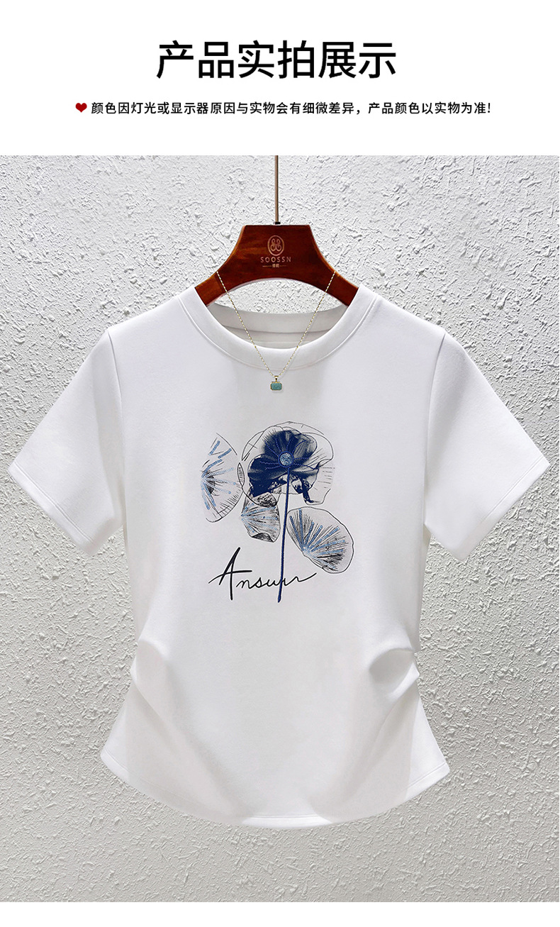 「自」全新升级【铂金会员109/天猫139/差价30】(10857)洛诗琳时尚圆领国风印花正肩T恤2025夏季新款掐腰显瘦上衣女