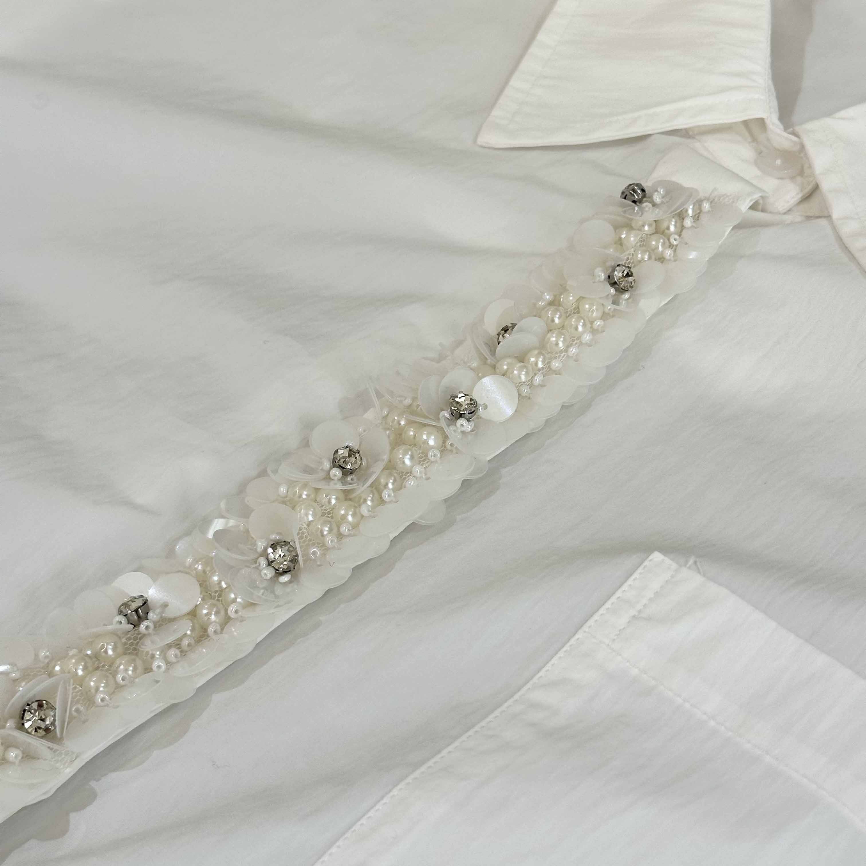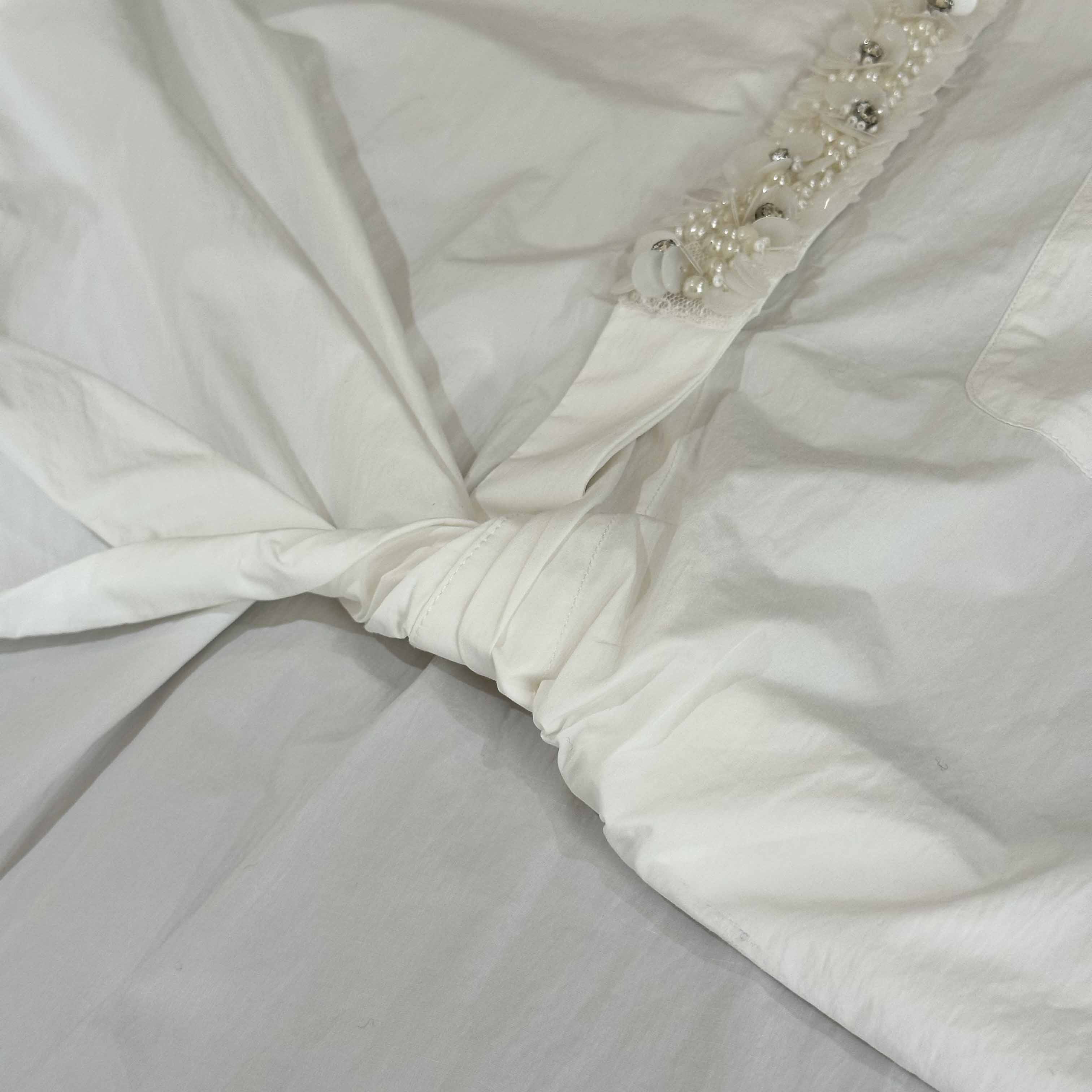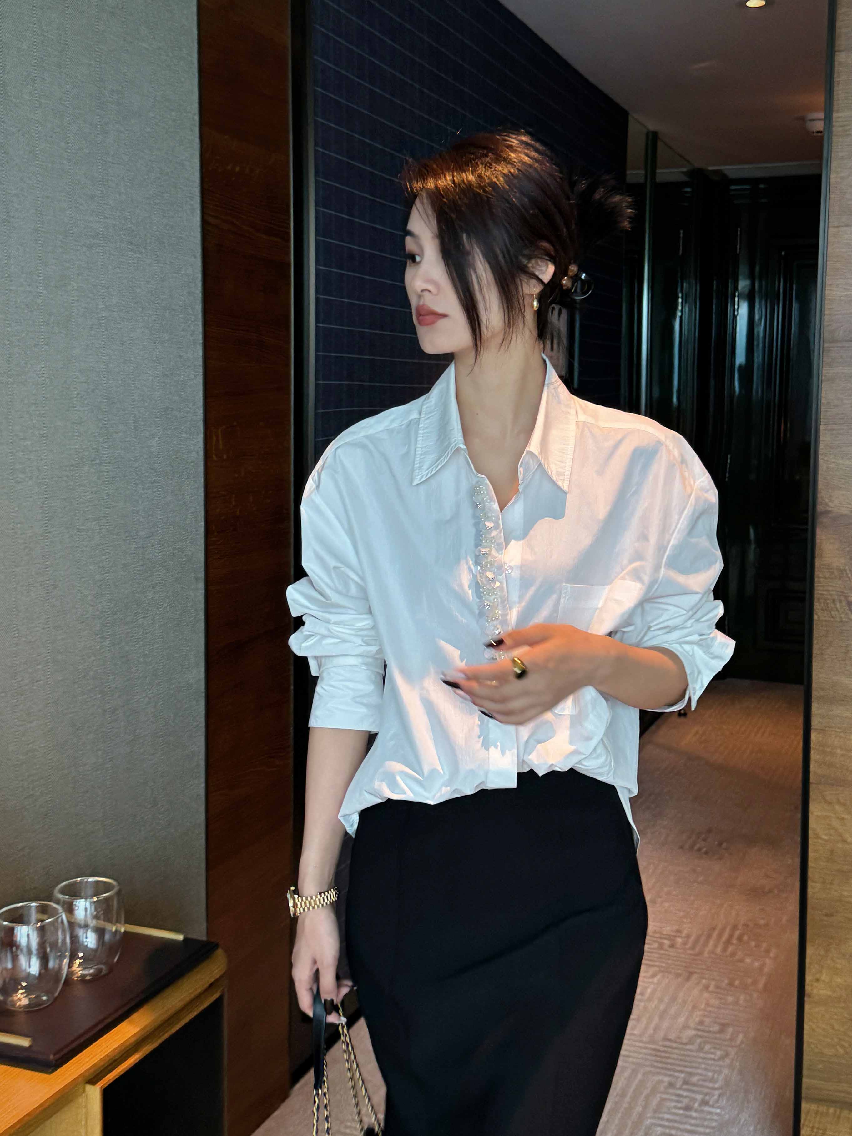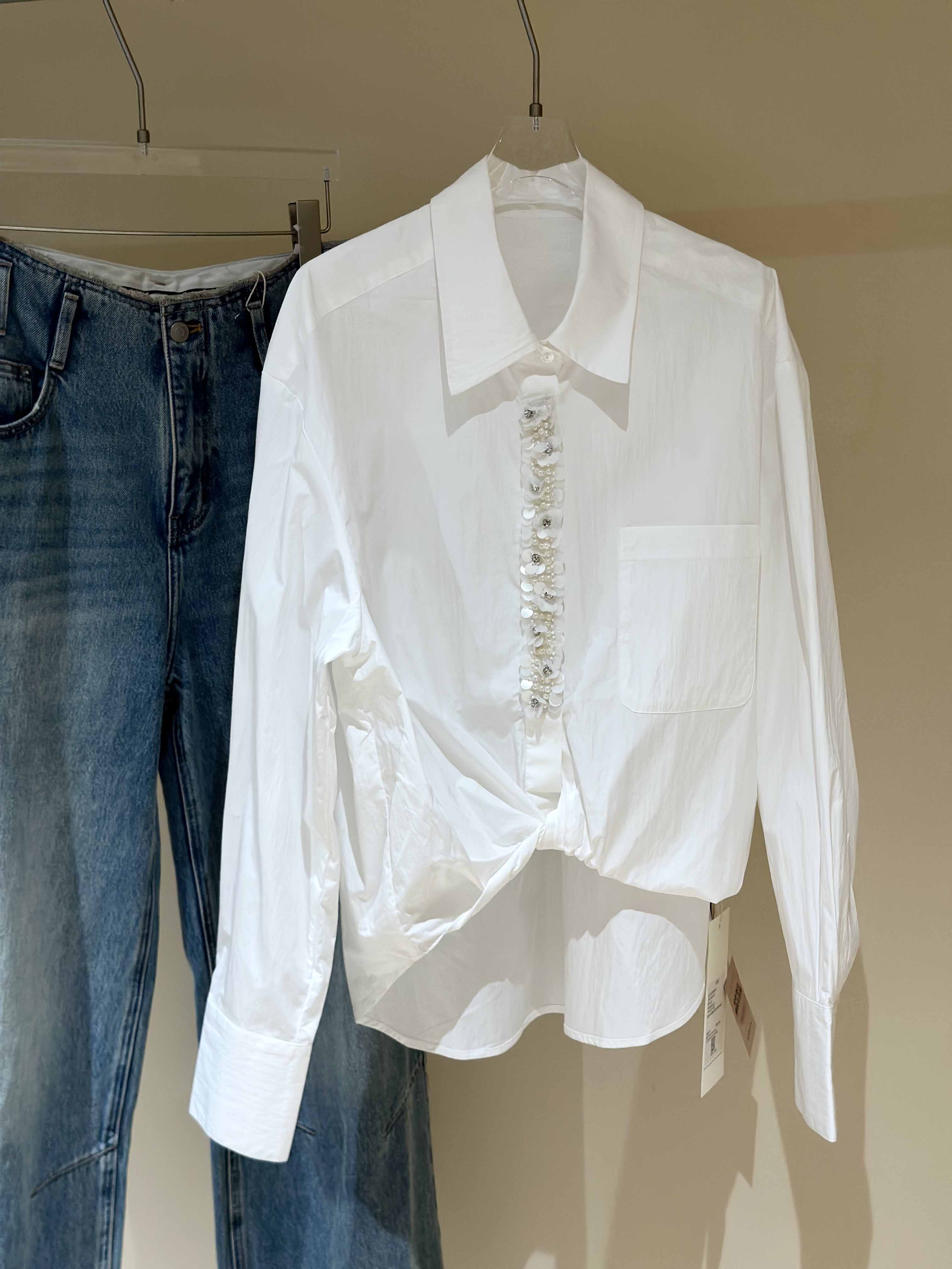 顺丰包邮洛诗琳35842高级感棉质重工亮片钉珠不规则扭结衬衫2035