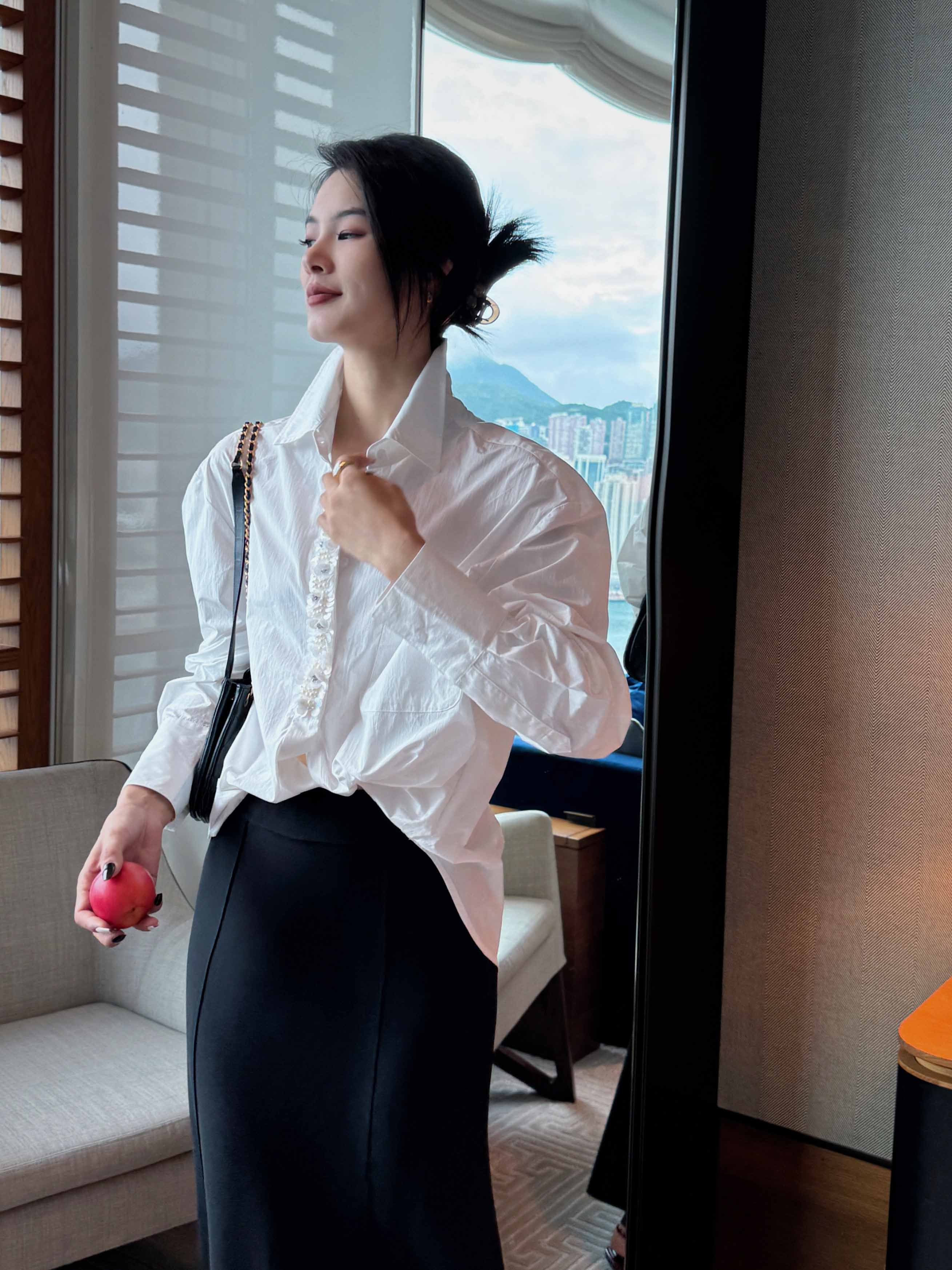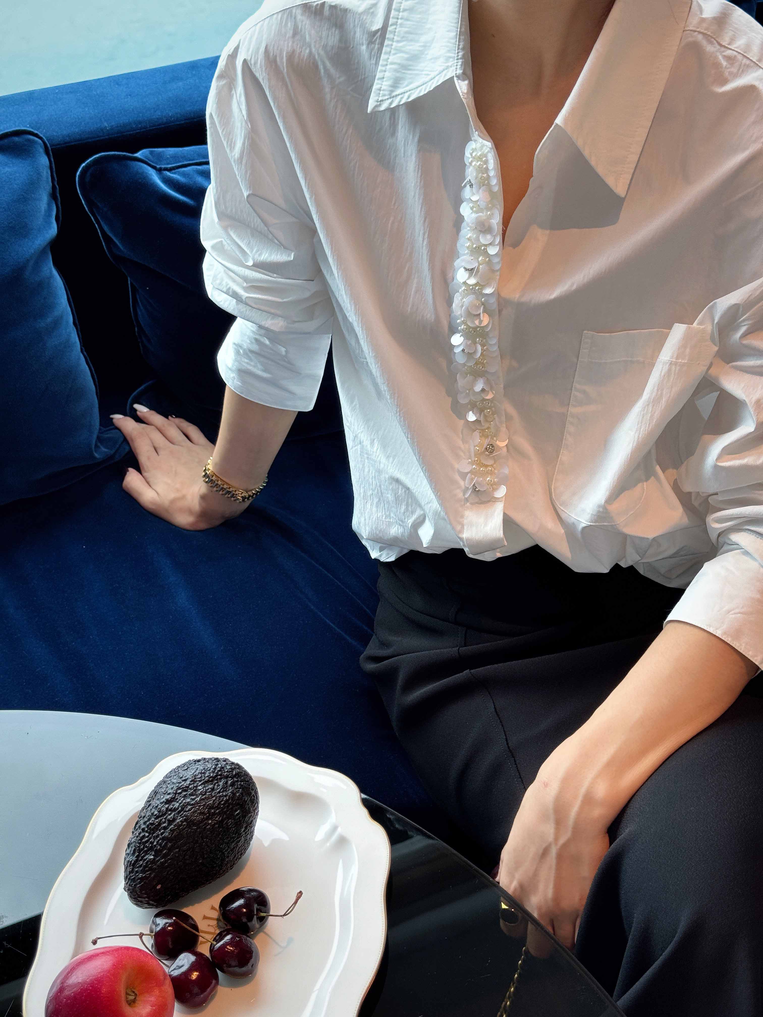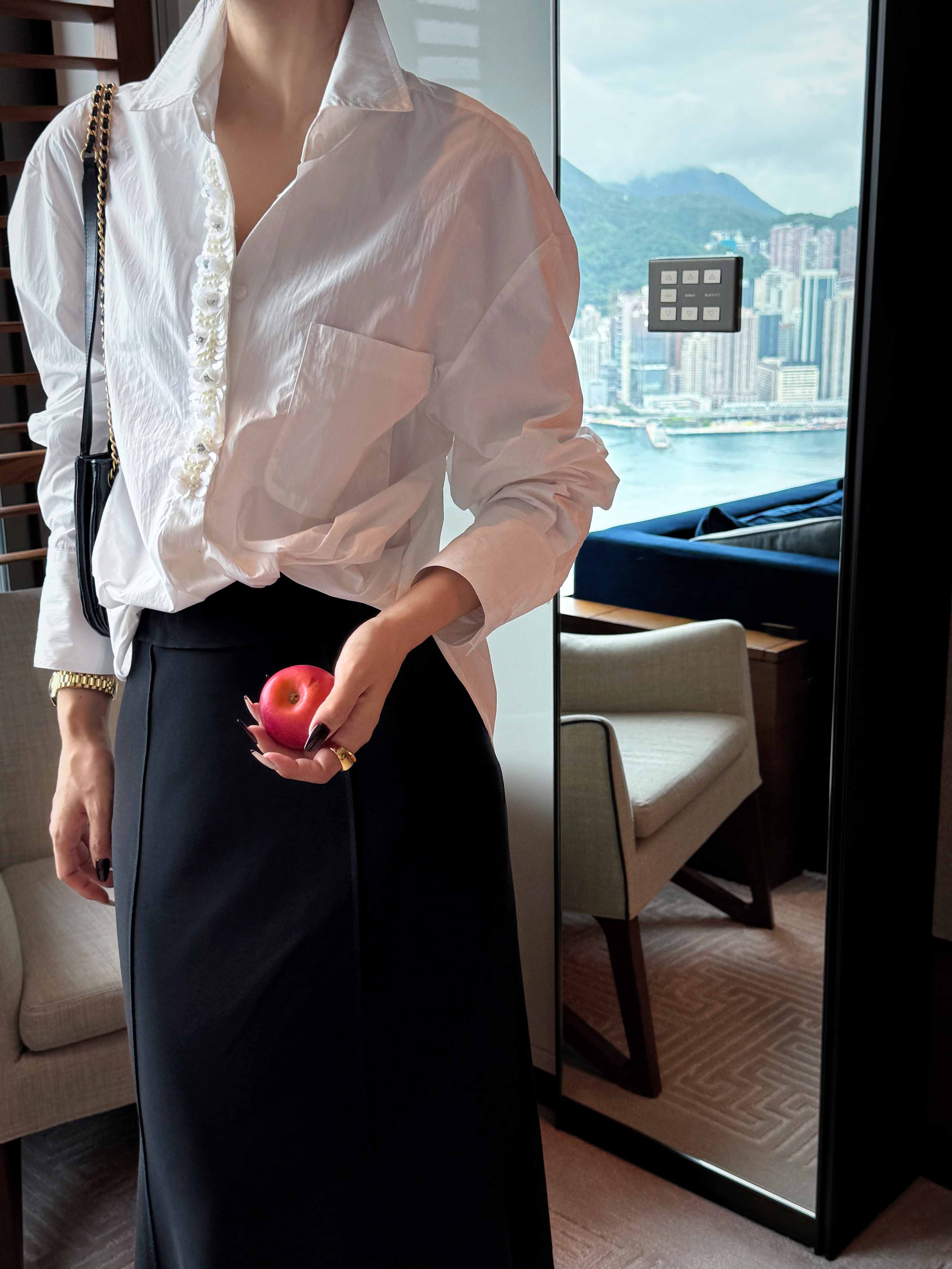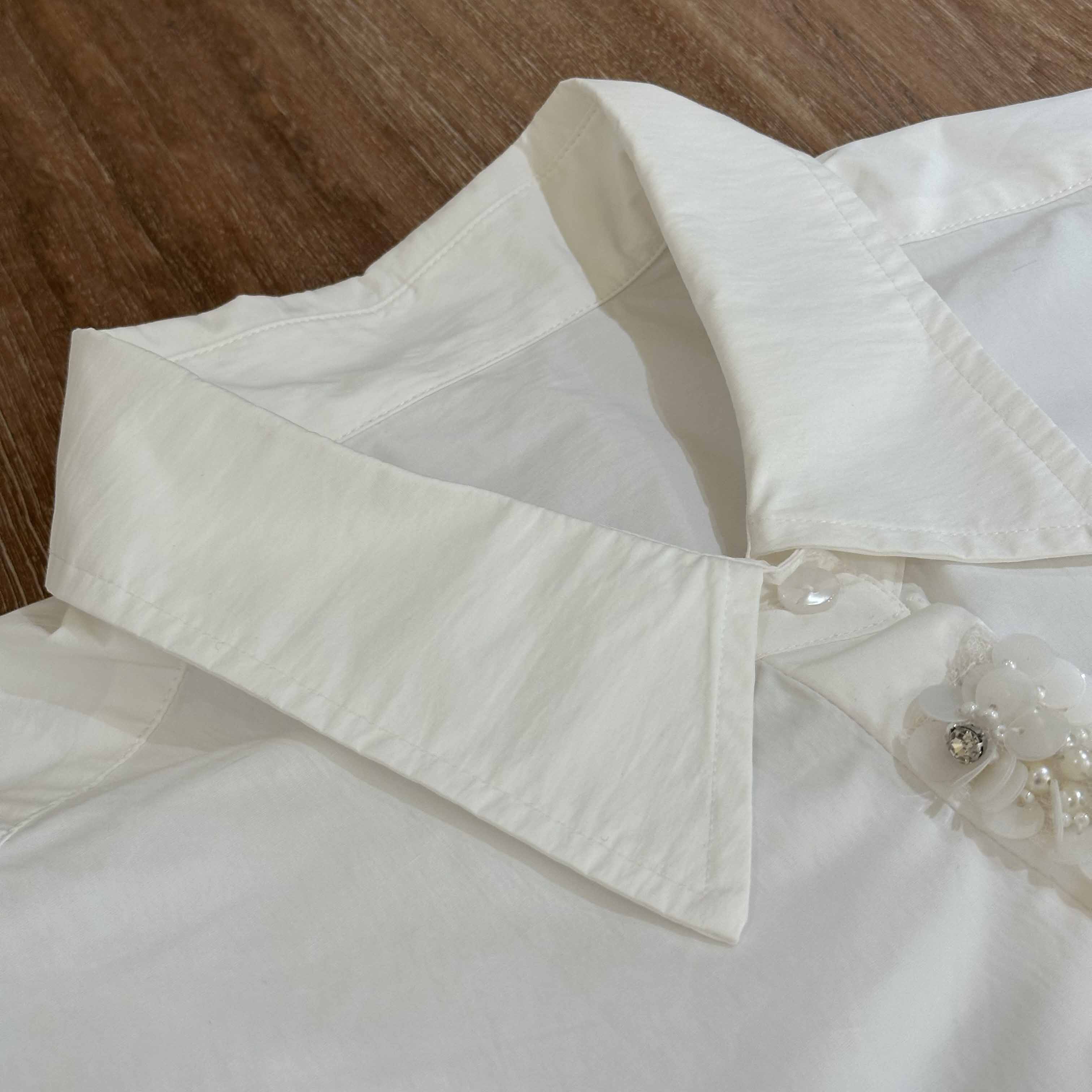 顺丰包邮洛诗琳35842高级感棉质重工亮片钉珠不规则扭结衬衫2035