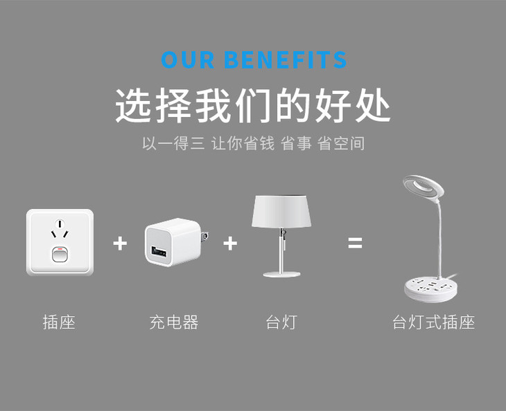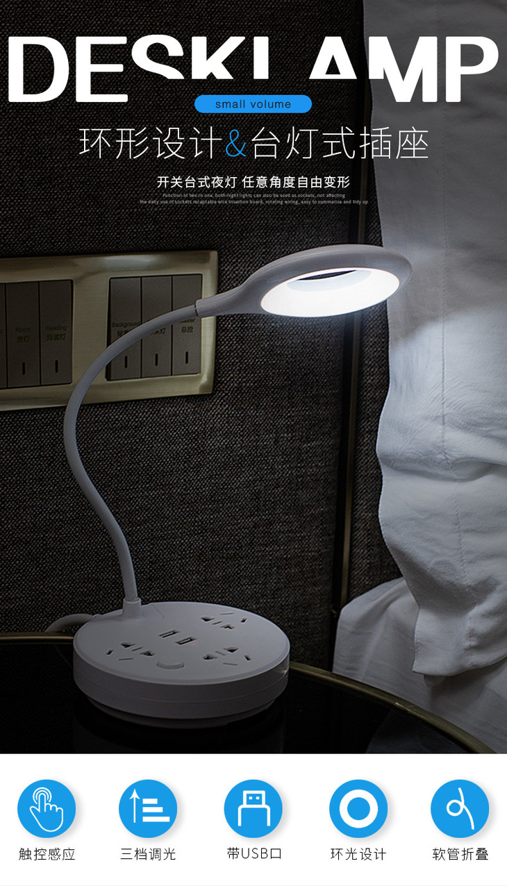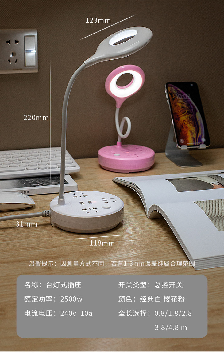「任意角度自由变形的多功能排插」LED环形护眼台灯+智能插座 起夜 哺乳 手机党必备