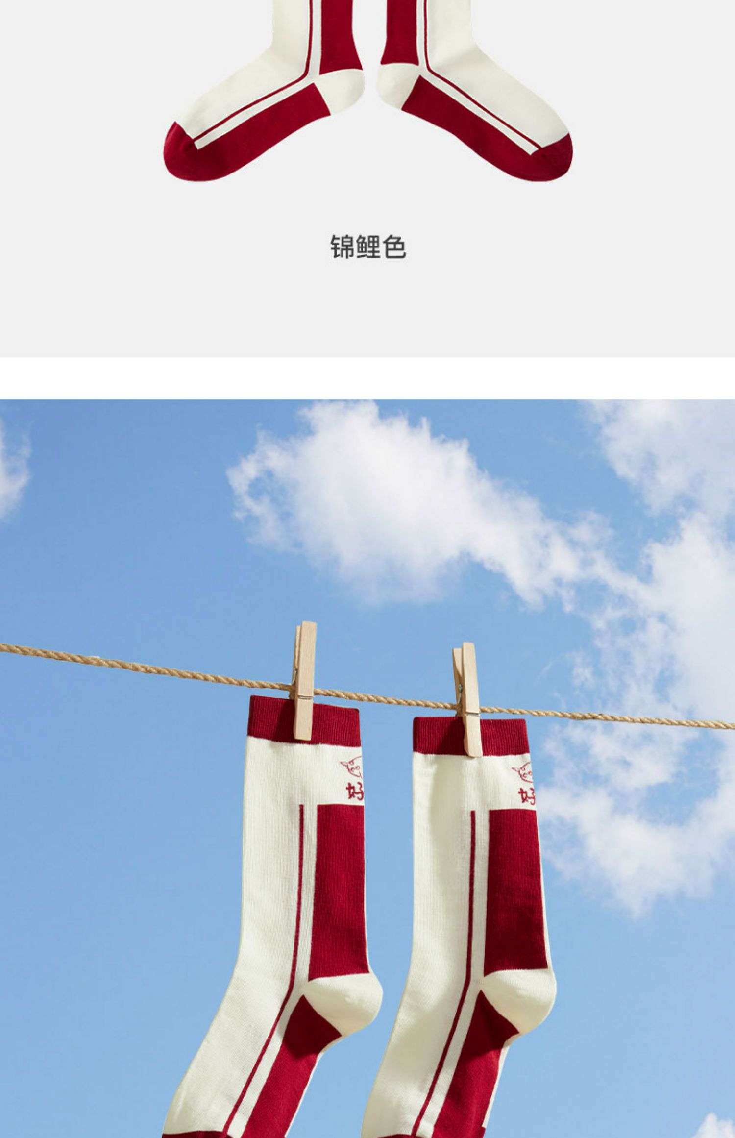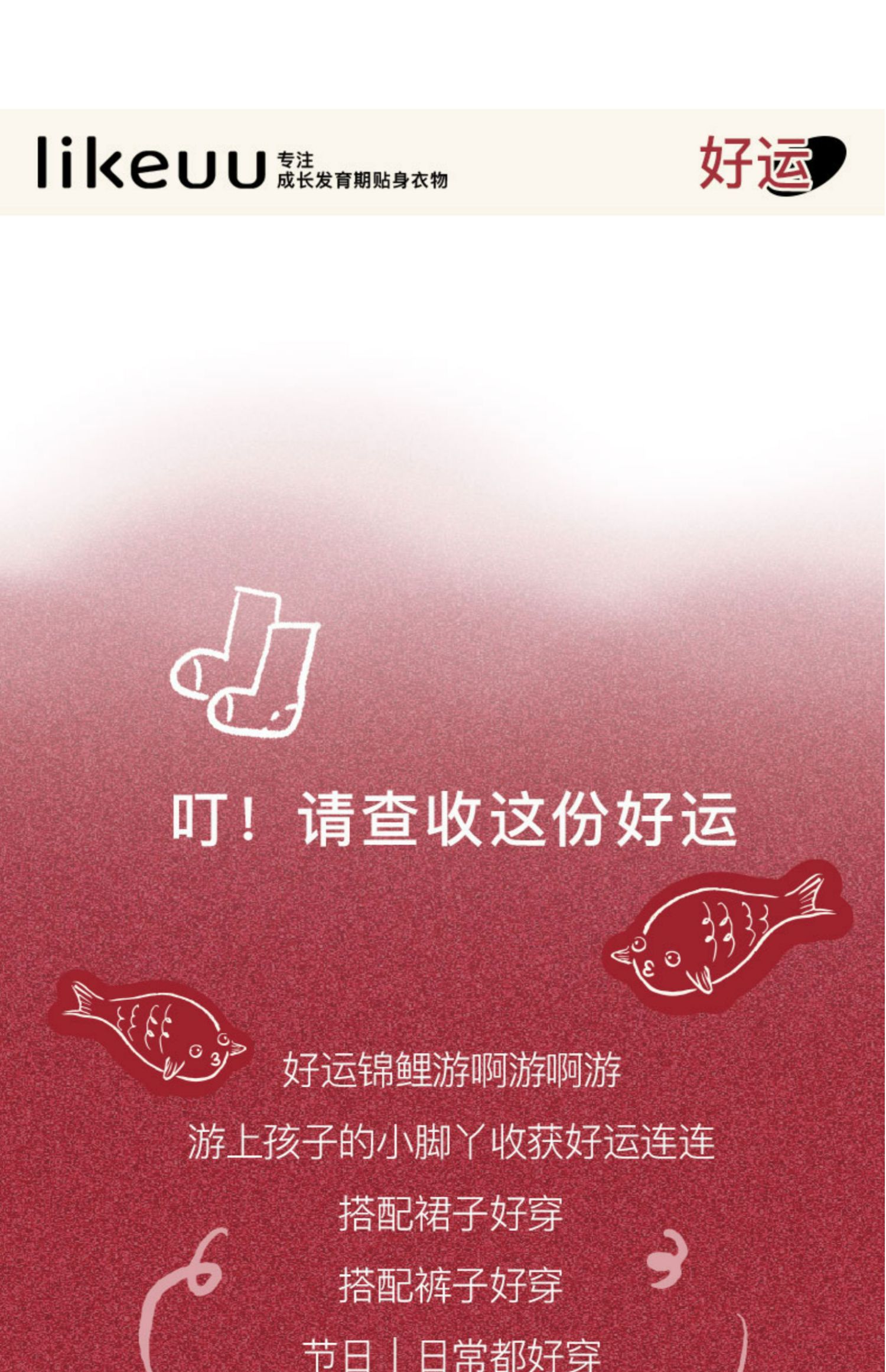 likeuu男女童中筒袜学生儿童小锦鲤好运色块袜