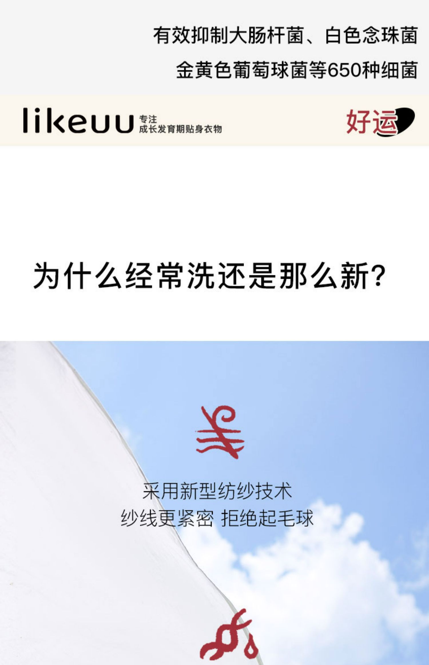 likeuu是专注于为6~15岁的青少年创造柔软、无束缚的成长体验,以好奇心为灵感的成长发育期贴身衣物品牌。likeuu的产品覆盖内衣、内裤、保暖衣、家居服、运动等品类。