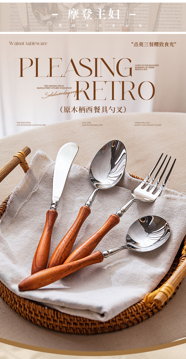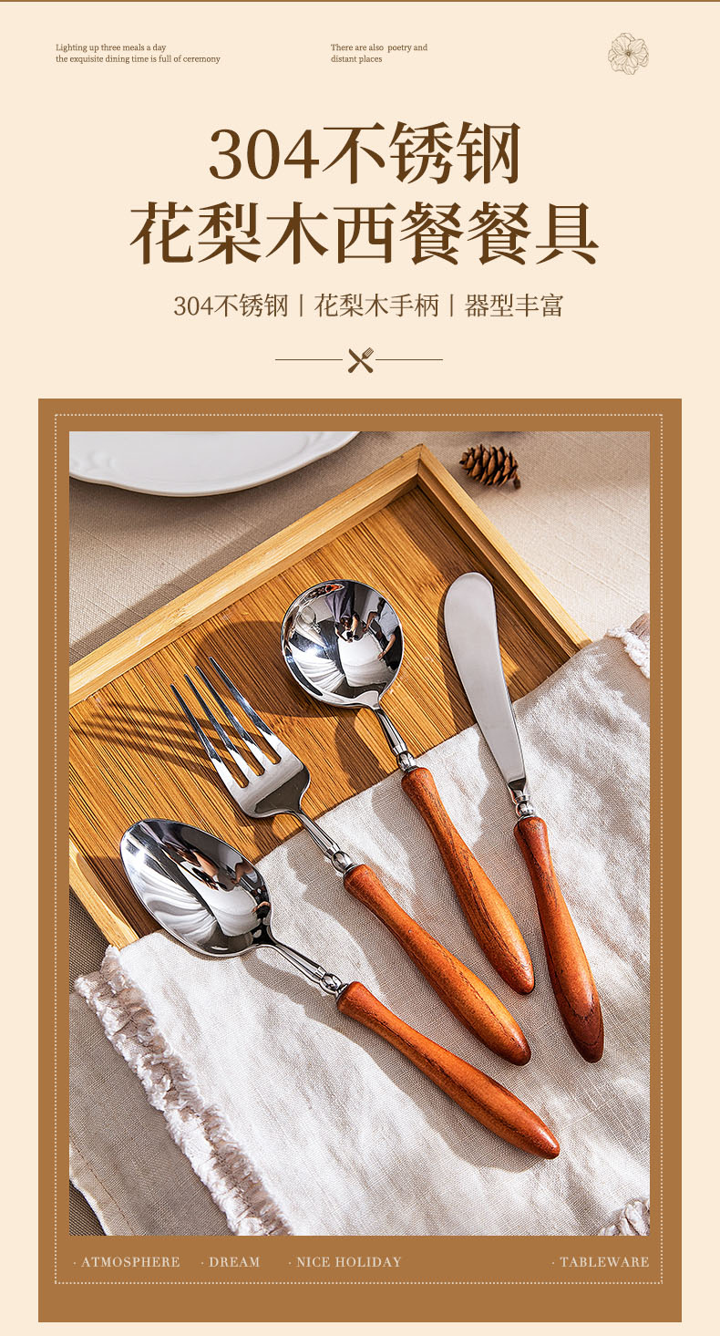 摩登主妇304不锈钢西餐餐具刀叉牛排刀叉套装高级感刀叉勺三件套