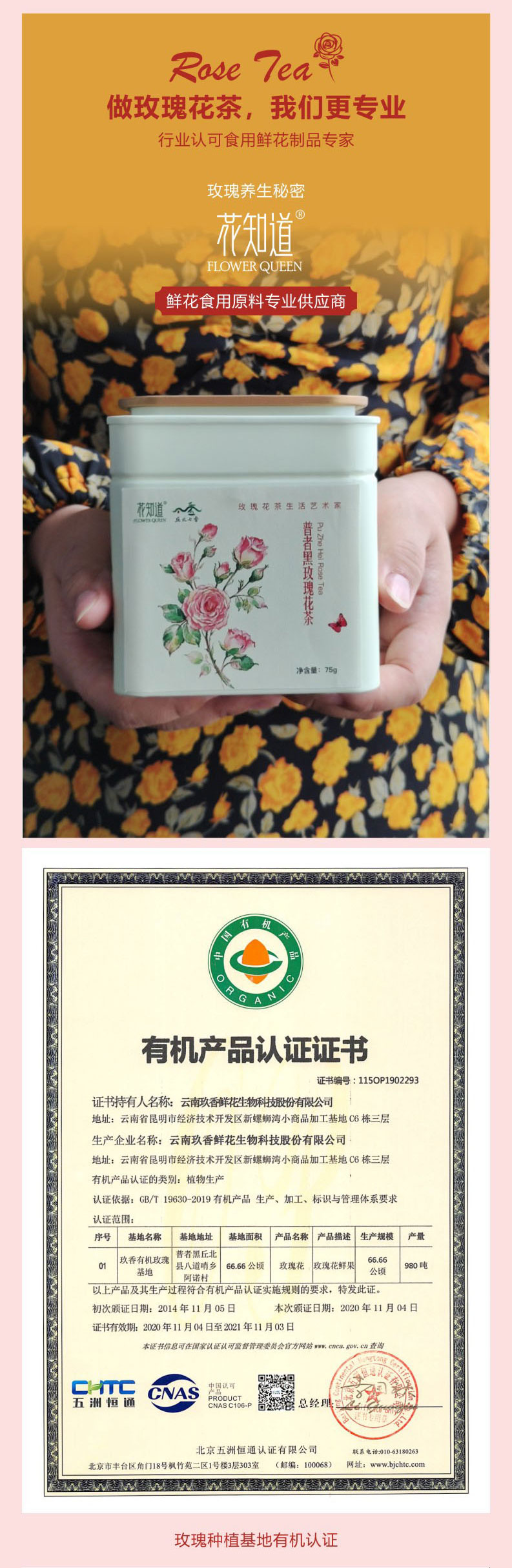 5、基地有机认证:获得玫瑰种植基地有机认证;