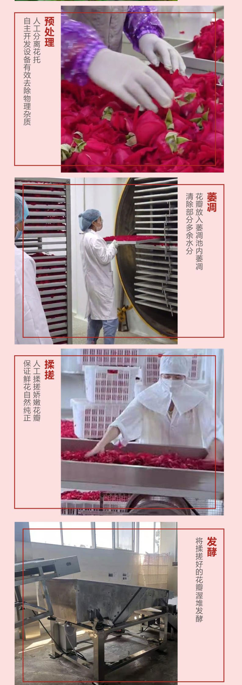 10、独特口感:一款饮完茶后可嚼花瓣的玫瑰花茶,弹牙质感,香味纯正。