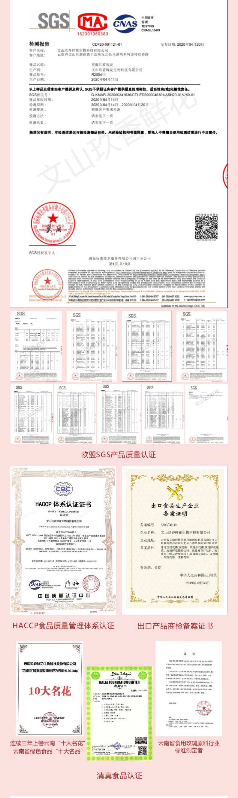 4、行业标准制定者:中国鲜花看云花,行业内唯一参与制定了云南省食用玫瑰原料标准;作为行业标准制定者,标准领先;